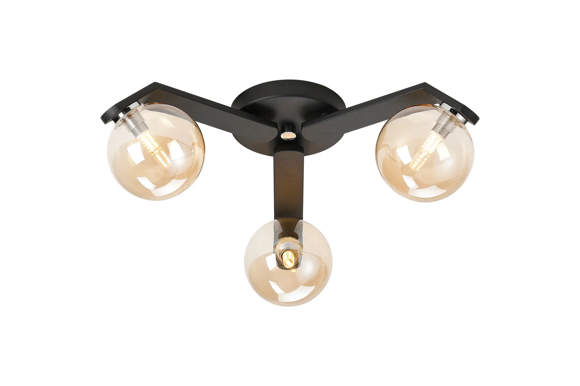 Campbell Flush Ceiling, 3 x G9, IP44, White/Polished Chrome/Amber Smooth Round Glass