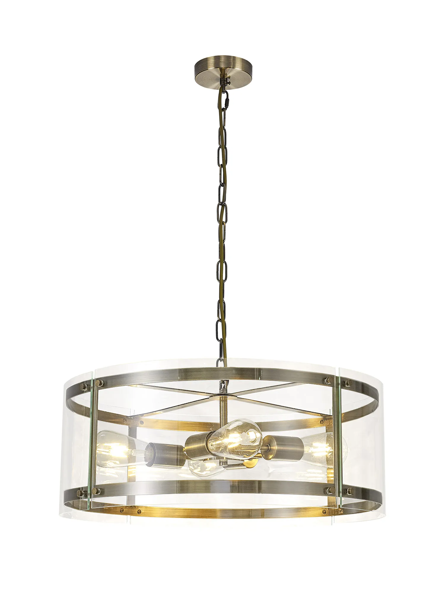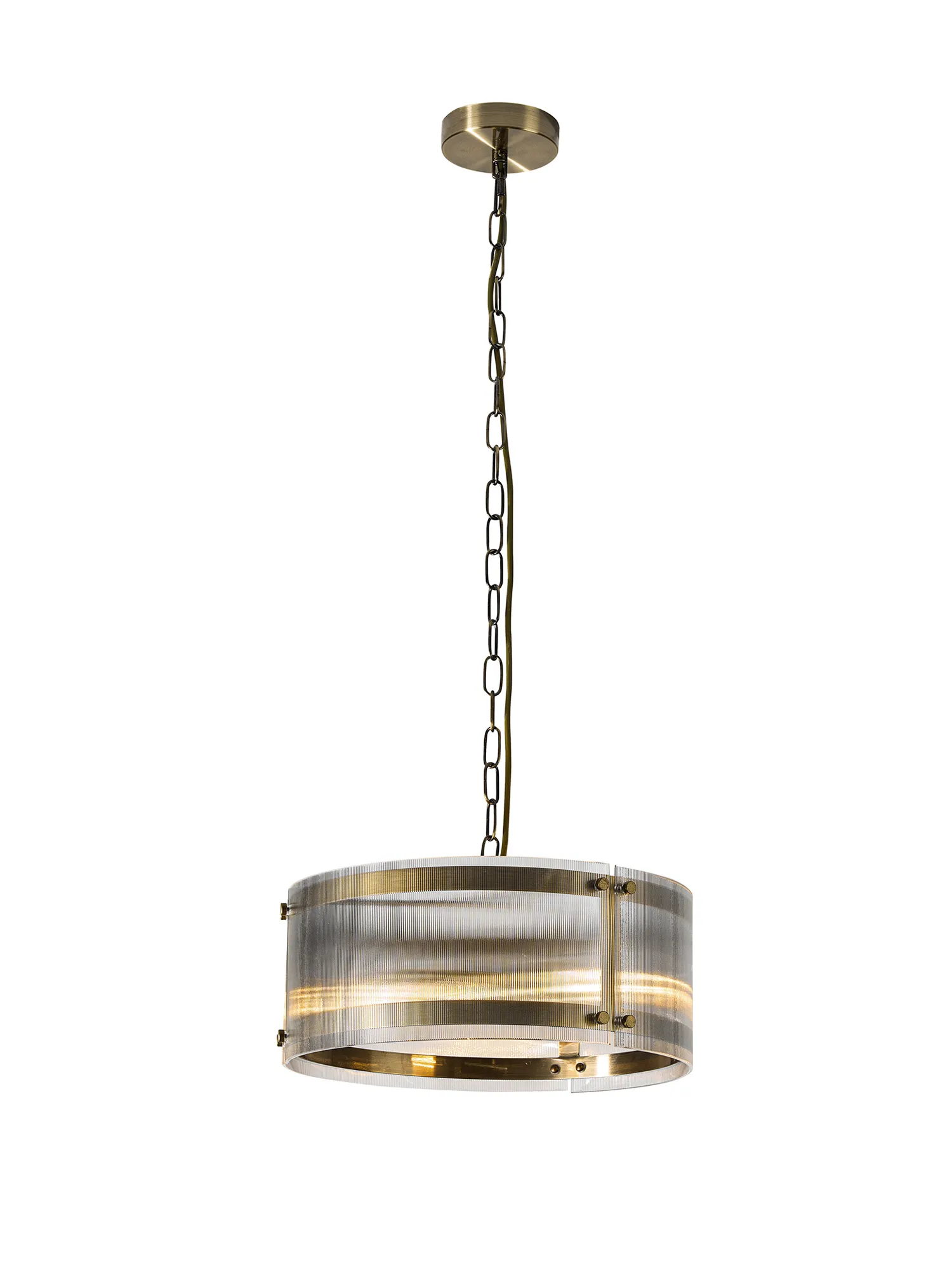 Hindon 35cm Pendant, 2 x E27, Antique Brass / Narrow Ribbed Clear (B) Glass