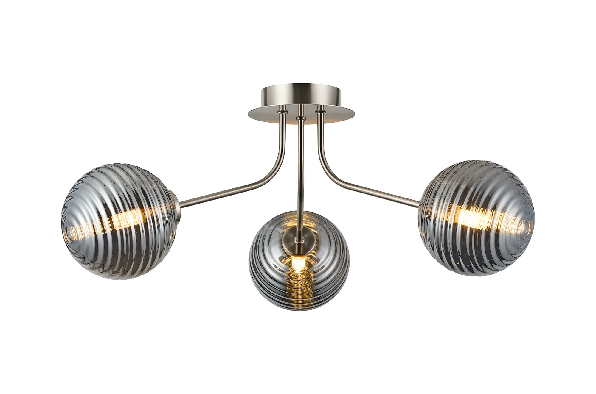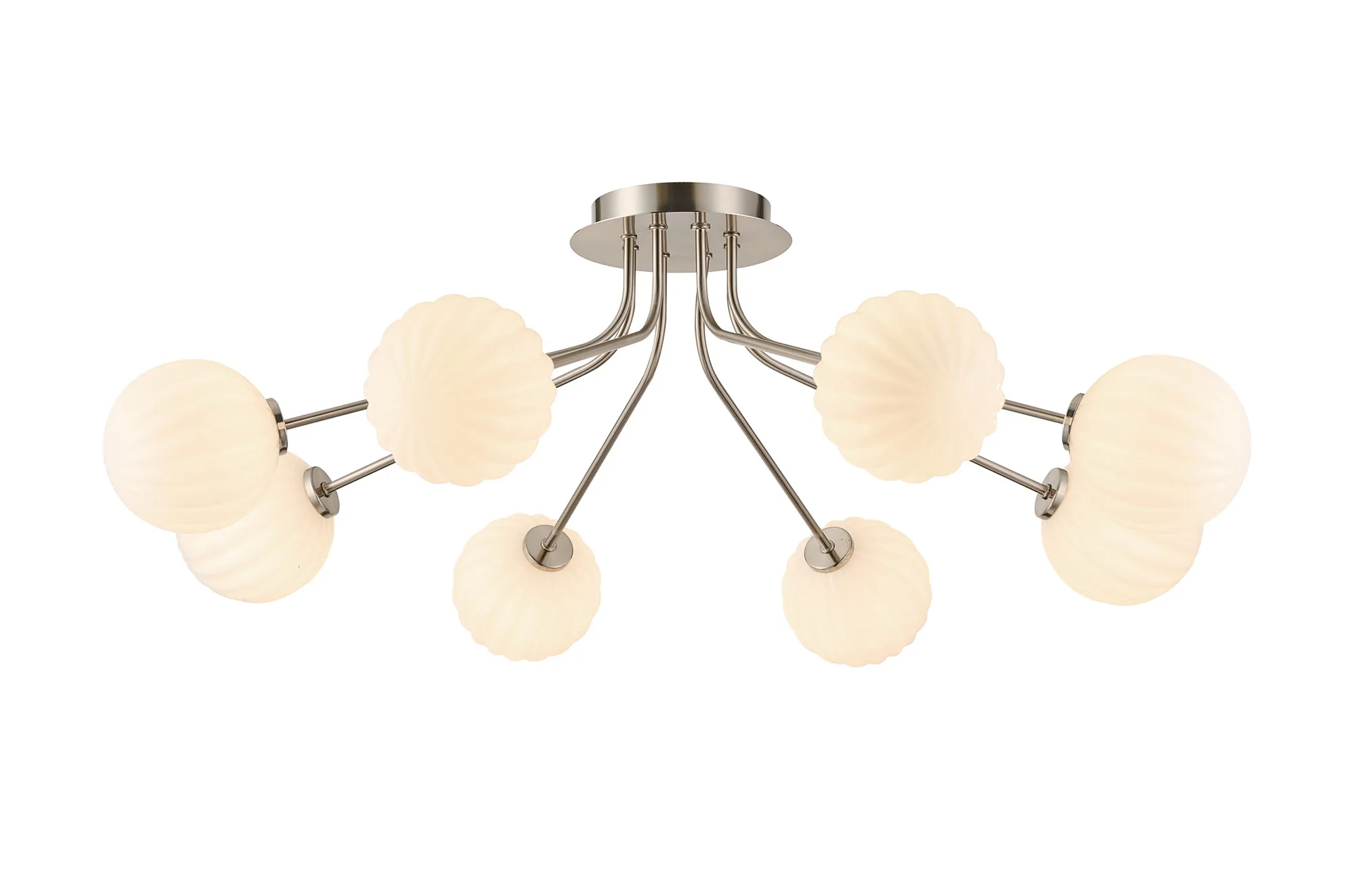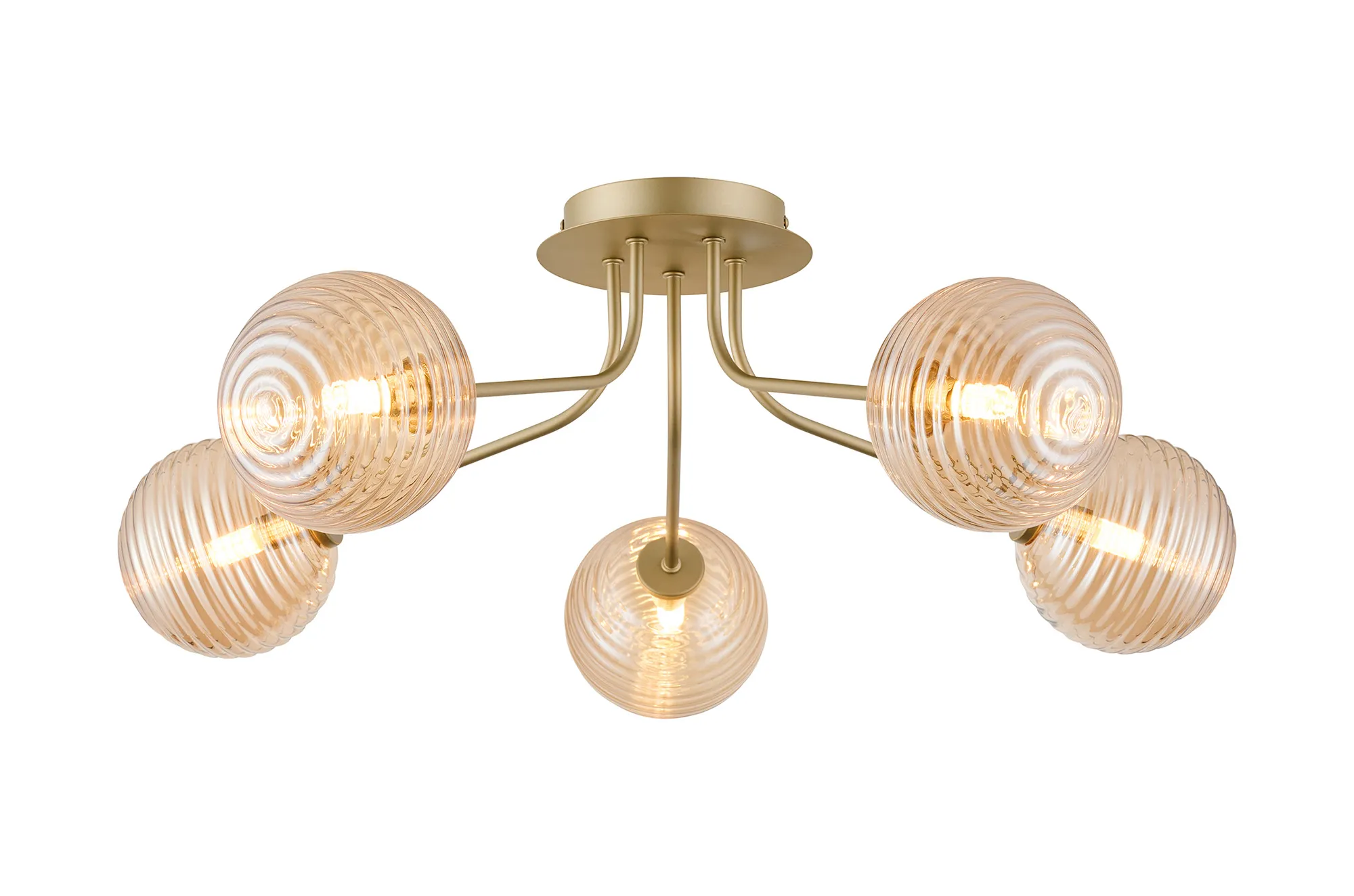 Duncan Semi Flush Light, 8 Light G9, Satin Black/Amber Ribbed Round Glass Shade