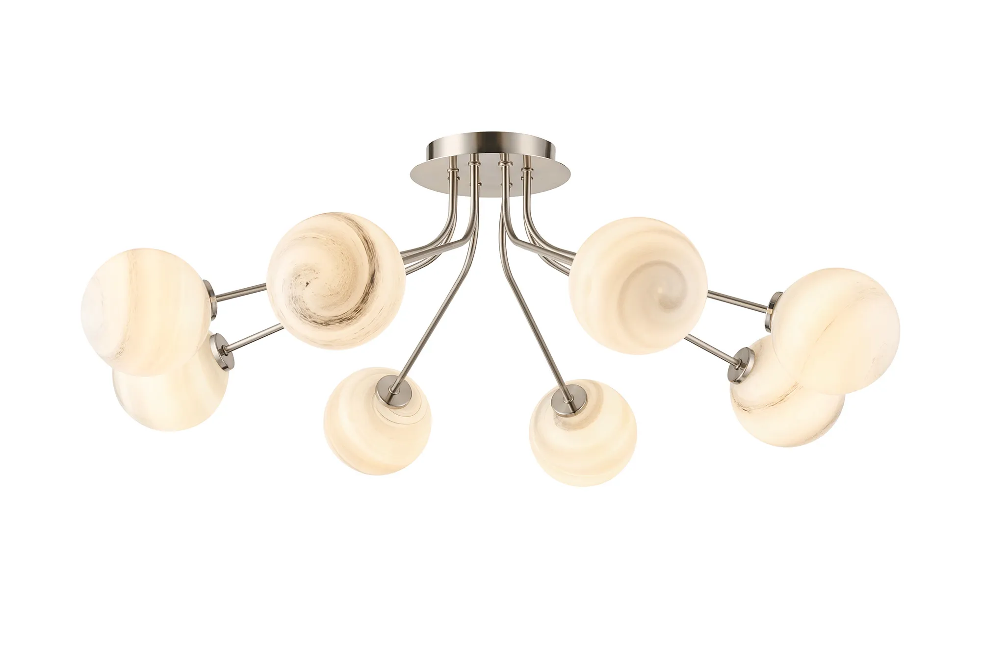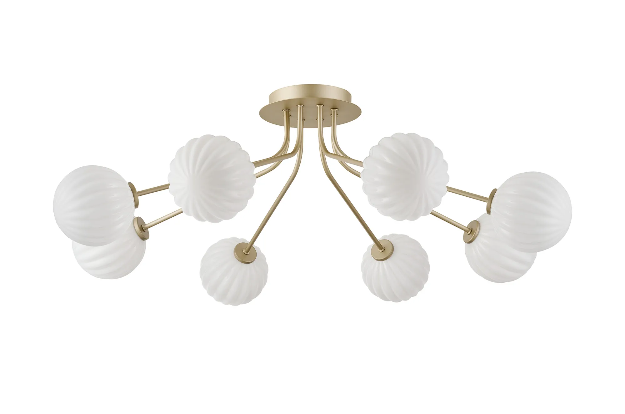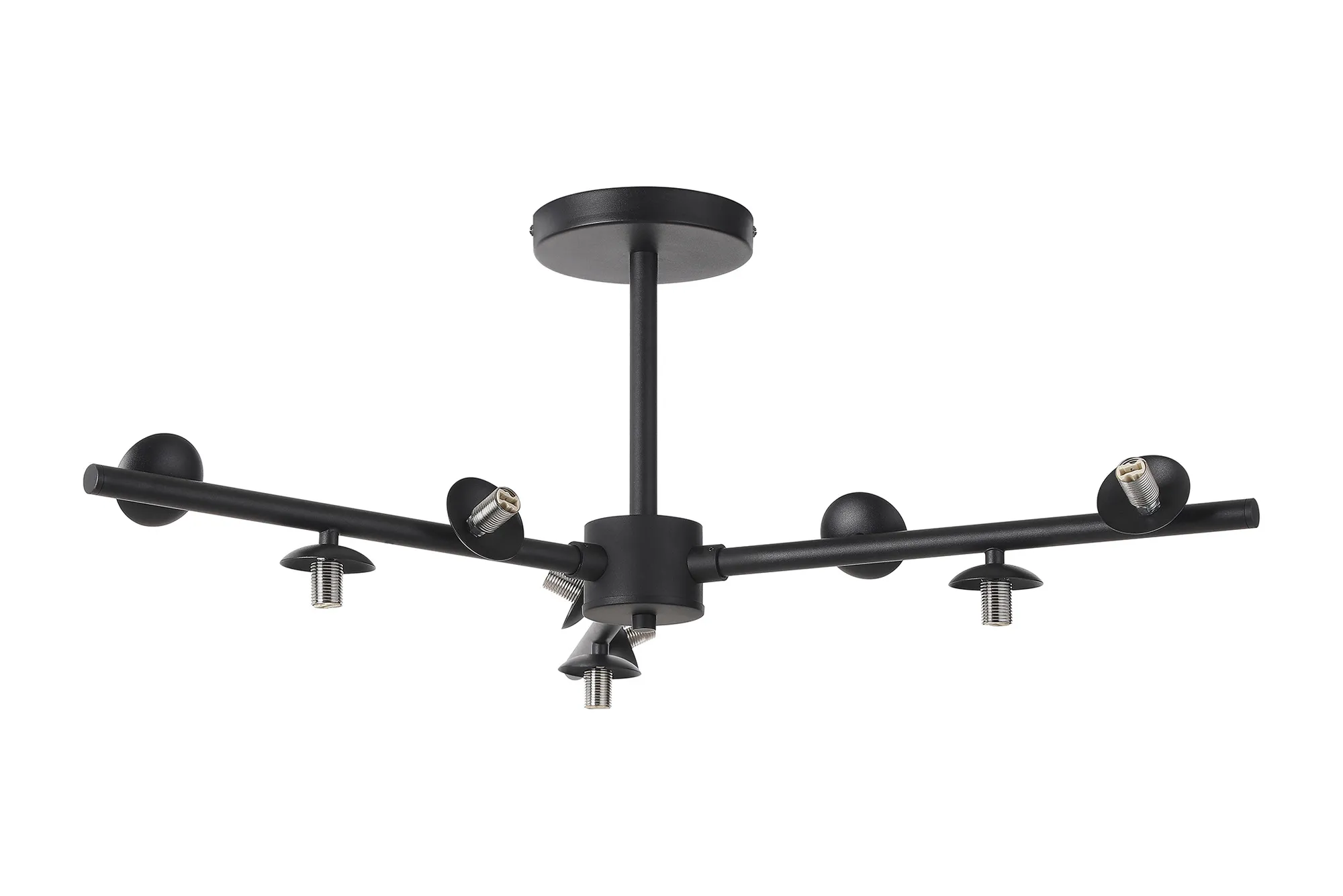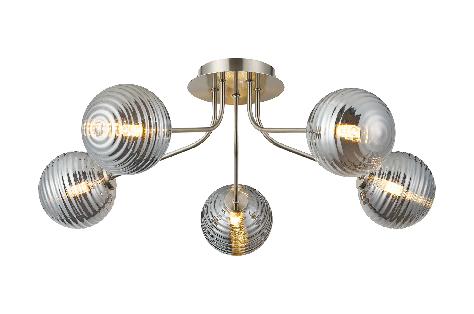 Duncan Semi Flush Light, 8 Light G9, Satin Black/Amber Ribbed Round Glass Shade