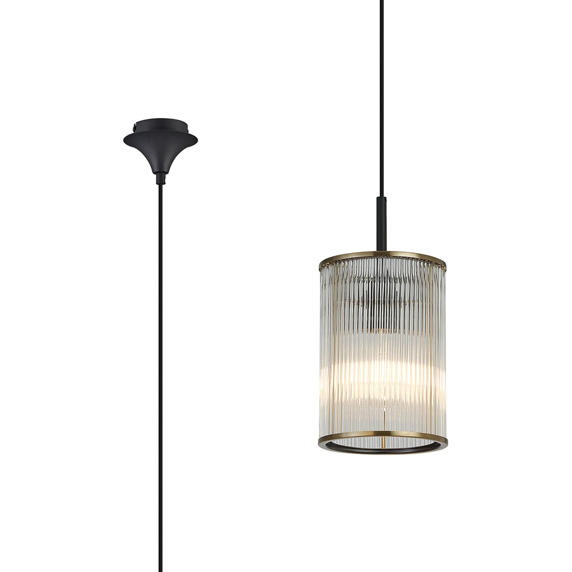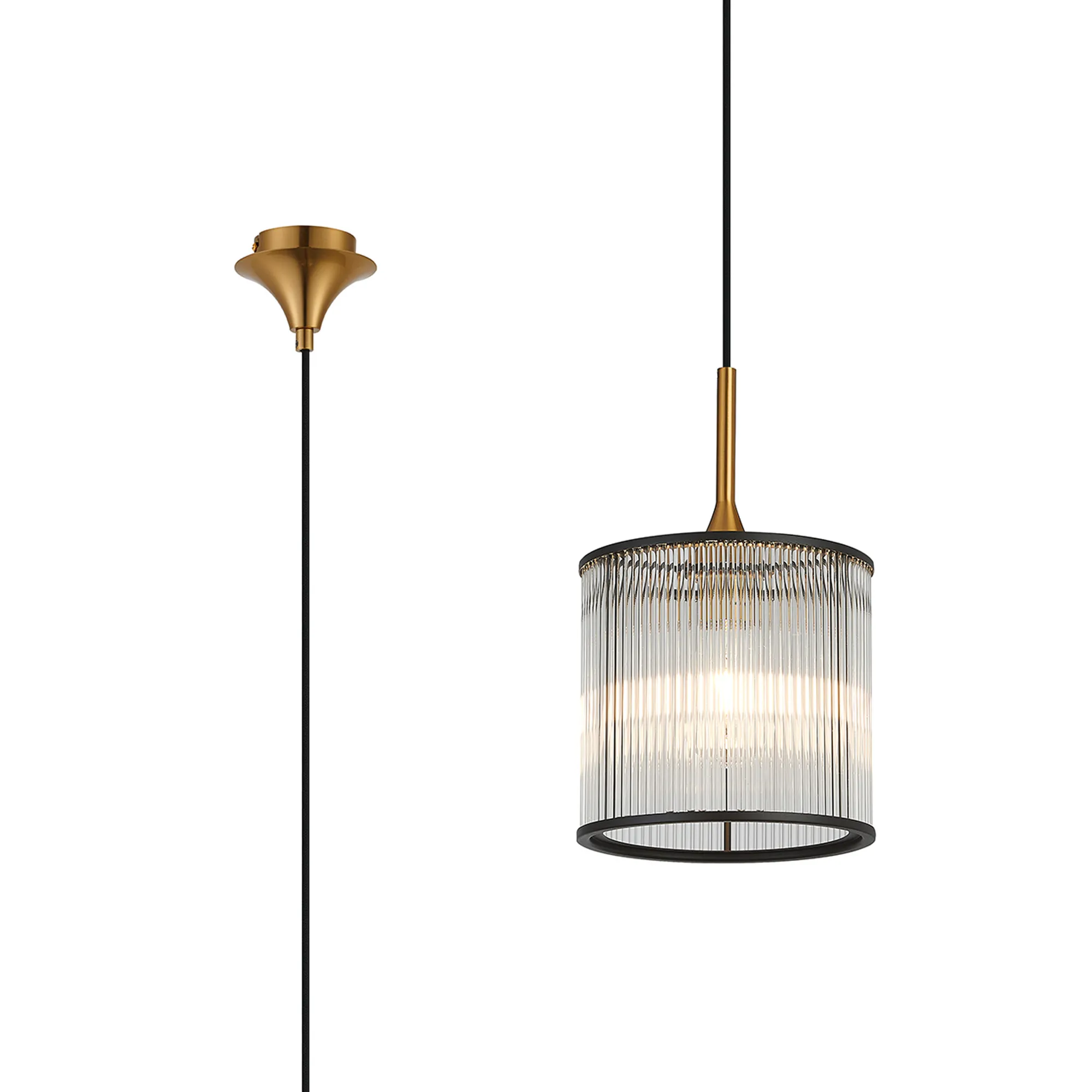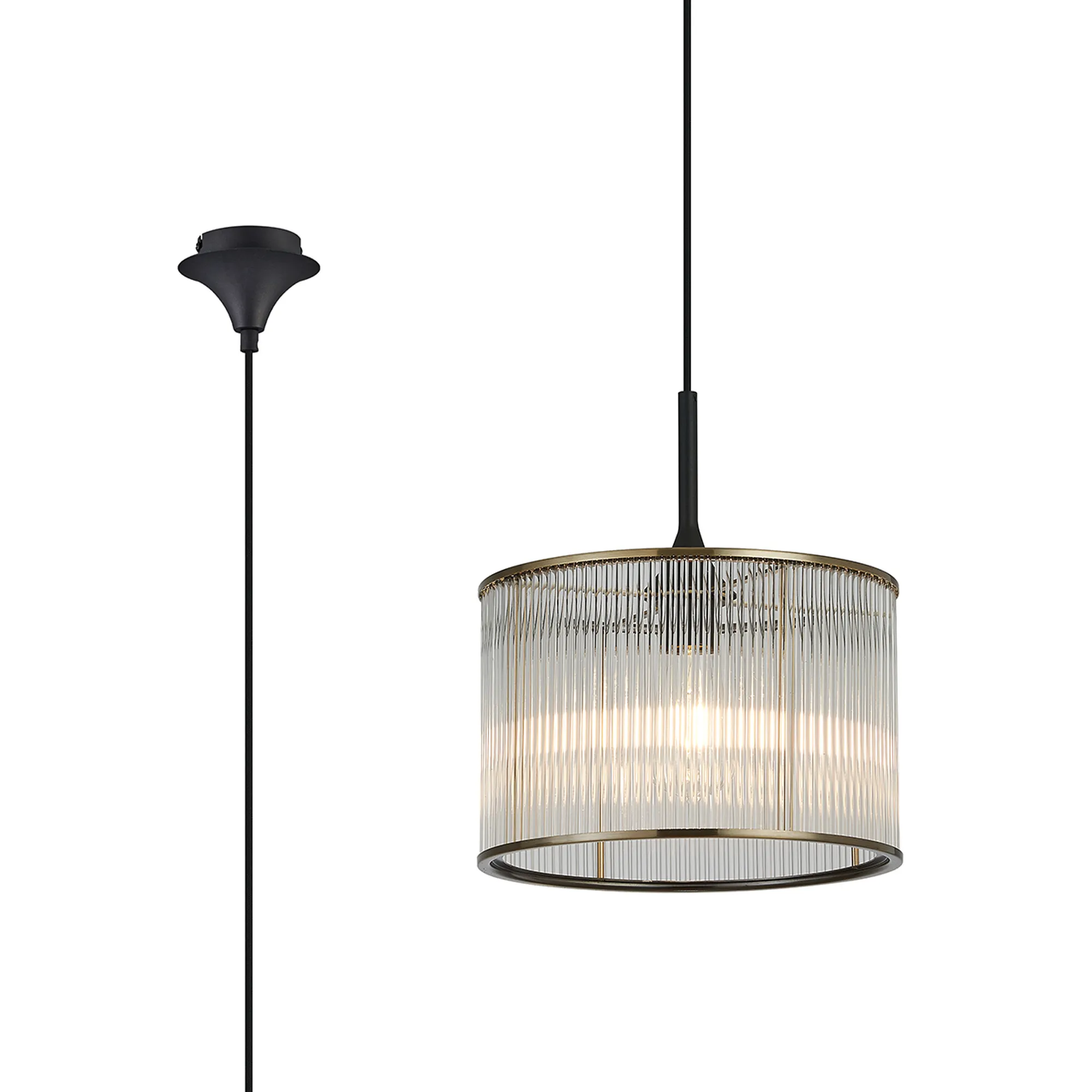 Mangere 20cm Single Pendant, 1 Light Adjustable E27, Brass/Sand Black/Smoke Fade Glass
