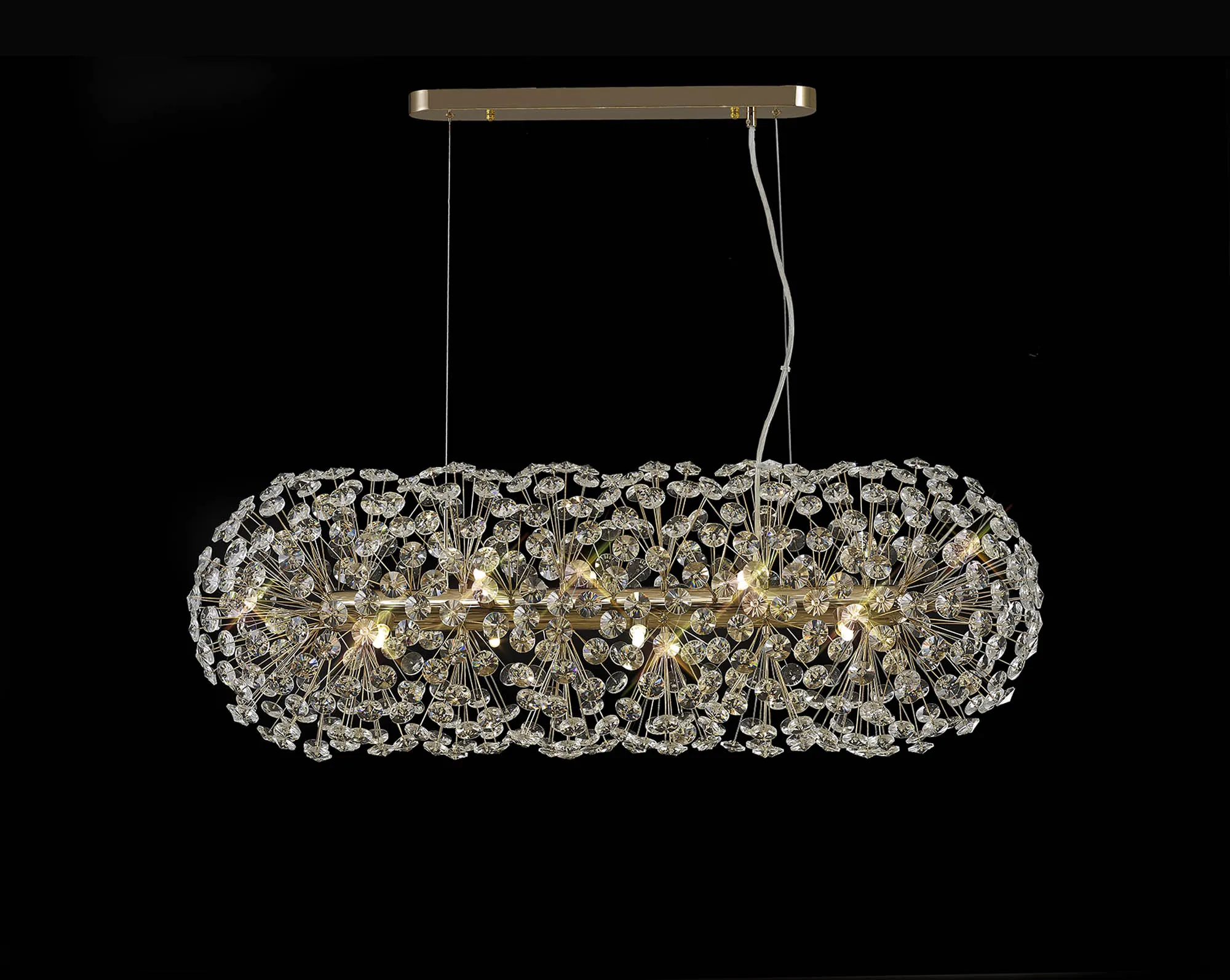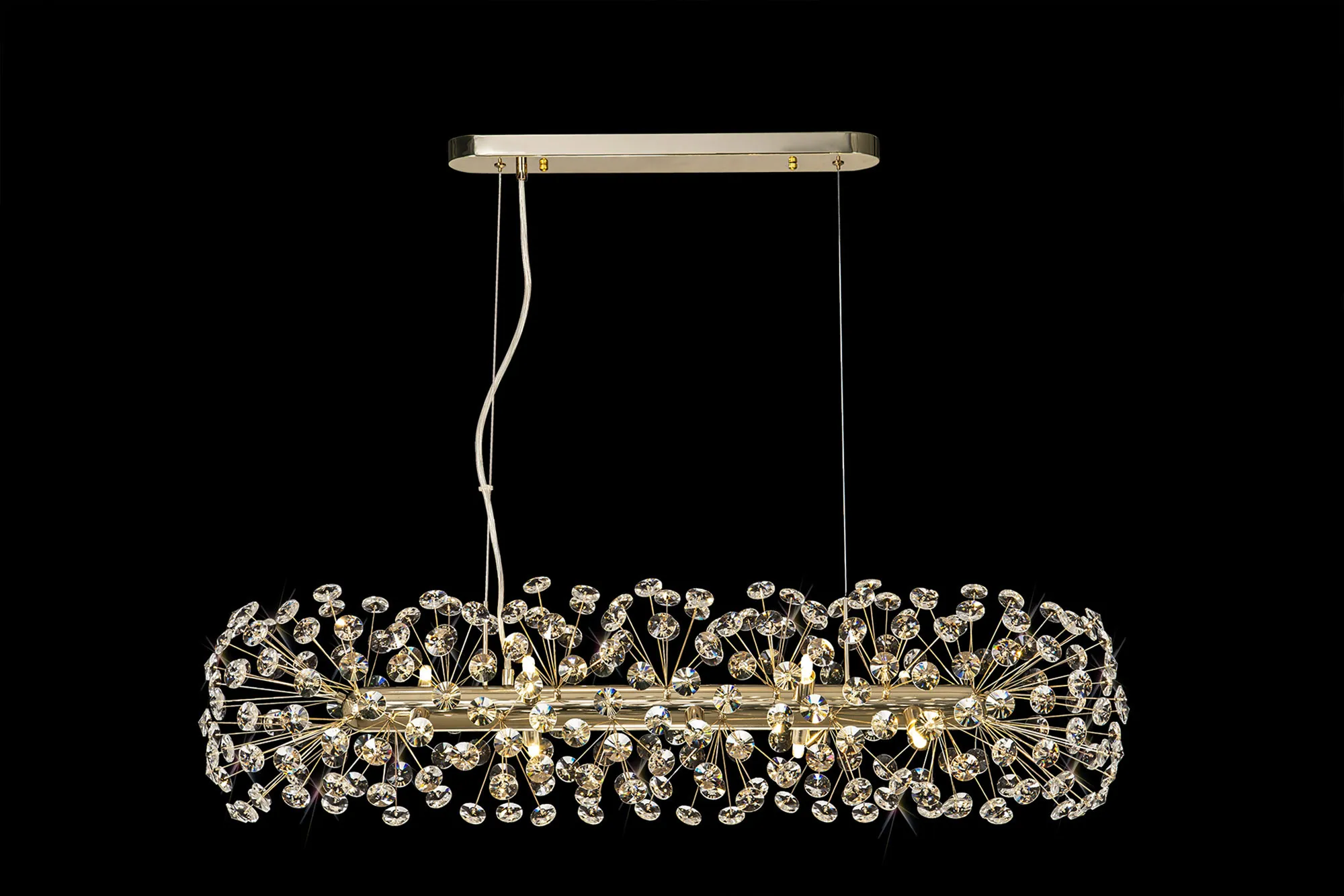 This collection is a beautifully comprehensive lighting range that combines elegance with modern design. Available in polished chrome, French gold, and satin black finishes, each piece features slim, angular stems arranged in an artful, erratic fashion to form a captivating cluster of clear crystal discs. These stems extend from a central framework—available in round, tiered, and oblong linear pendant forms—creating a striking structure around G9 lamp holders. As light passes through the facetted crystal, it refracts beautifully, casting a stunning array of sublime spectrums throughout the space. Already a hugely popular collection, Picton has now been expanded to include an even wider variety of lighting options. In addition to pendants, the range features wall lights, table and floor lamps, ceiling fixtures, and show-stopping spherical pendants with diameters of up to 1.5 metres. With its luxurious finishes, sparkling crystal details, and broad selection of configurations, the Picton range offers dramatic, statement lighting for any interior.