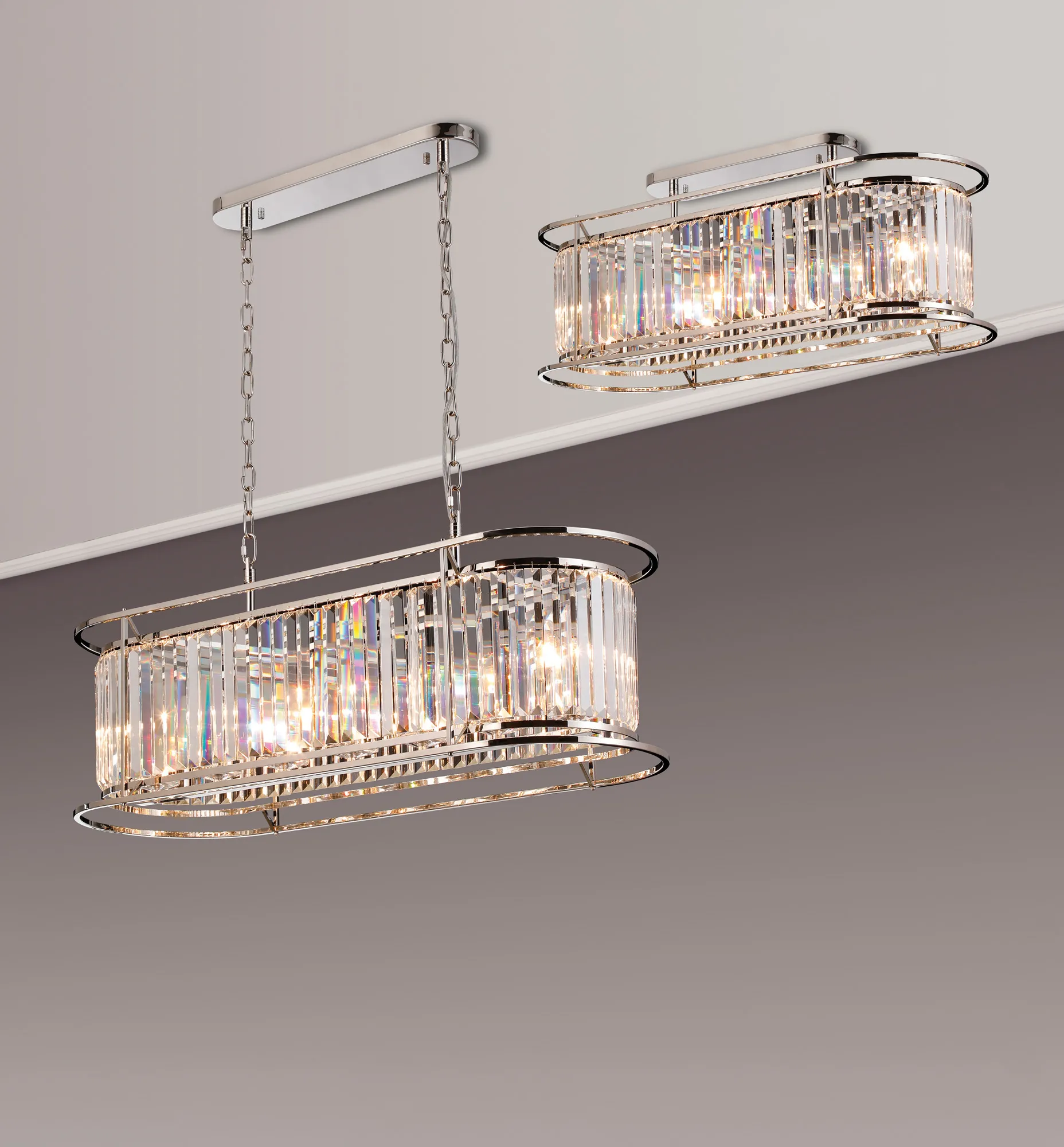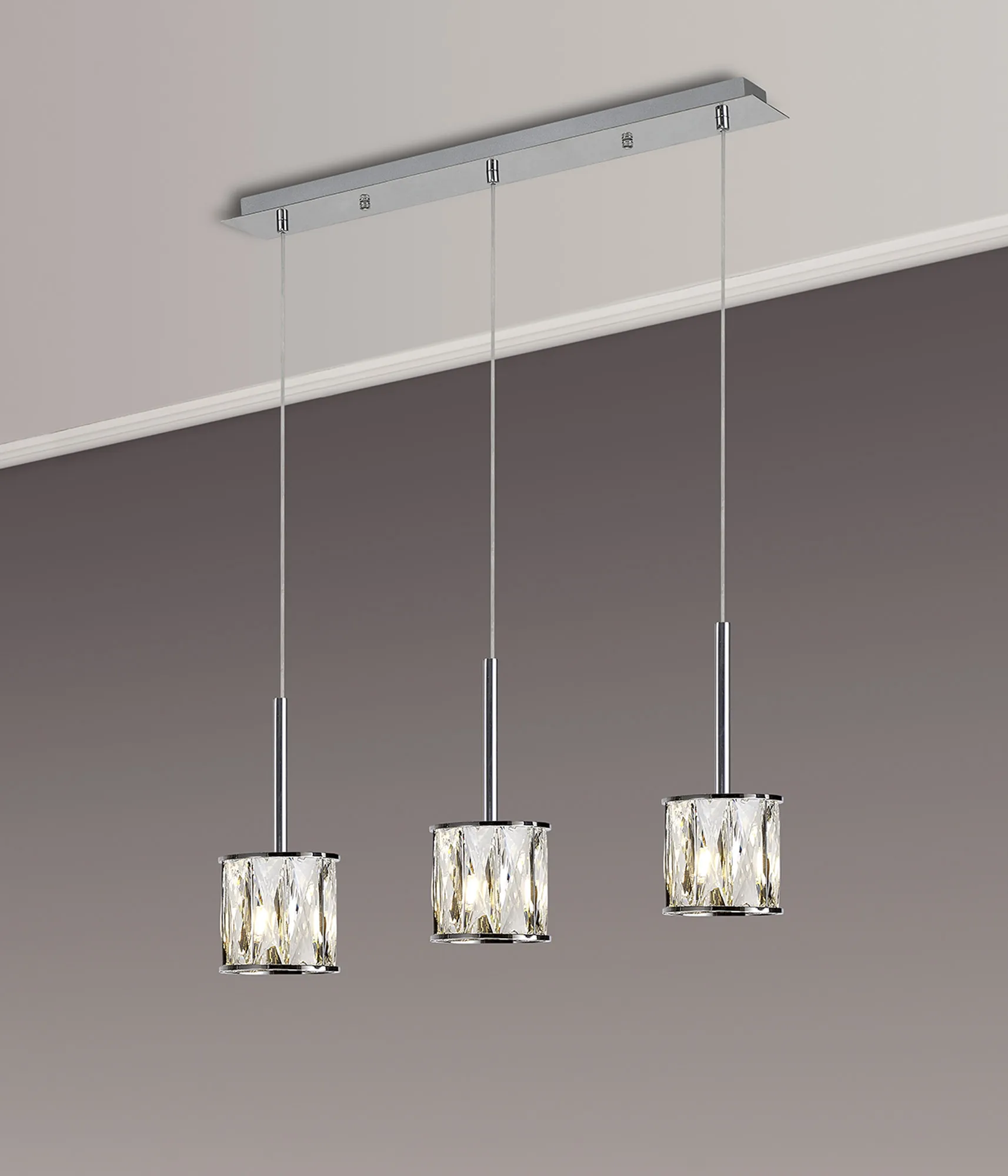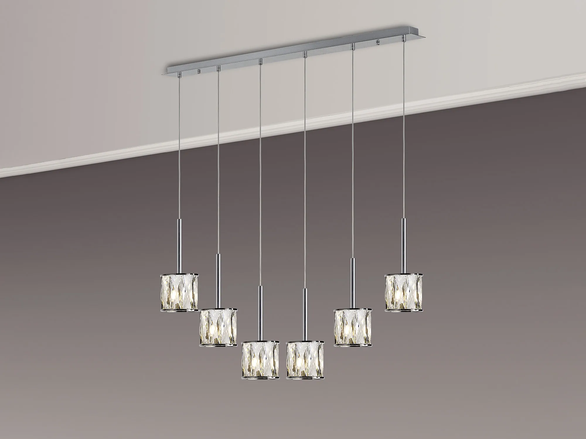 Picton 8 x G9 2m Rectangle Multiple Pendant With Polished Chrome/Crystal Shade