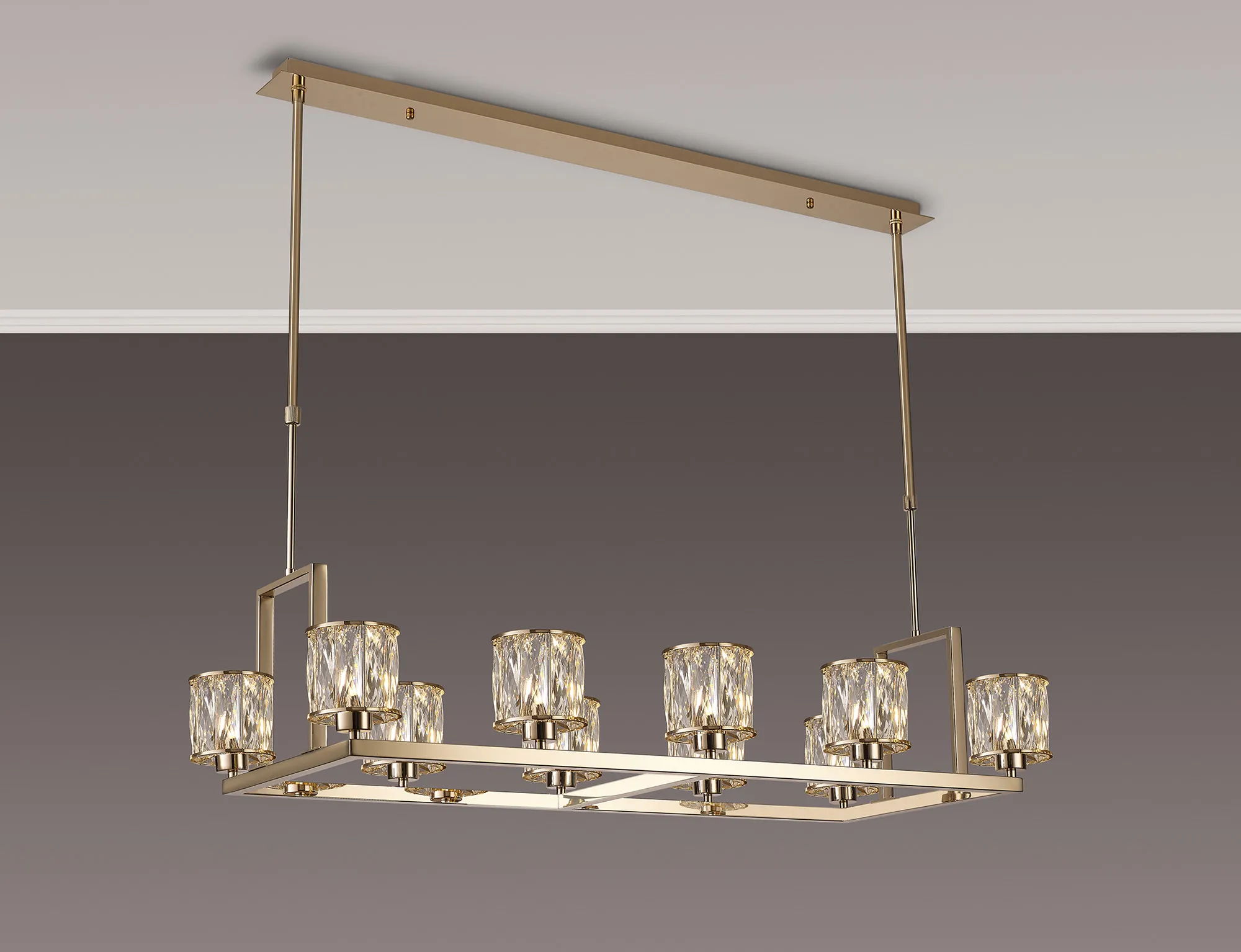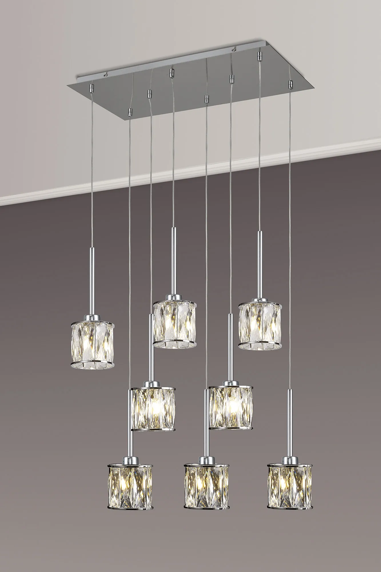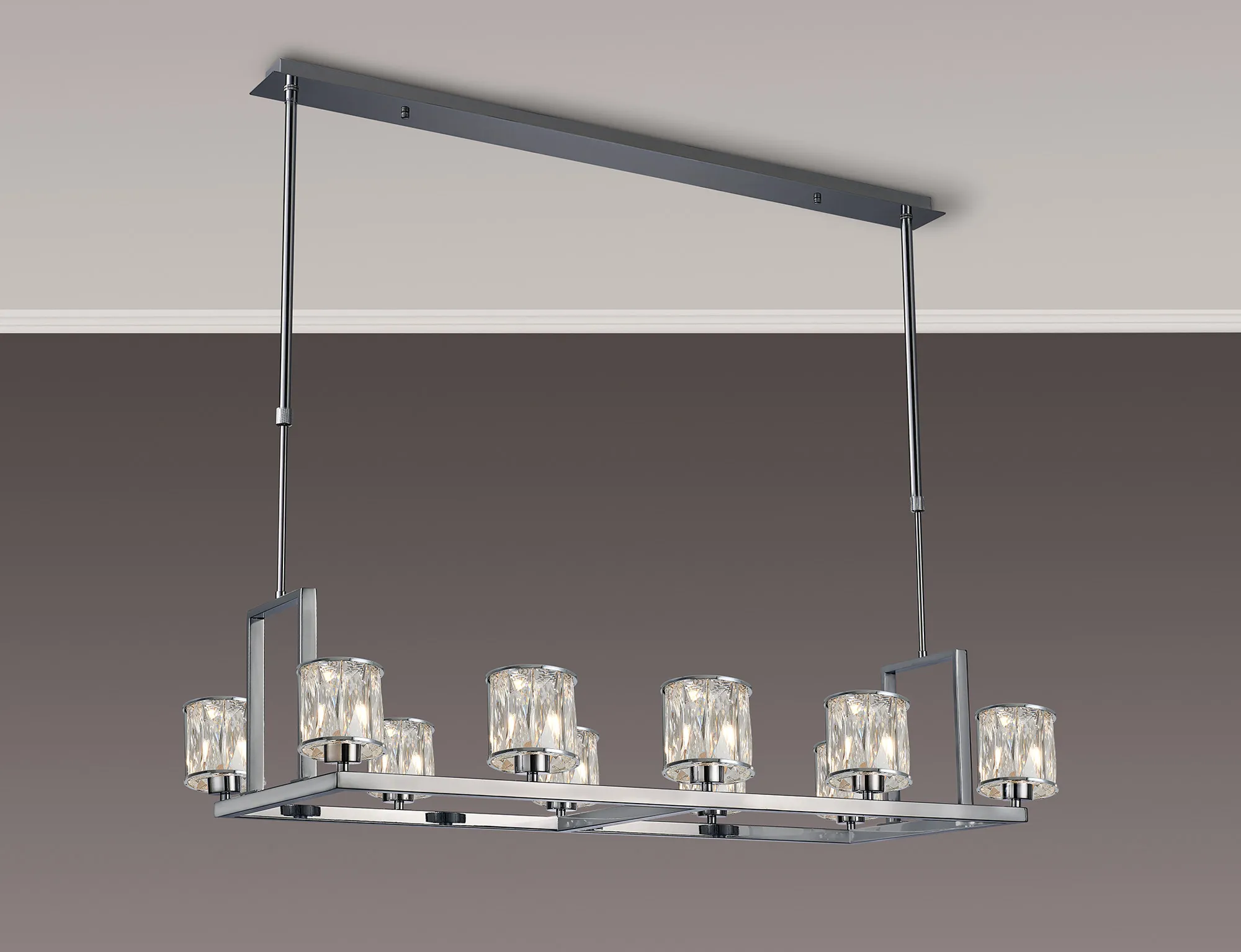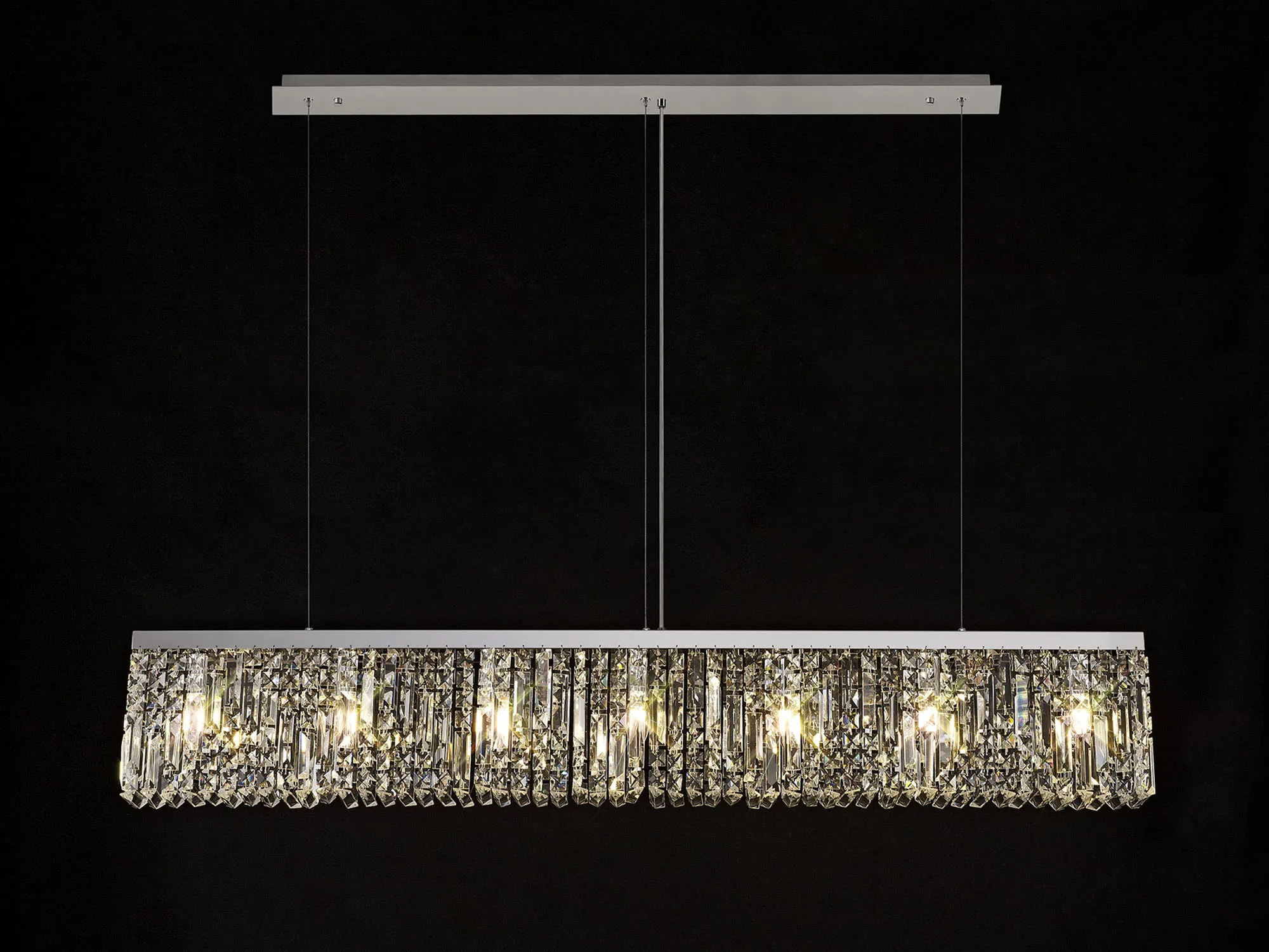 Picton 8 Light G9 2m Rectangle Multiple Pendant With Polished Chrome/Crystal Shade