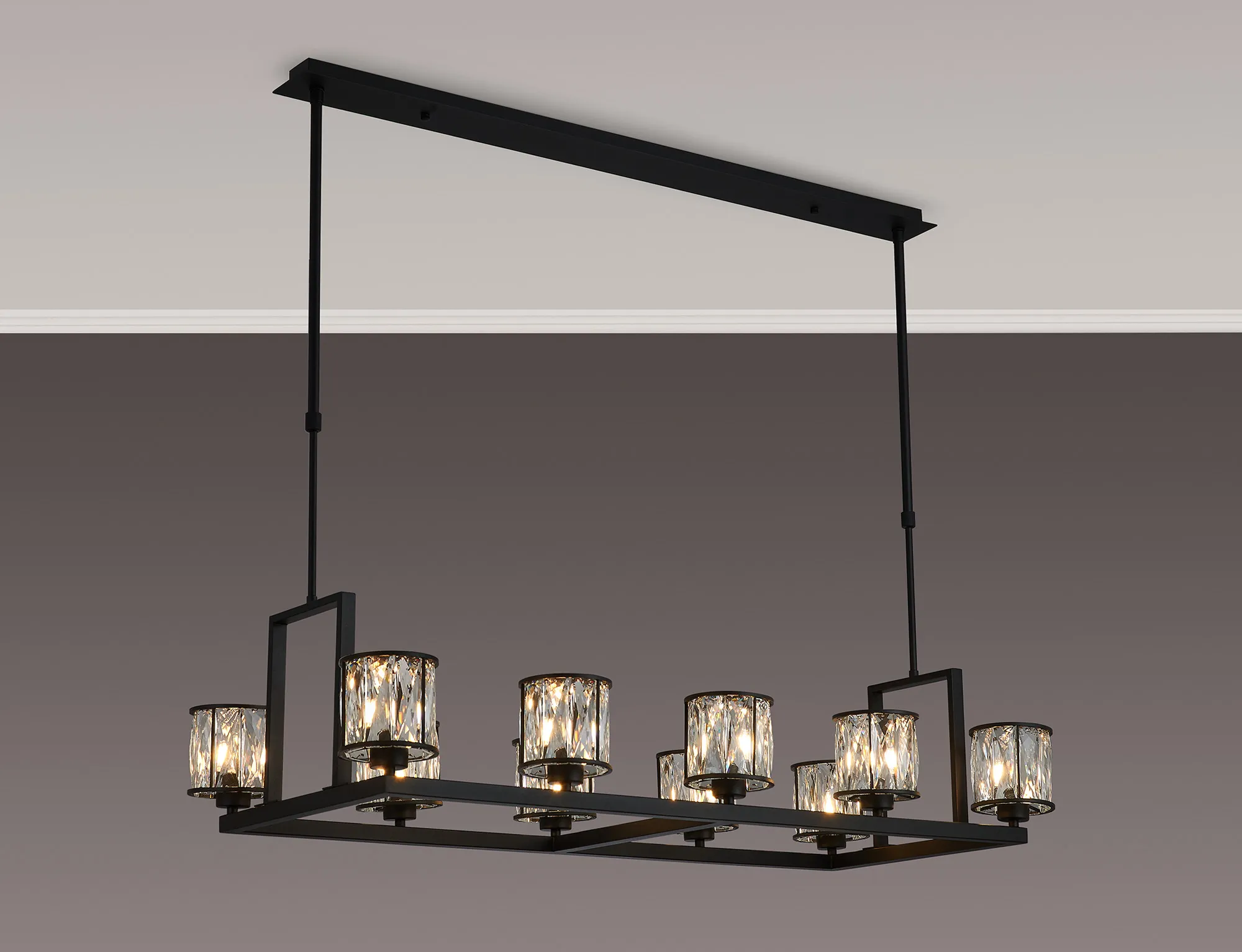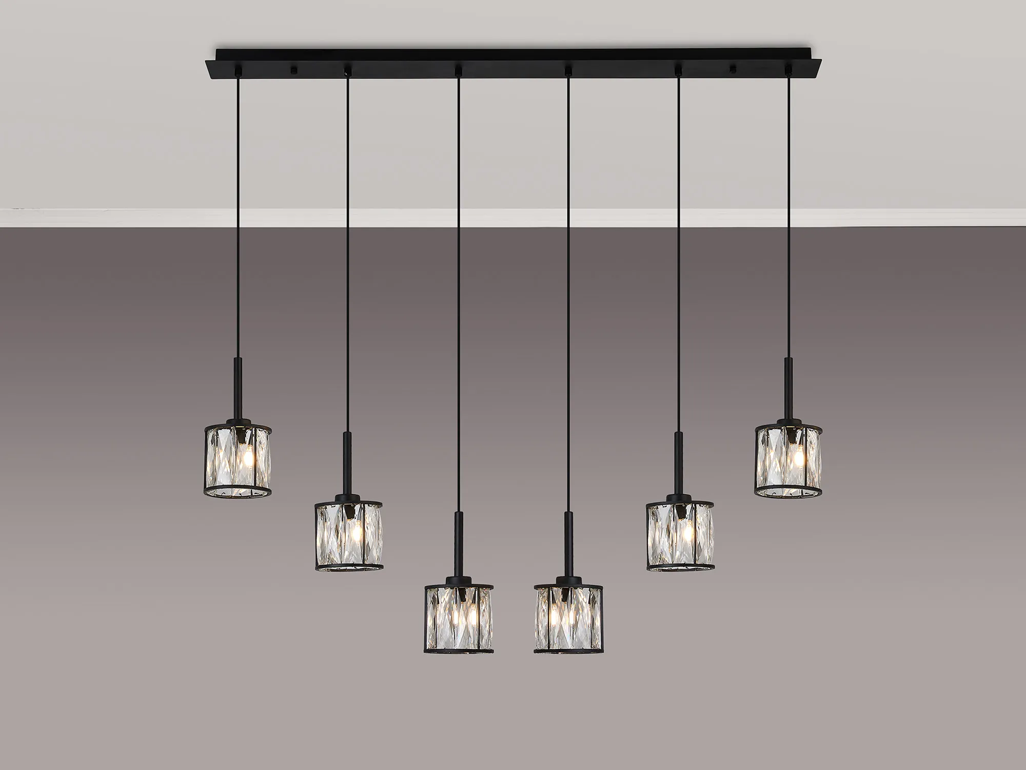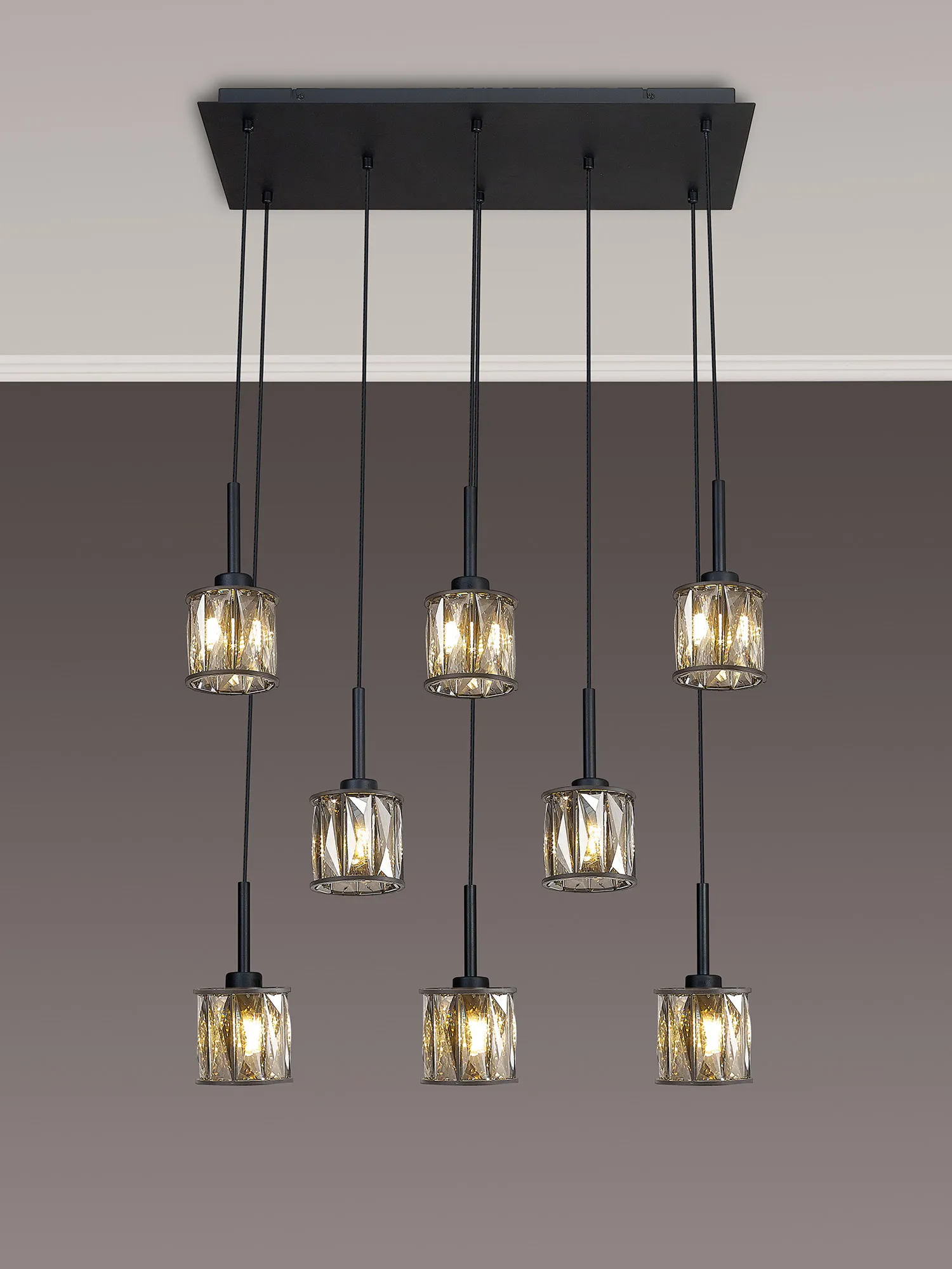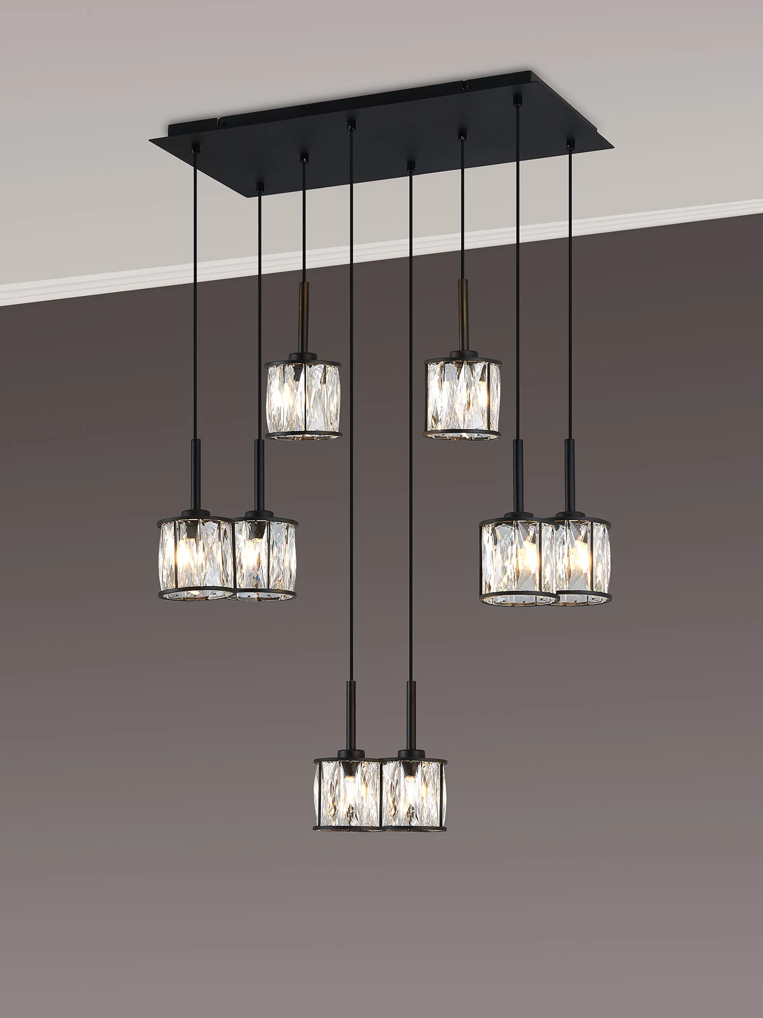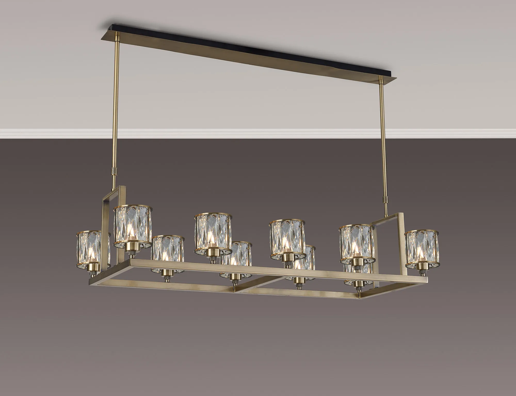Picton 8 Light G9 2m Rectangle Multiple Pendant With Polished Chrome/Crystal Shade