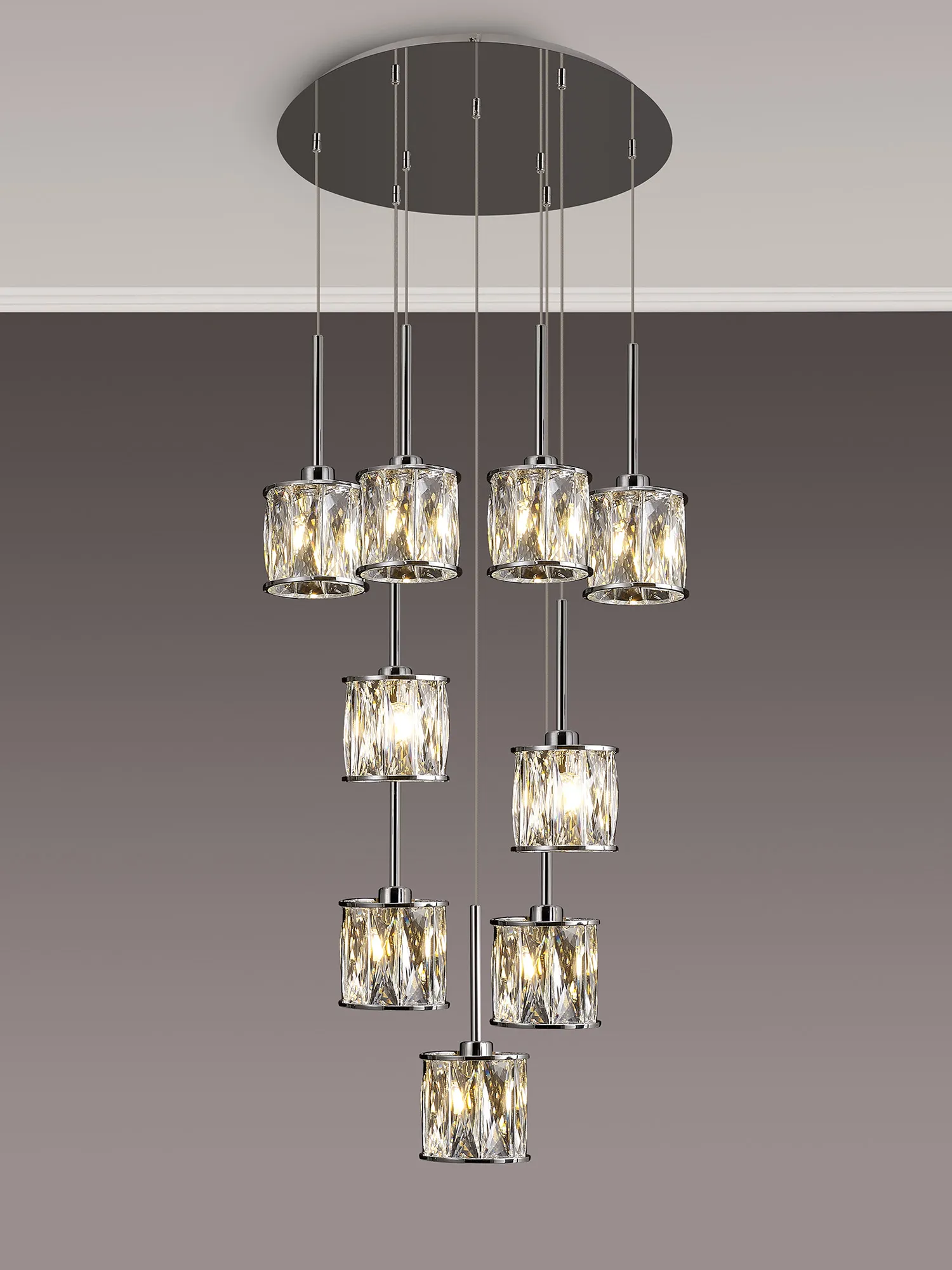 Picton 13 x G9 2.5m Round Multiple Pendant With Polished Chrome/Crystal Shade