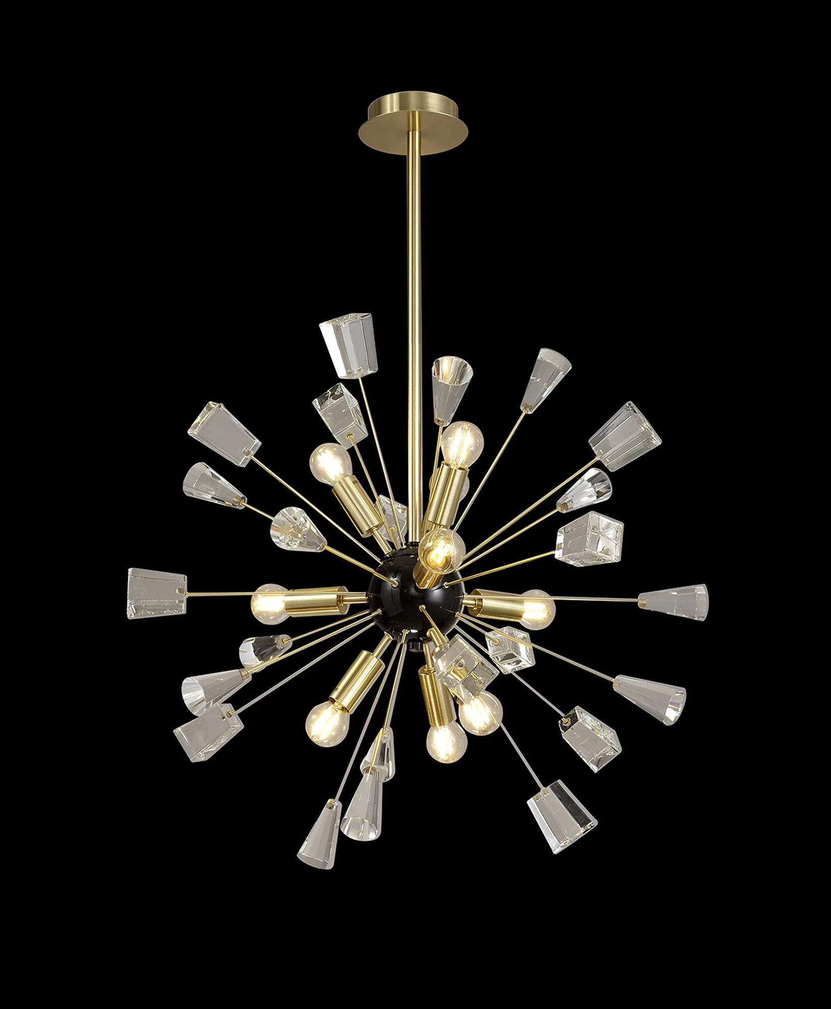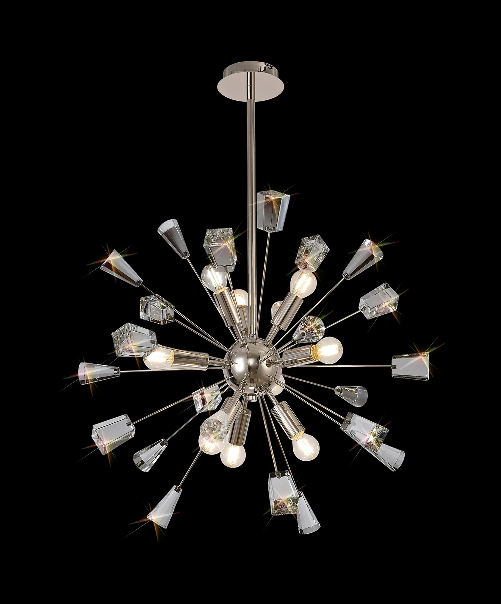 This collection is a beautifully comprehensive lighting range that combines elegance with modern design. Available in polished chrome, French gold, and satin black finishes, each piece features slim, angular stems arranged in an artful, erratic fashion to form a captivating cluster of clear crystal discs. These stems extend from a central framework—available in round, tiered, and oblong linear pendant forms—creating a striking structure around G9 lamp holders. As light passes through the facetted crystal, it refracts beautifully, casting a stunning array of sublime spectrums throughout the space. Already a hugely popular collection, Picton has now been expanded to include an even wider variety of lighting options. In addition to pendants, the range features wall lights, table and floor lamps, ceiling fixtures, and show-stopping spherical pendants with diameters of up to 1.5 metres. With its luxurious finishes, sparkling crystal details, and broad selection of configurations, the Picton range offers dramatic, statement lighting for any interior.