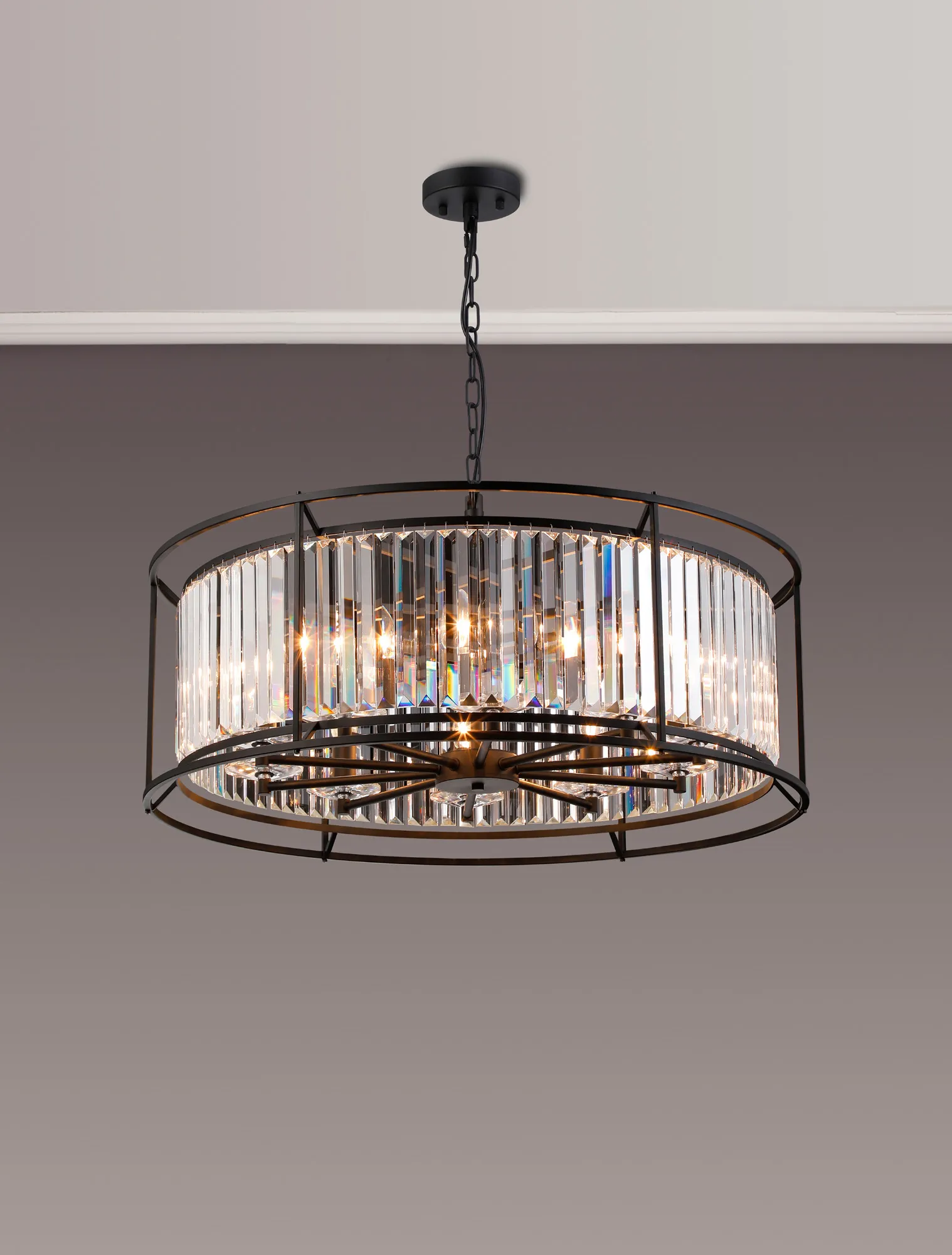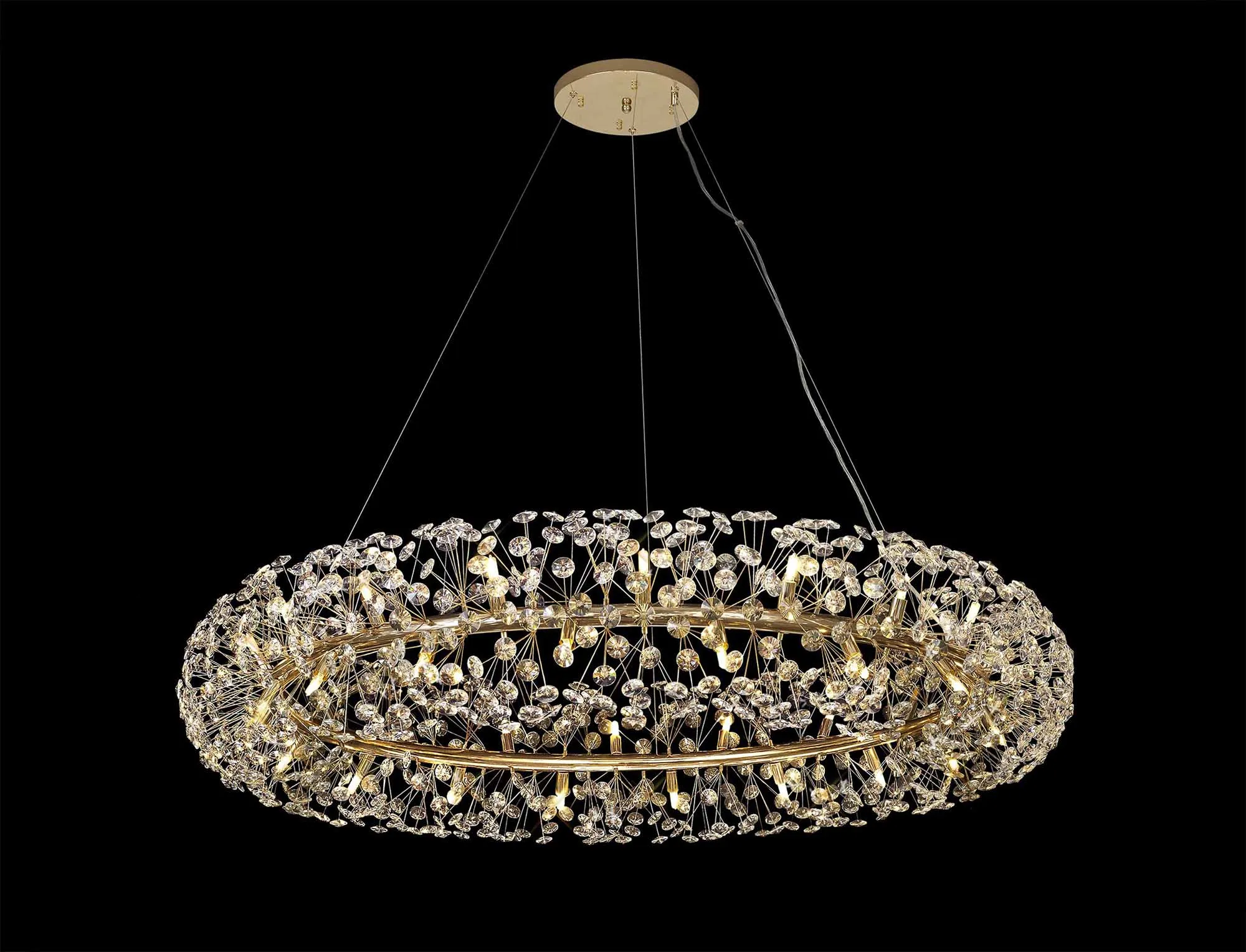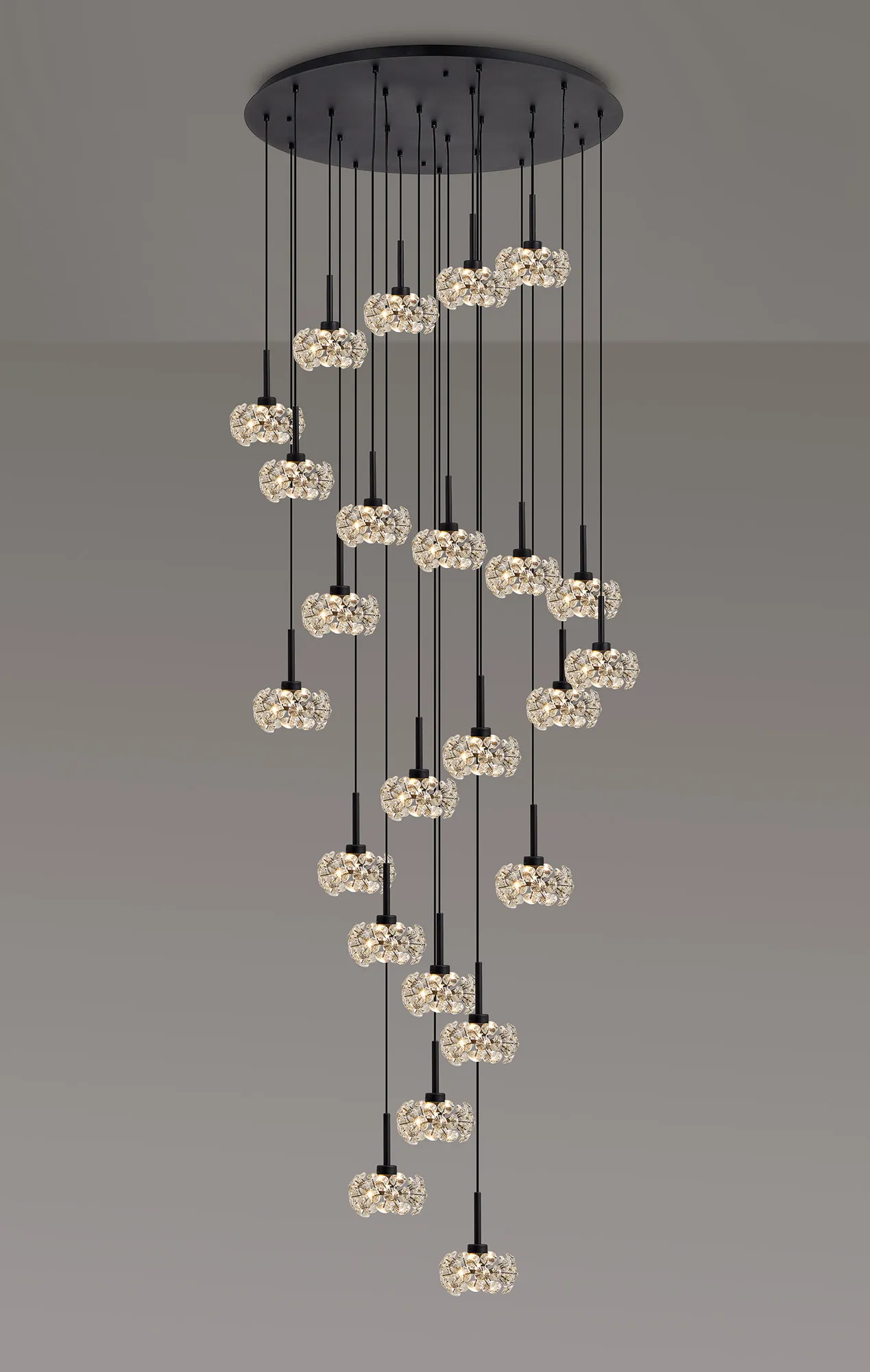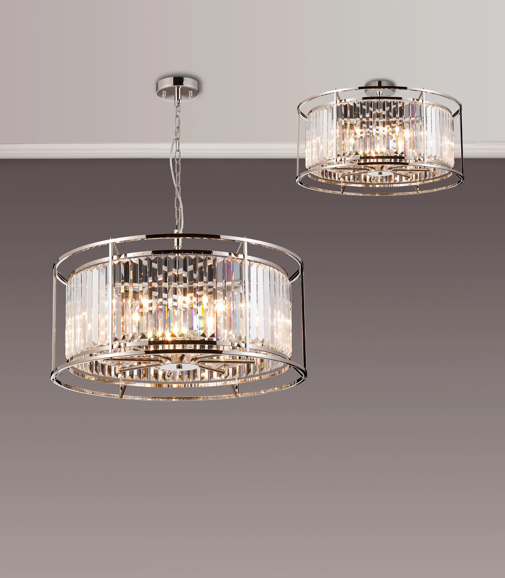 This collection is a beautifully comprehensive lighting range that combines elegance with modern design. Available in polished chrome, French gold, and satin black finishes, each piece features slim, angular stems arranged in an artful, erratic fashion to form a captivating cluster of clear crystal discs. These stems extend from a central framework—available in round, tiered, and oblong linear pendant forms—creating a striking structure around G9 lamp holders. As light passes through the facetted crystal, it refracts beautifully, casting a stunning array of sublime spectrums throughout the space. Already a hugely popular collection, Picton has now been expanded to include an even wider variety of lighting options. In addition to pendants, the range features wall lights, table and floor lamps, ceiling fixtures, and show-stopping spherical pendants with diameters of up to 1.5 metres. With its luxurious finishes, sparkling crystal details, and broad selection of configurations, the Picton range offers dramatic, statement lighting for any interior.