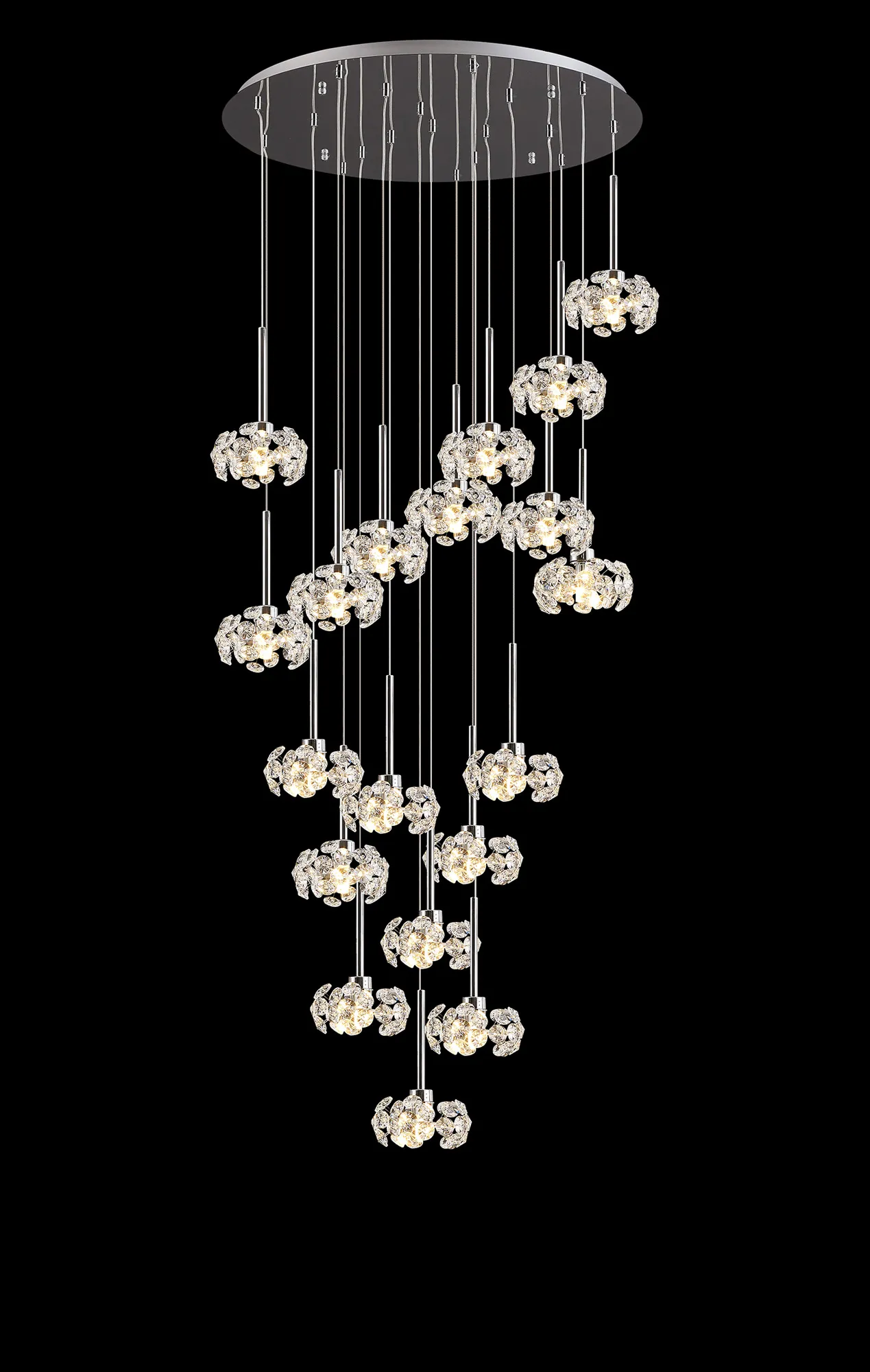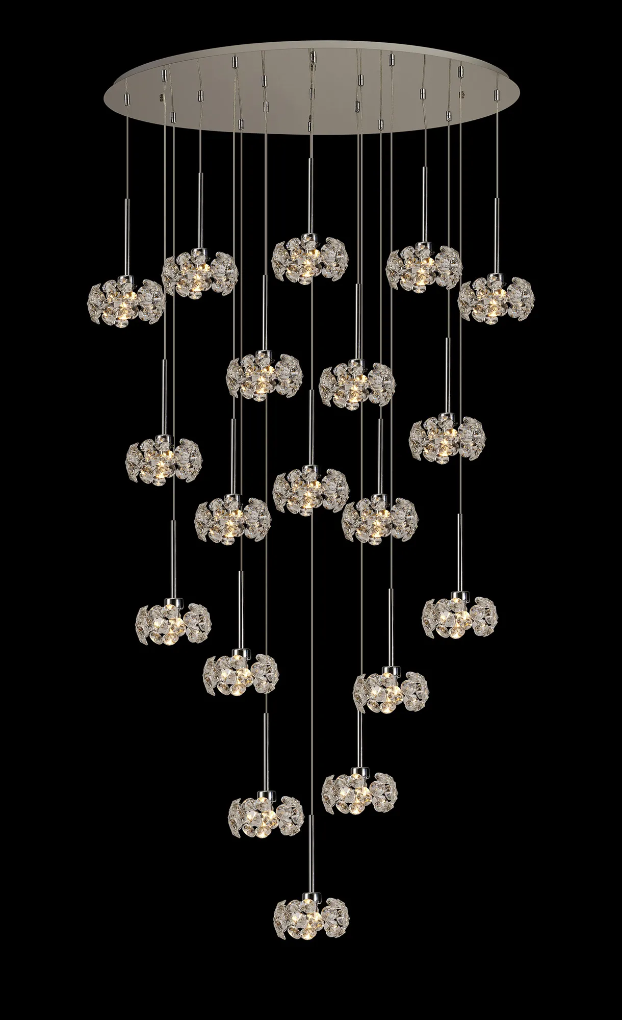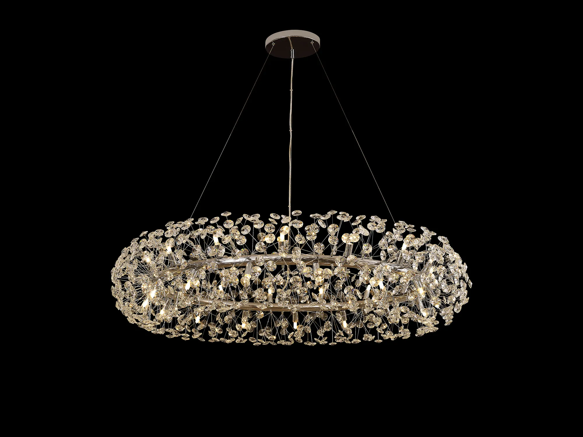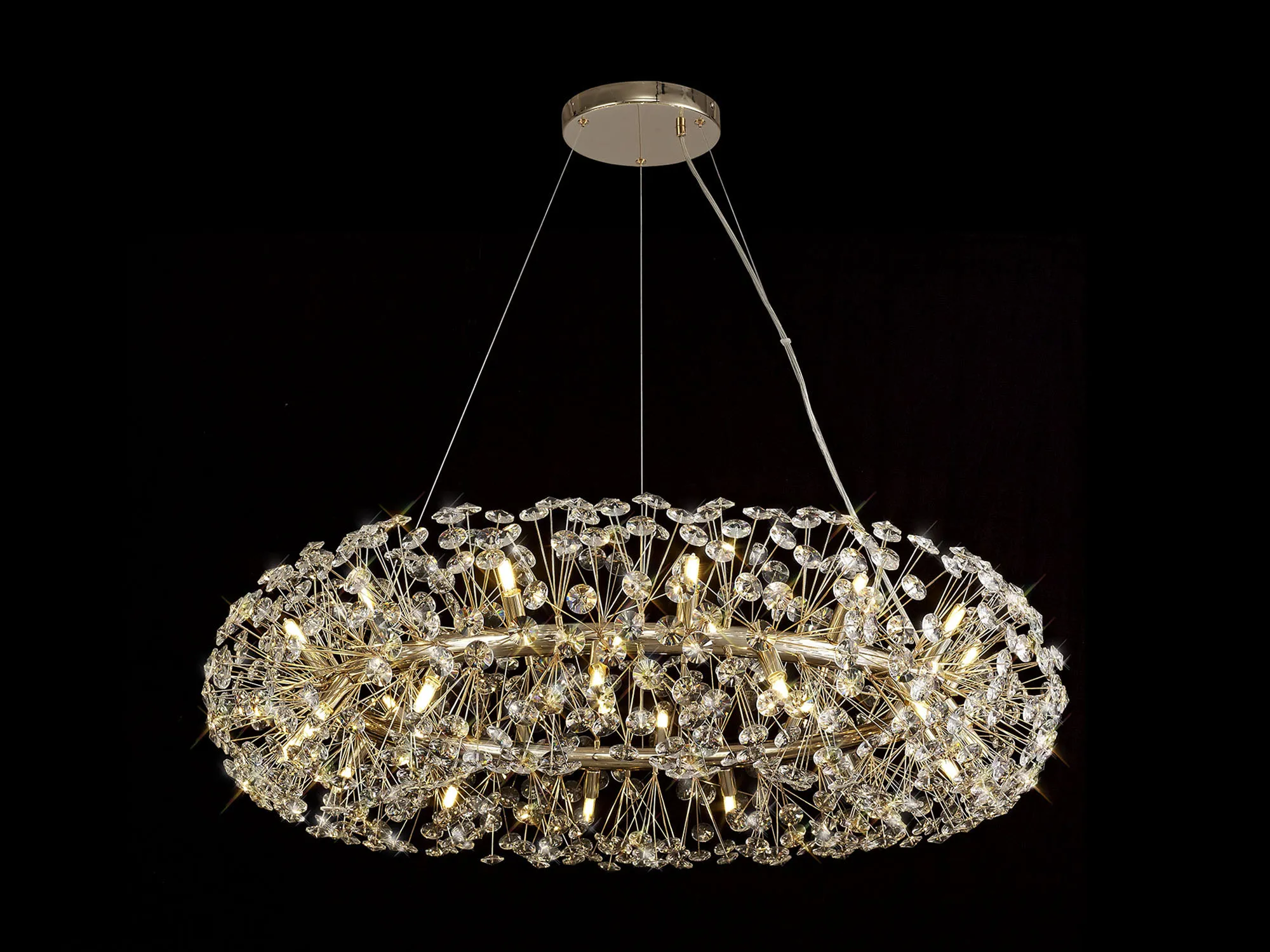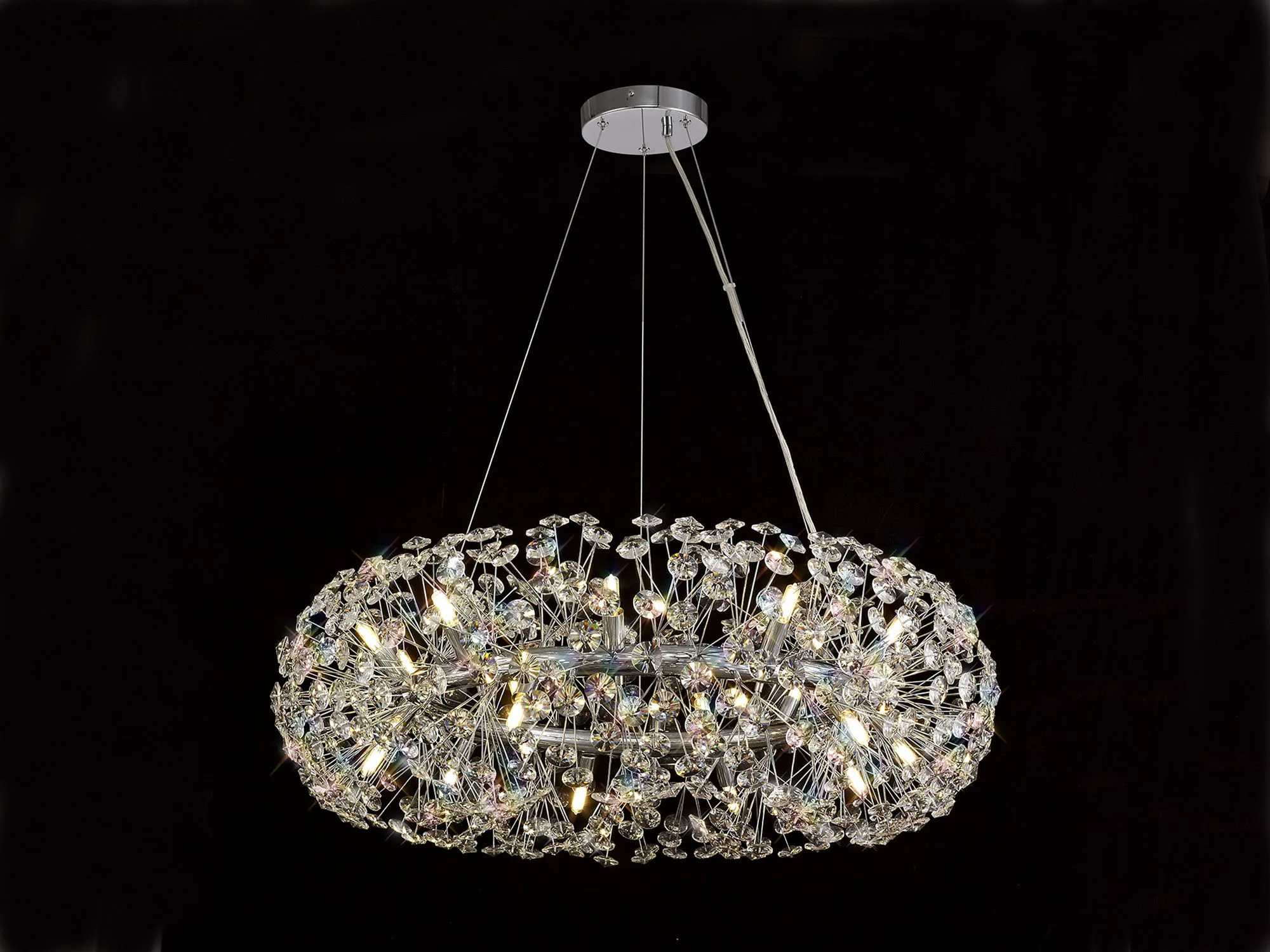 Picton 97x57cm 19 Light G9 3.5m Oval Multiple Pendant With Polished Chrome/Crystal Shade, Item Weight: 18.4kg
