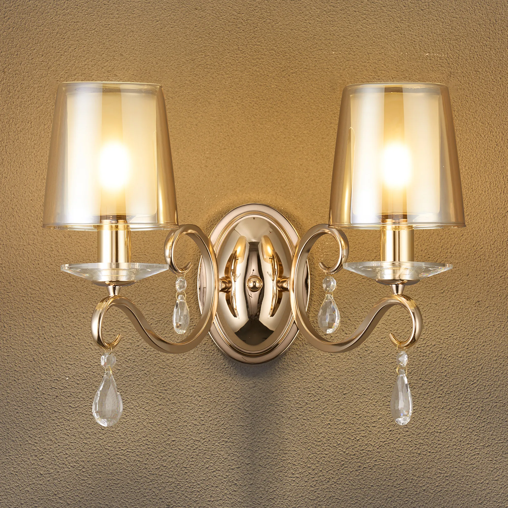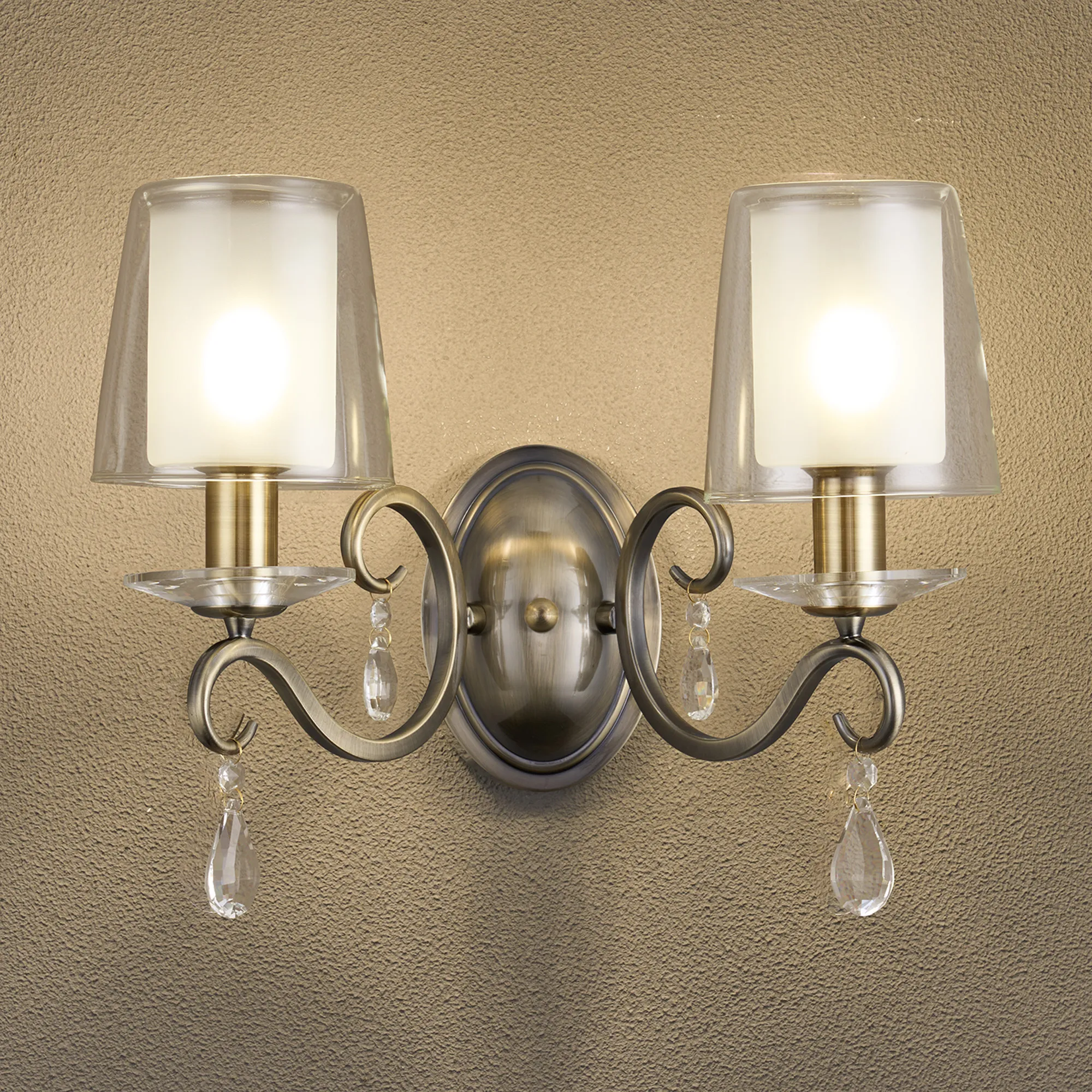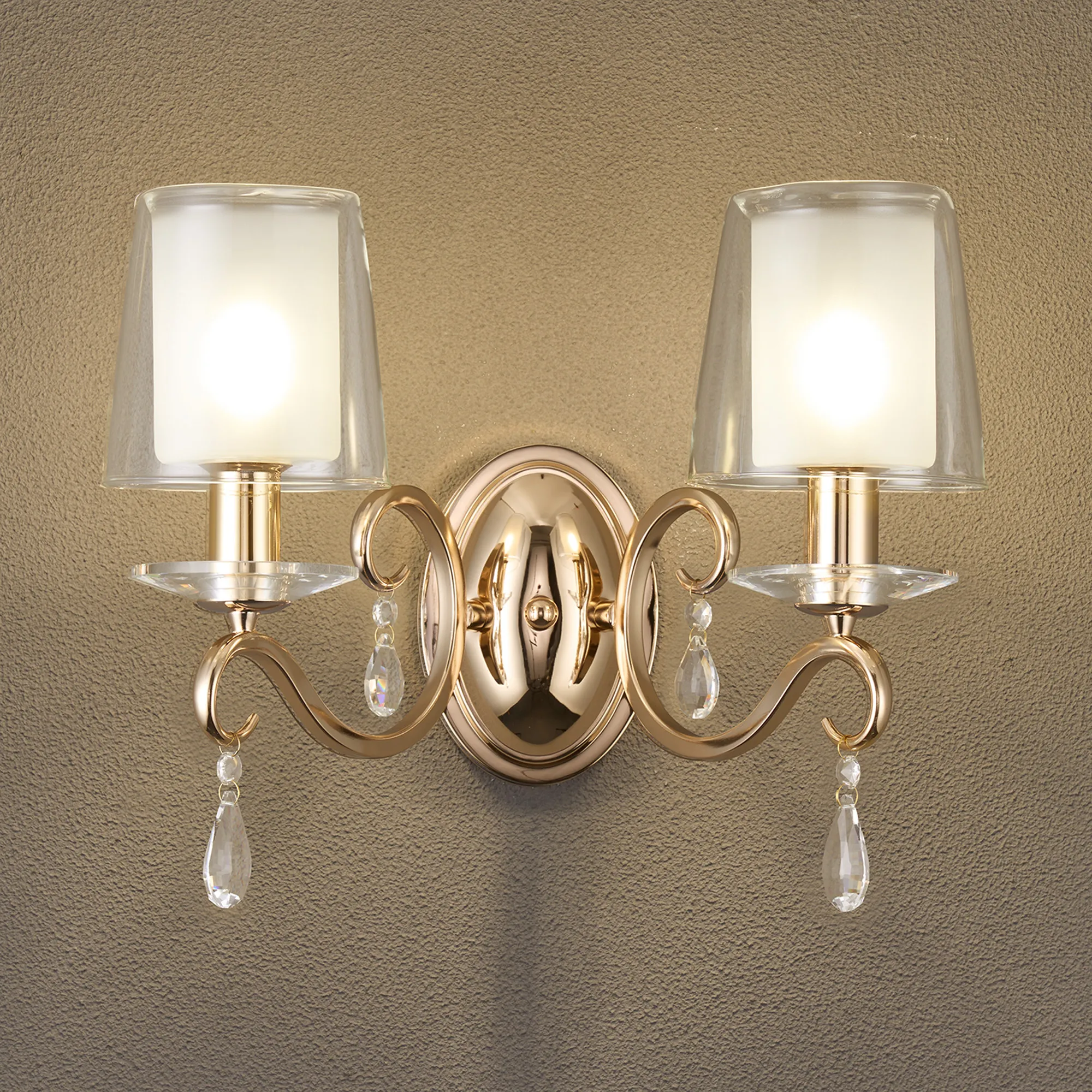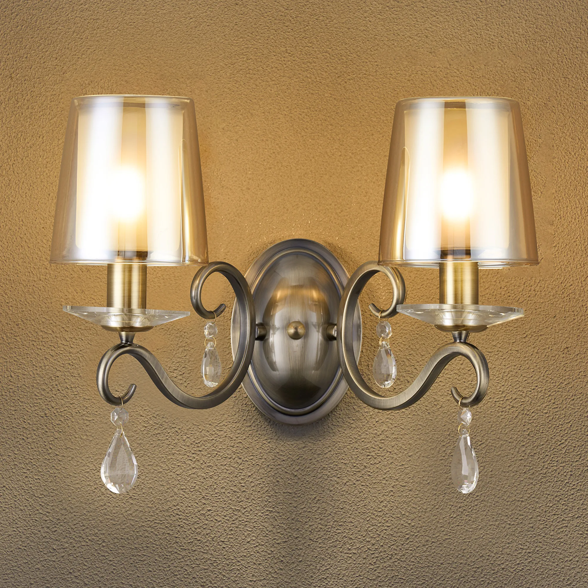 Picton Satin Black 2 x G9 Switched Wall Lamp With Plug Satin Black & Crystal Shade