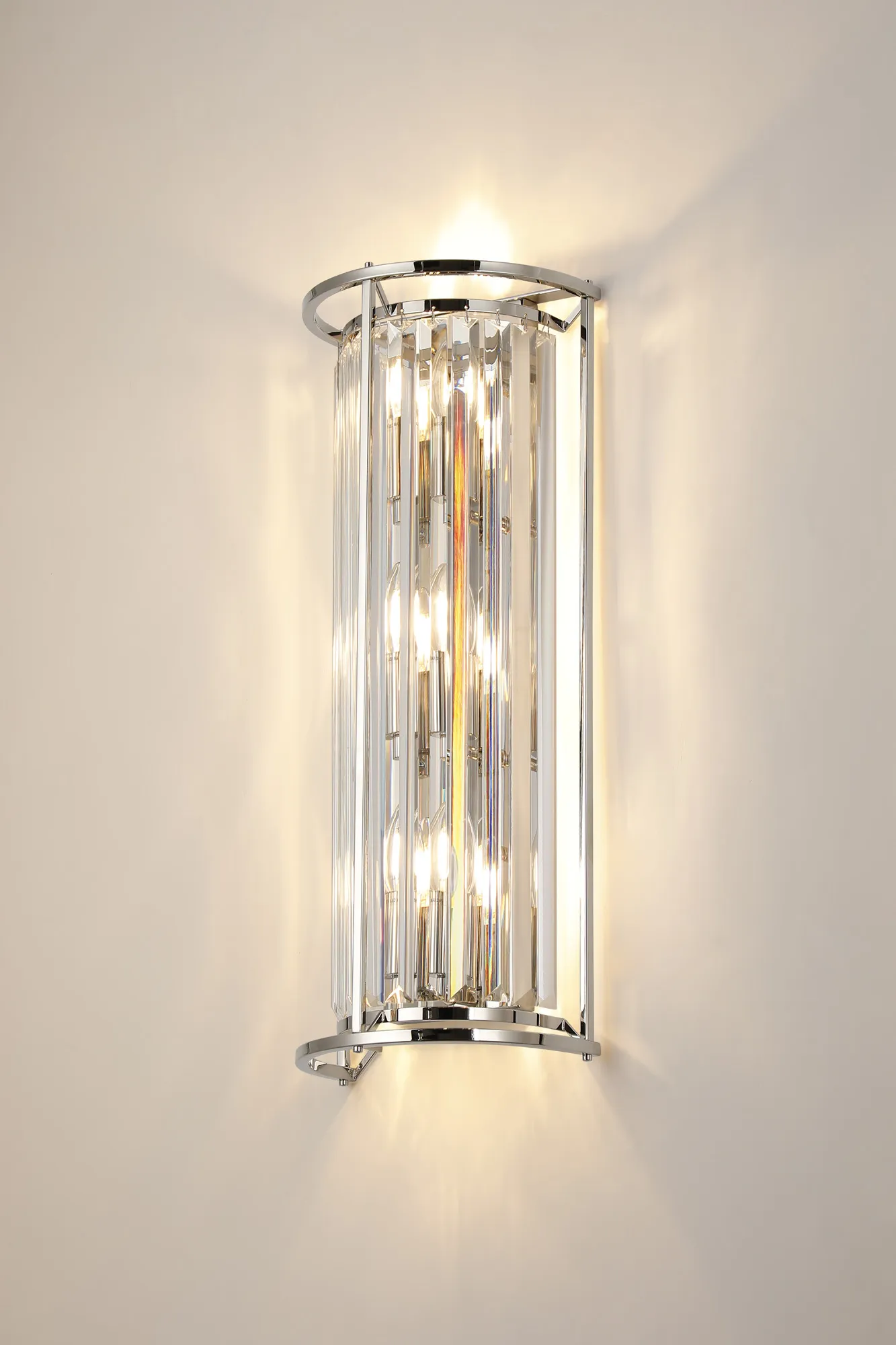 Picton 85cm 2 Light G9 Switched Wall Lamp With Plug Satin Black/Clear Crystal Shade
