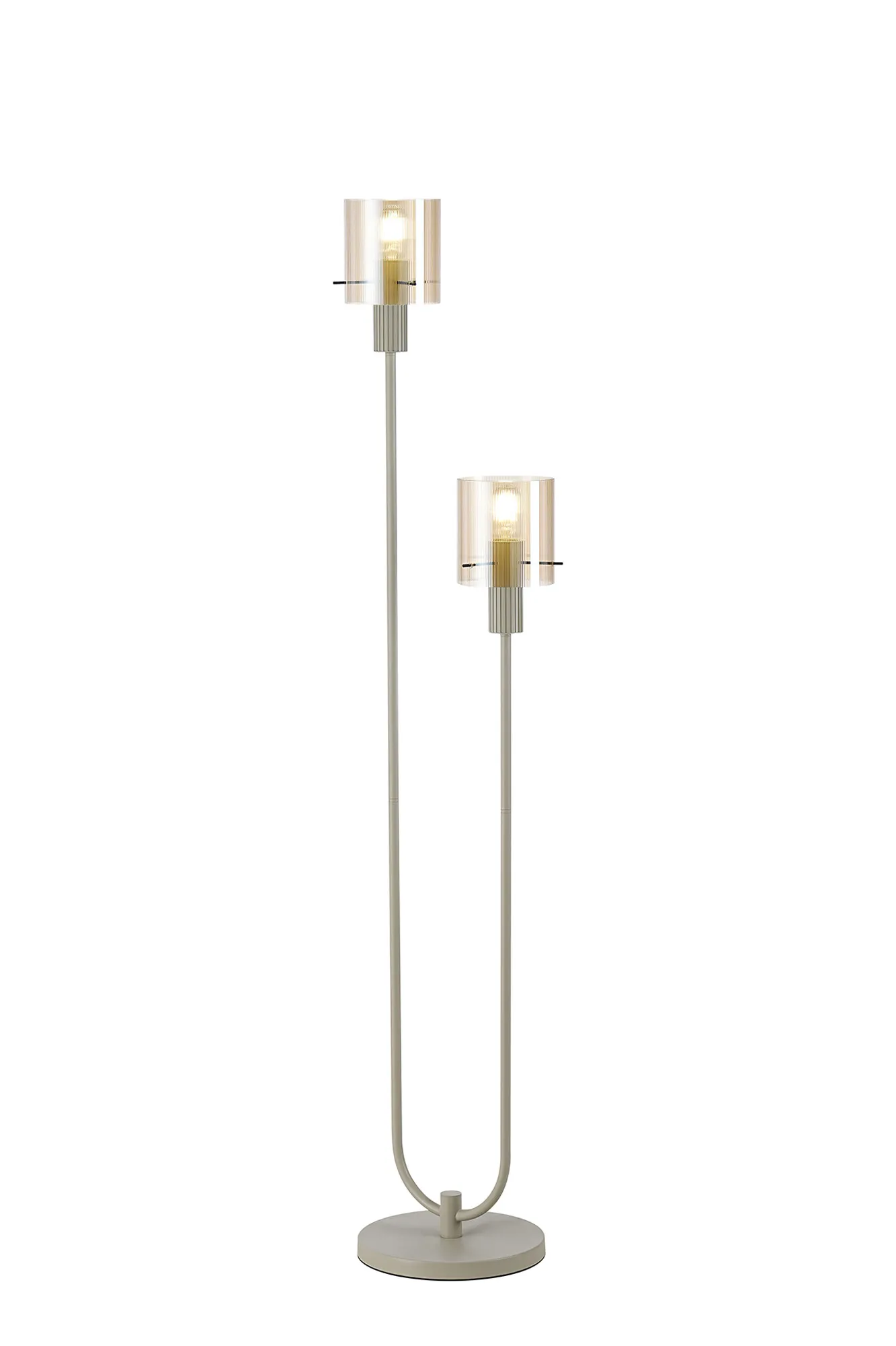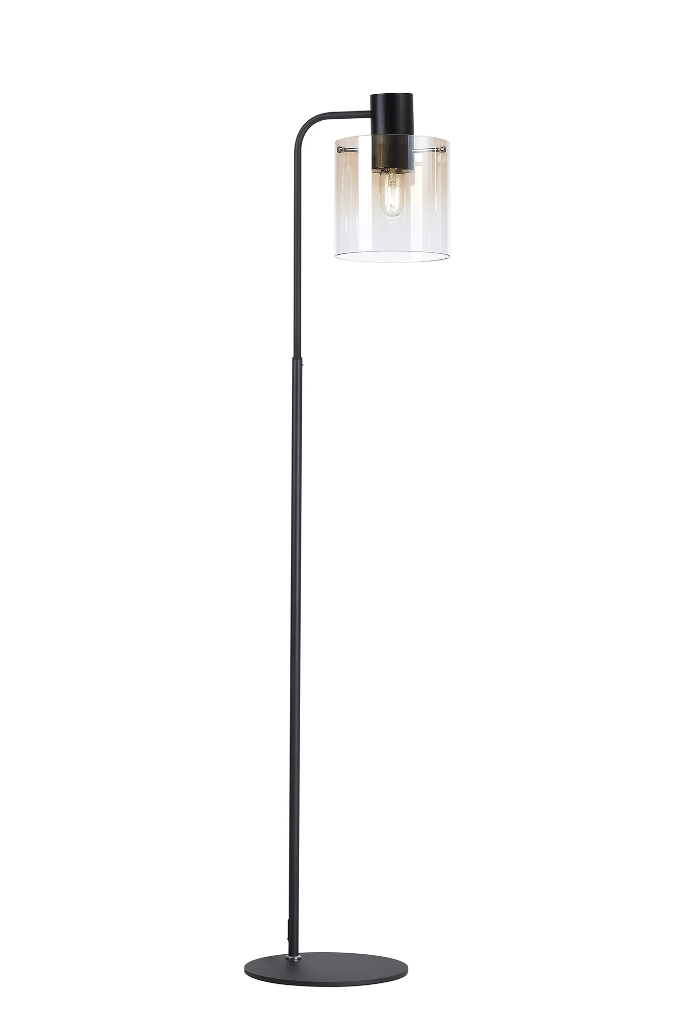 Mangere Large Floor Lamp, 1 Light E27, Brass/Sand Black/Smoke Fade Glass