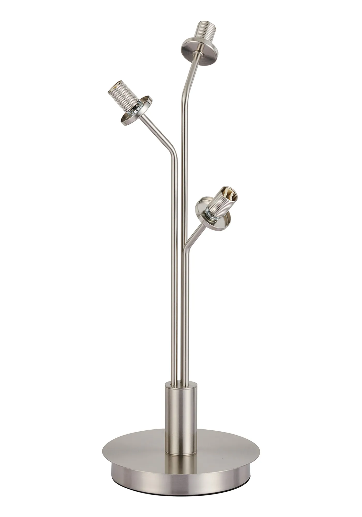 Revelstoke Satin Nickel 3 Light E14 Table Lamp Without Shade, Suitable For A Vast Selection Of Glass Shades