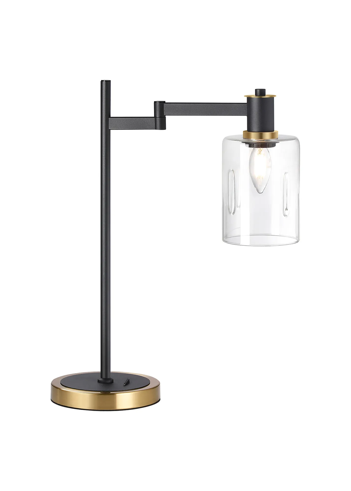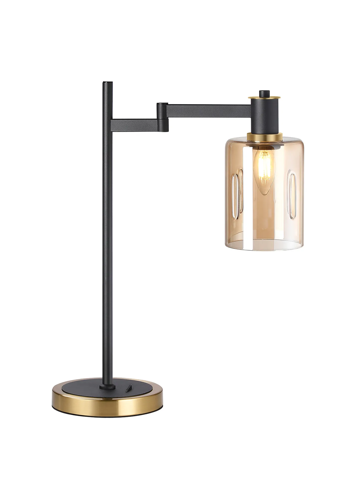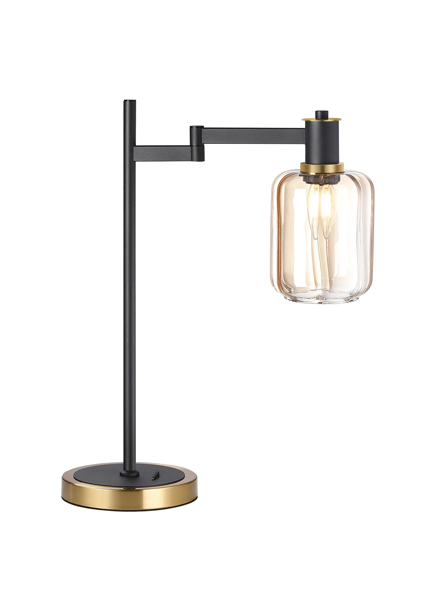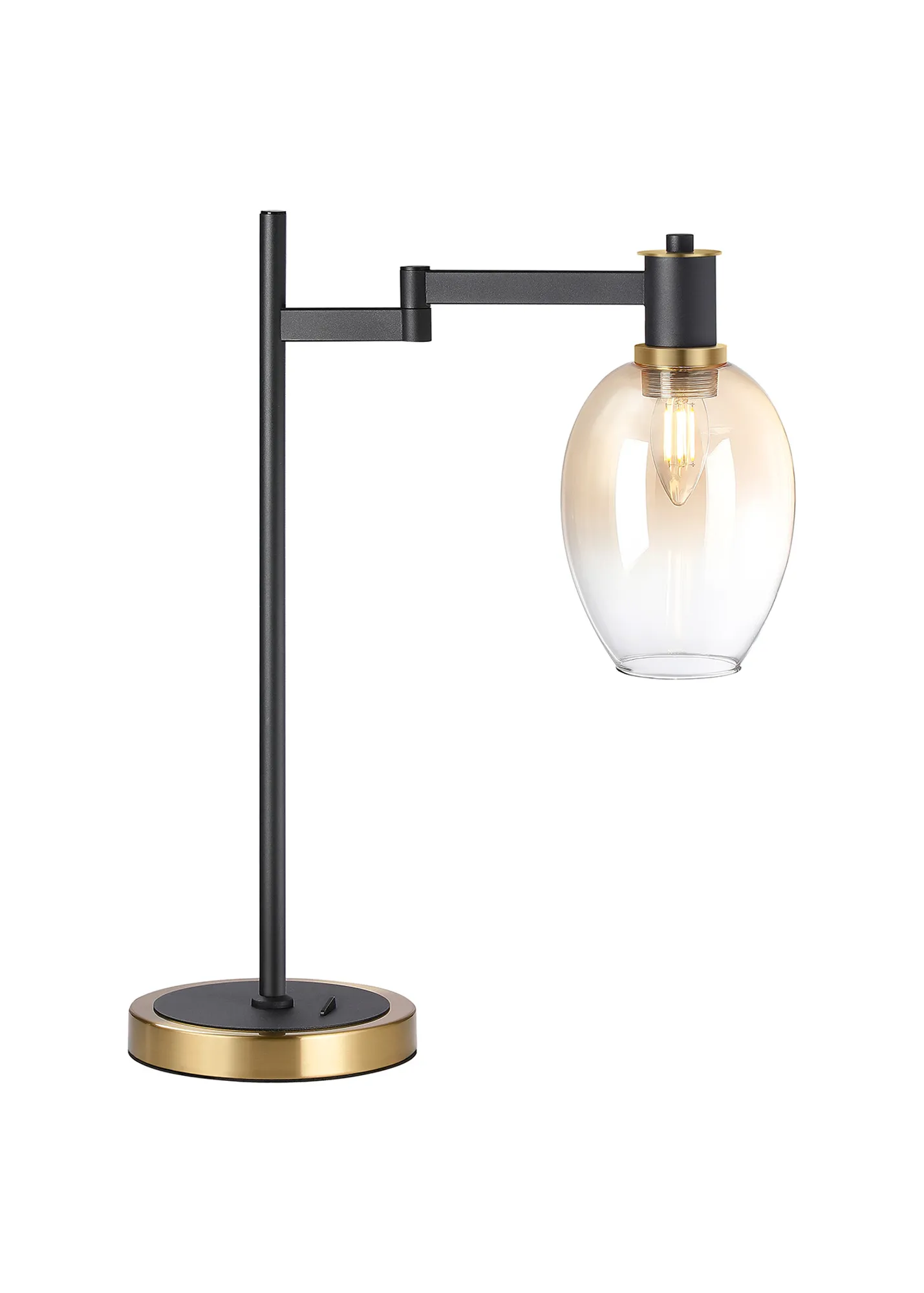 Mangere Large Table Lamp, 1 x E27, Black/Amber Fade Glass