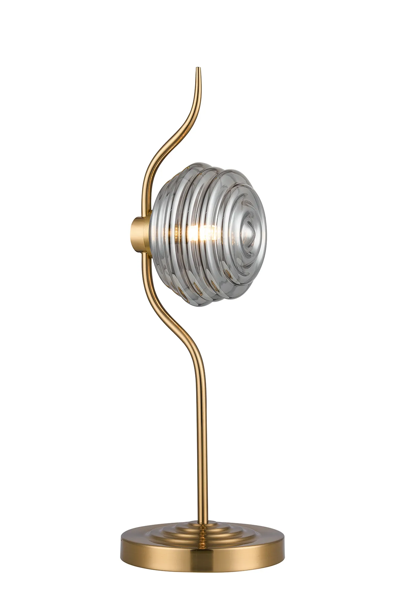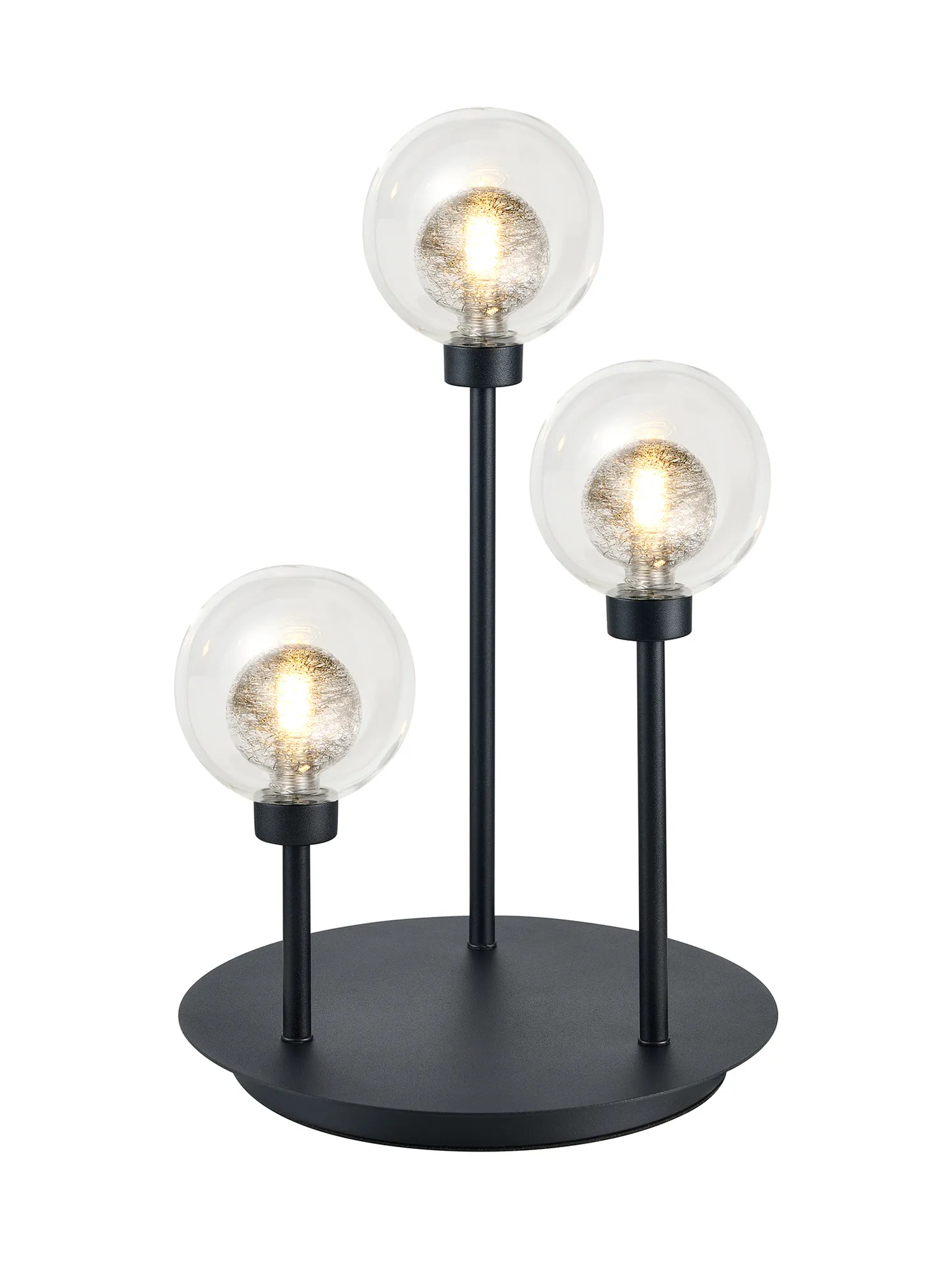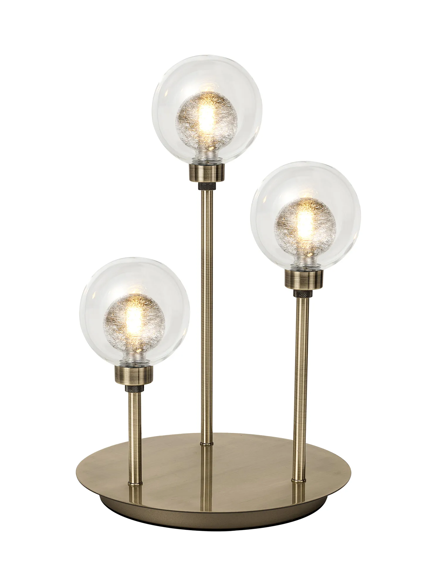 Fernie Table Lamp Touch Switch, 3 Light E14, With 15cm Round Brown & Amber Tortoise Shell Glass Shade, Brass & Satin Black