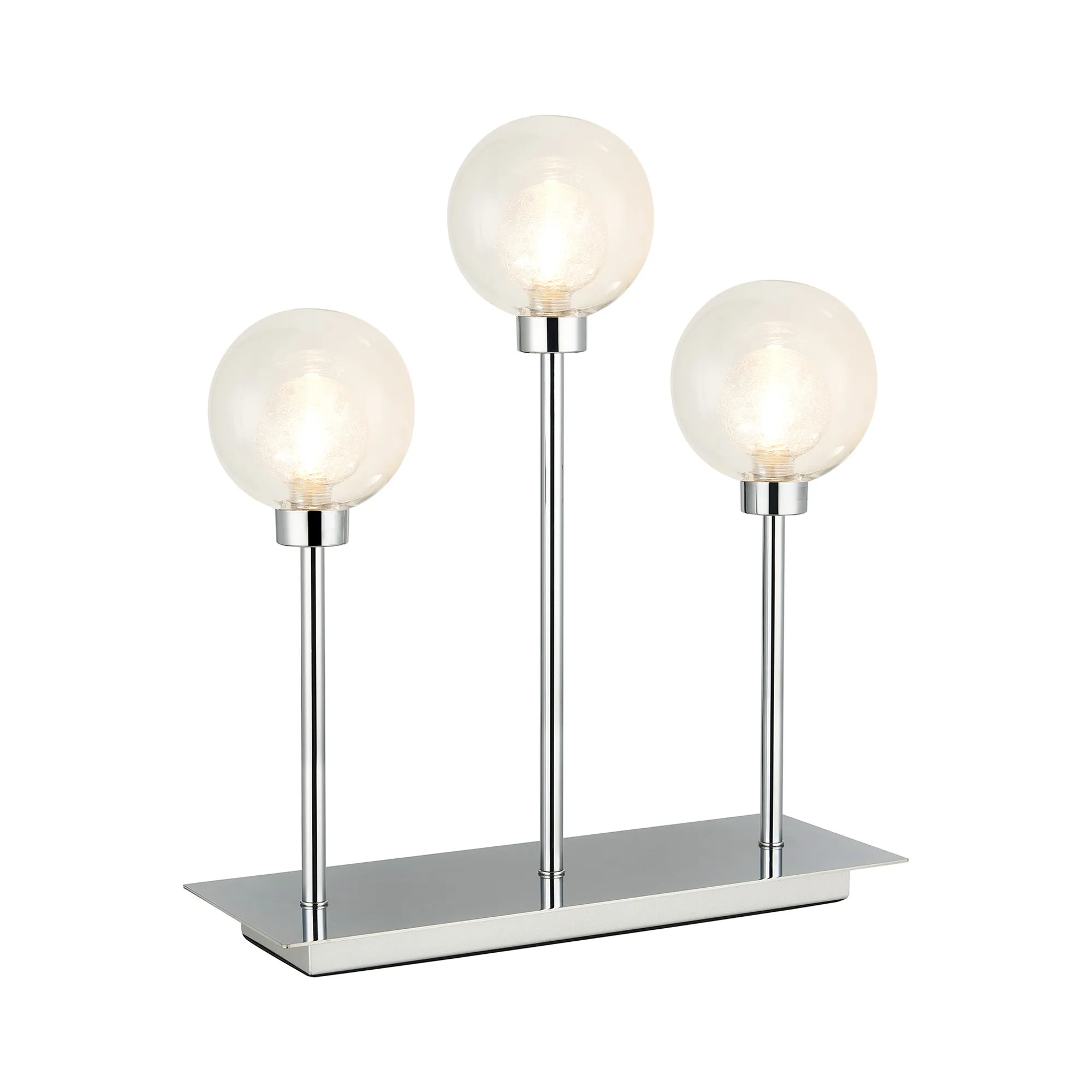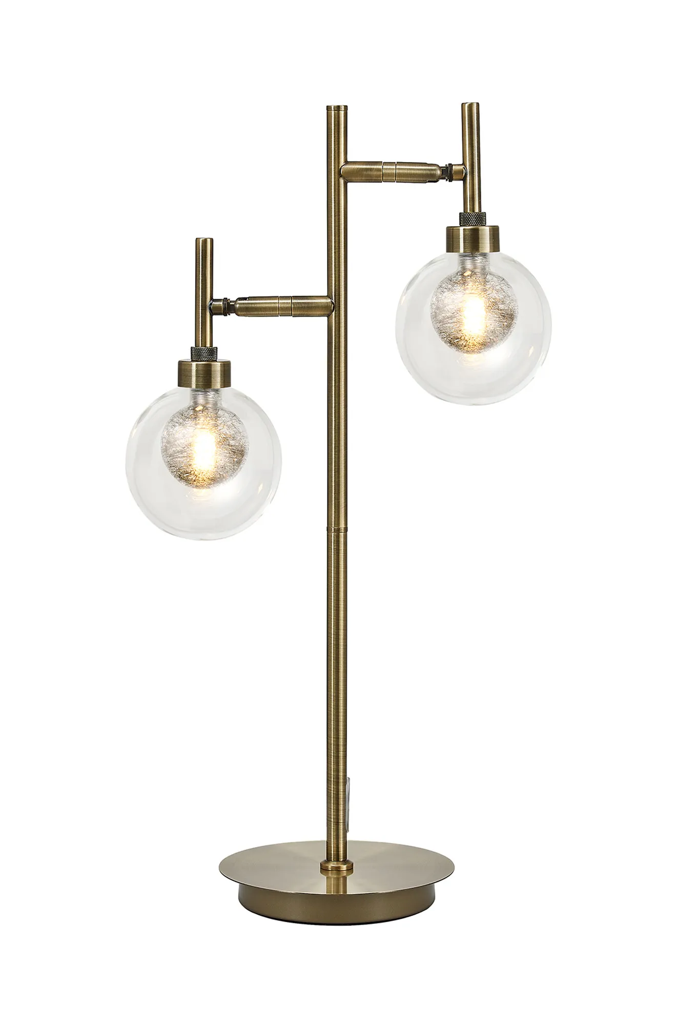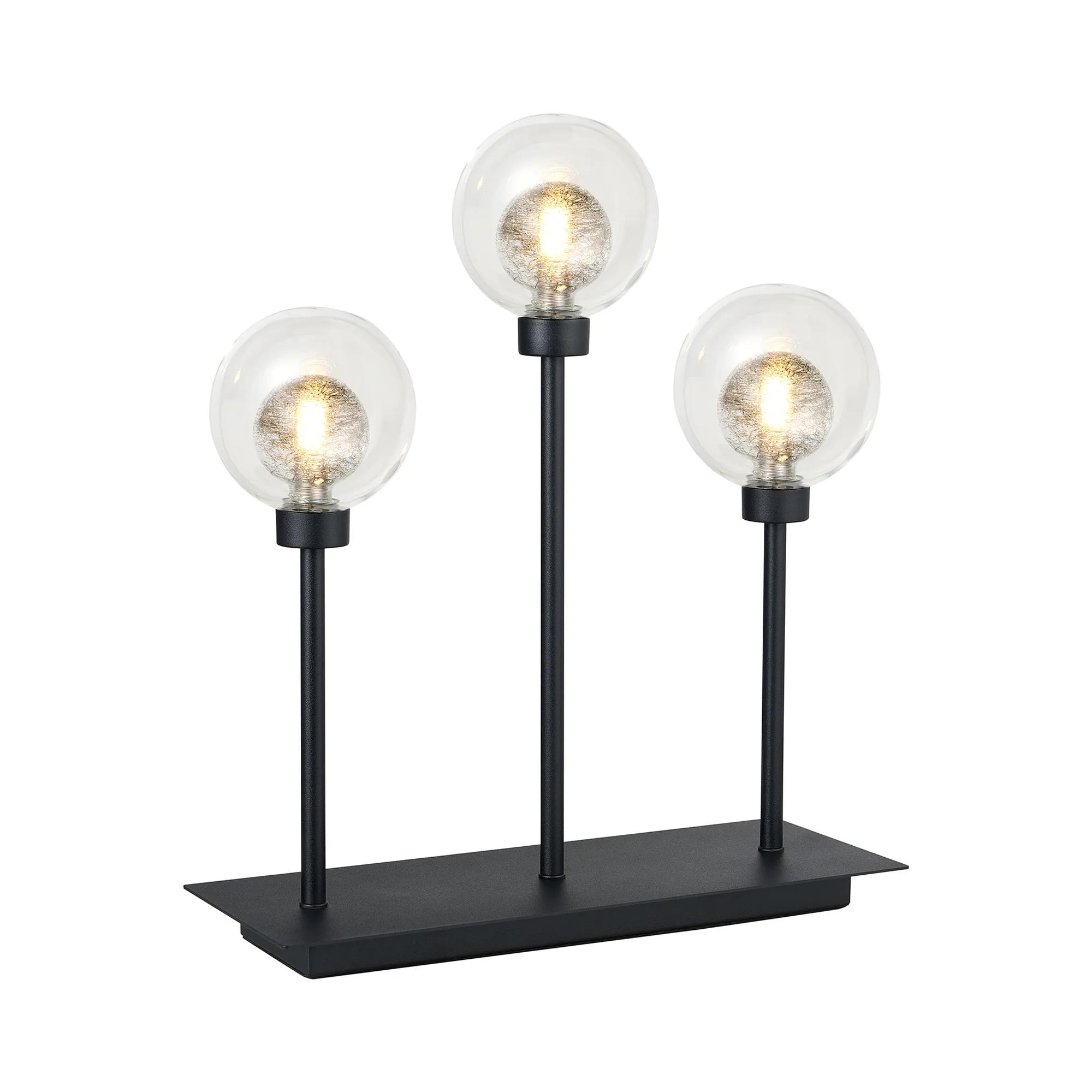 Fernie Table Lamp Touch Switch, 3 Light E14, With 15cm Round Brown & Amber Tortoise Shell Glass Shade, Brass & Satin Black