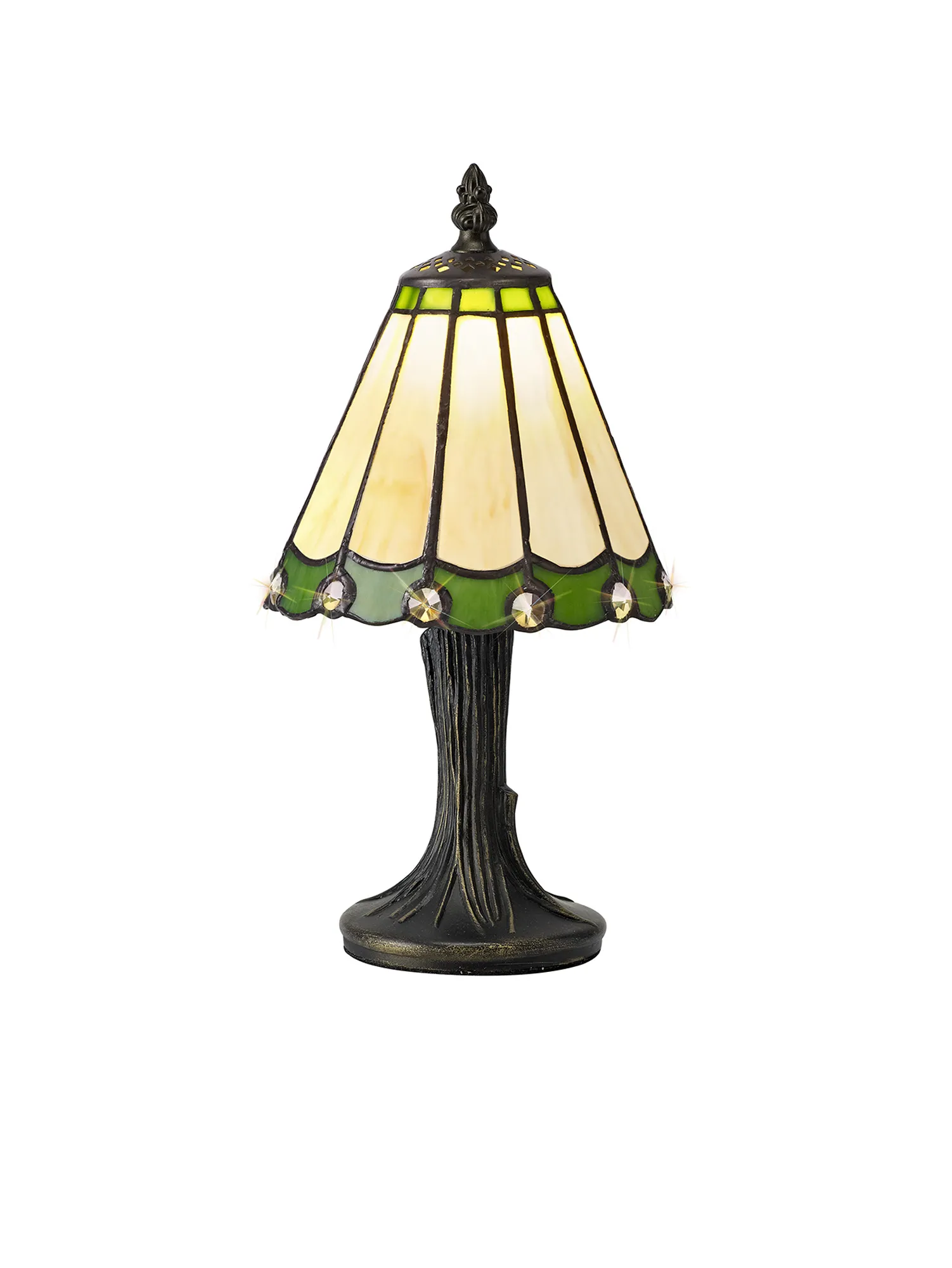 Farquhar Tiffany Table Lamp, 1 x E14, Cream/Green/Clear Crystal Shade