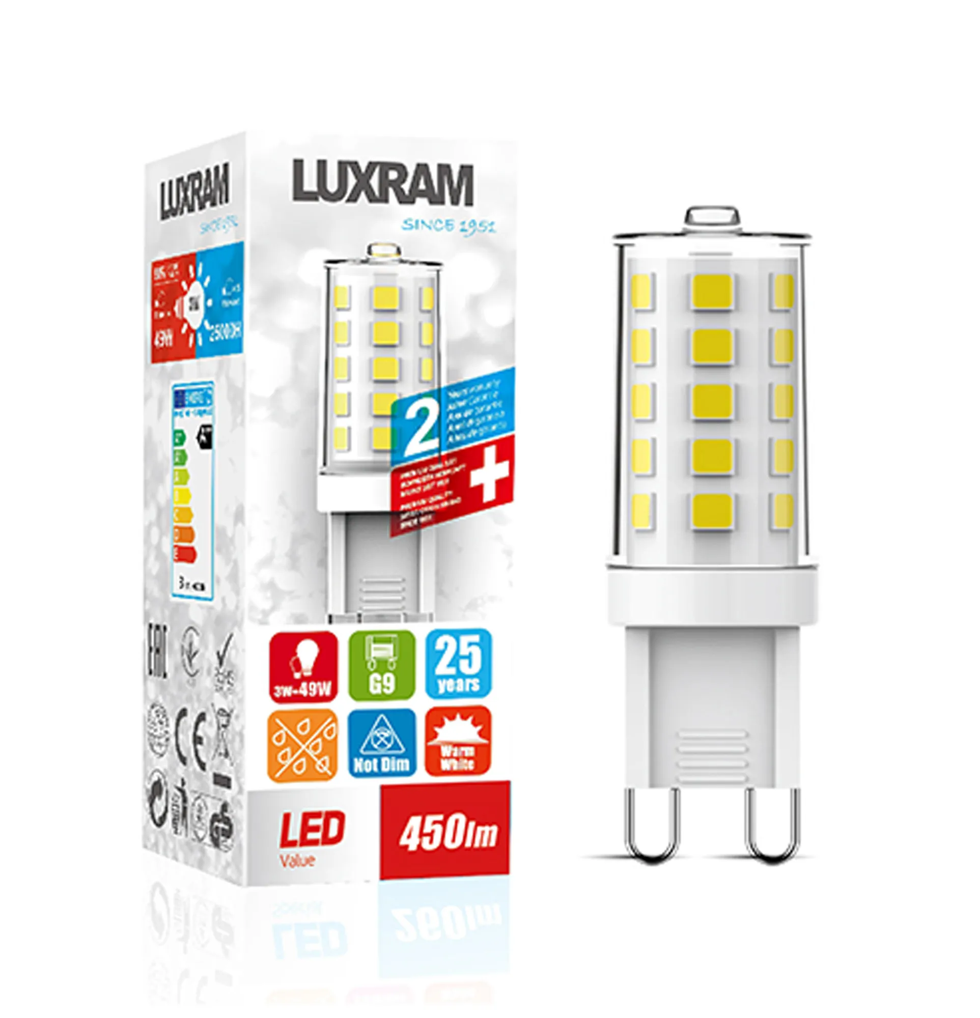 This collection of CCT lamps allows you to seamlessly move from one colour temperature to another to suit the desired lighting needs at any time. Available as a G9, GU10 or GLS lamp there are options to suit most common applications. The 3yr warranty and prominent Lamps brand ensure you have a long lasting lamp with quality you can trust.