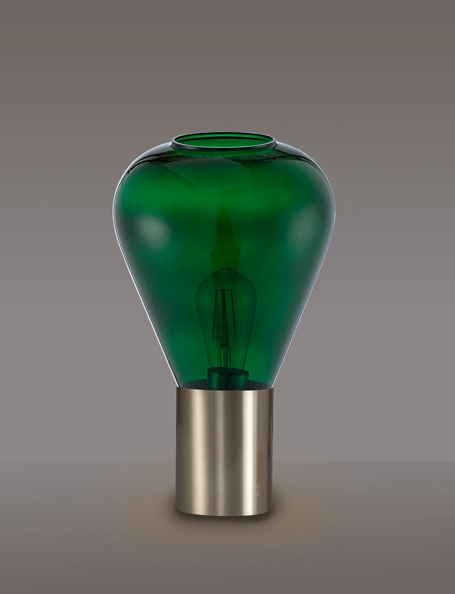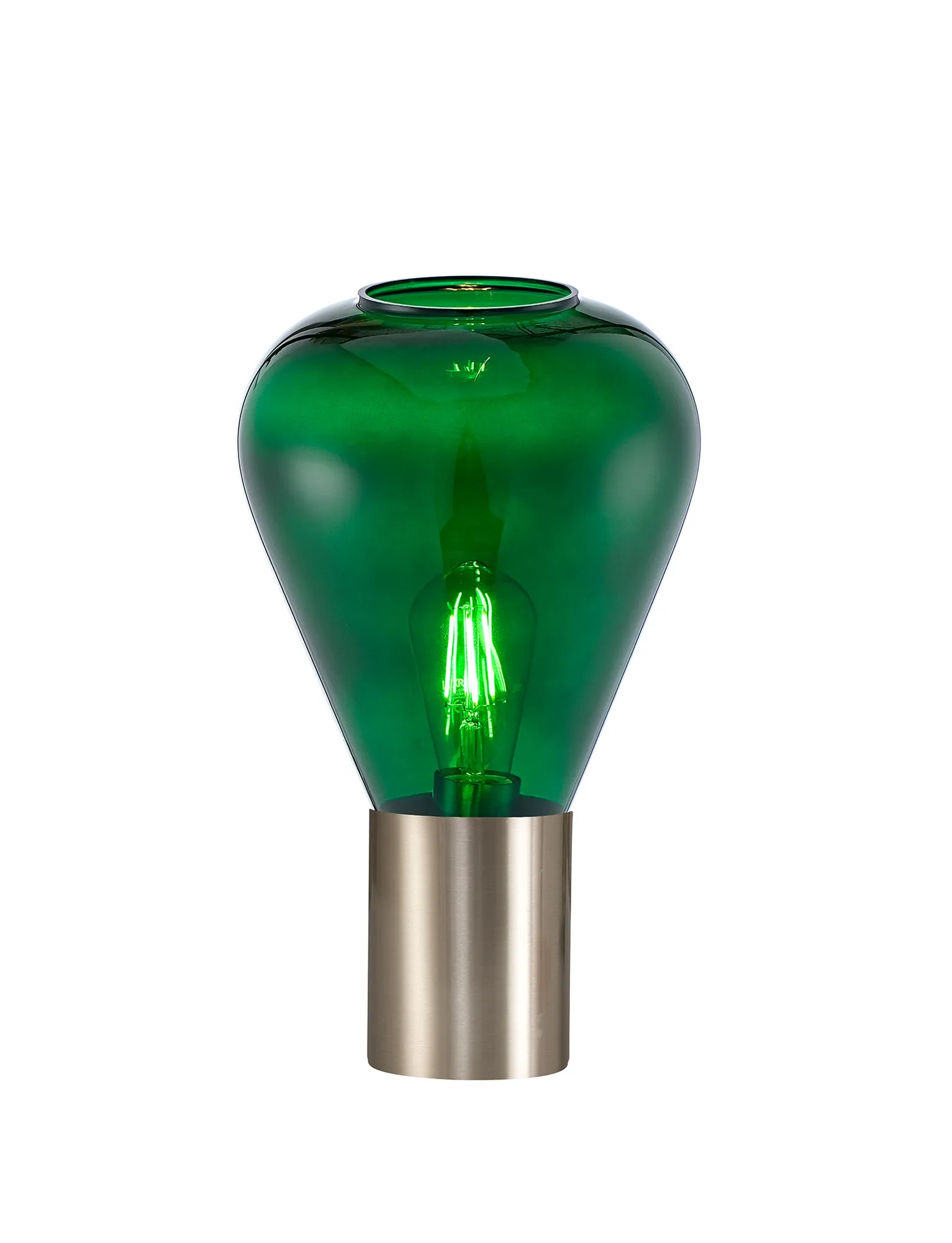 Clyde 23cm Ceiling Light With Narrow Glass, 1 x E27, Satin Nickel/Bottle Green
