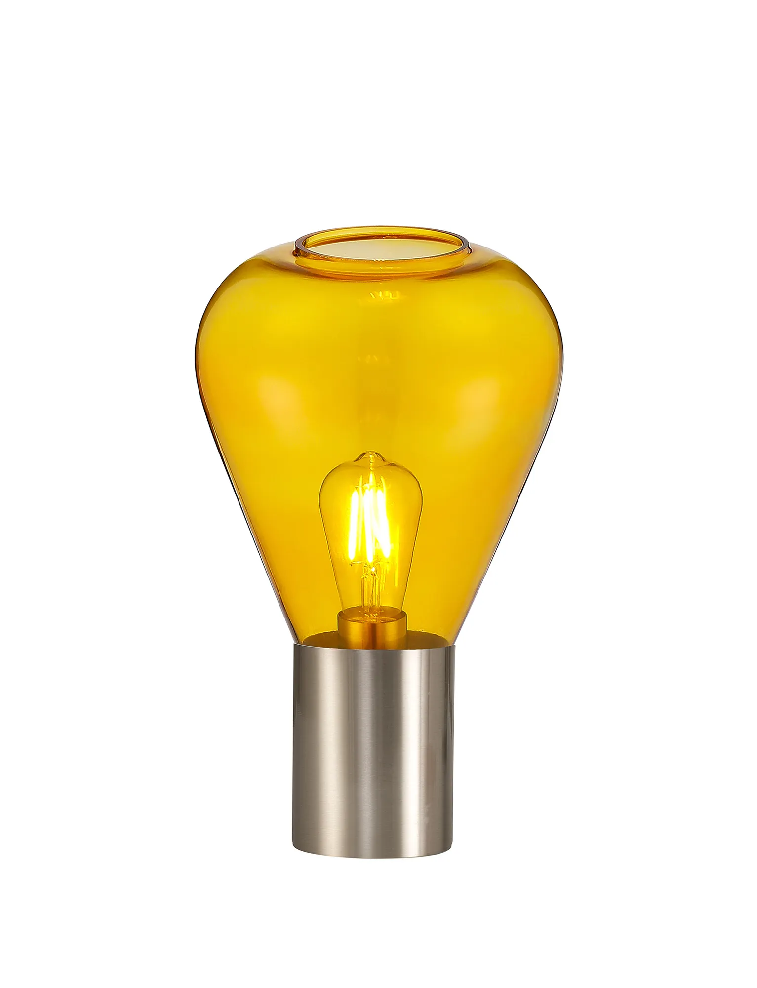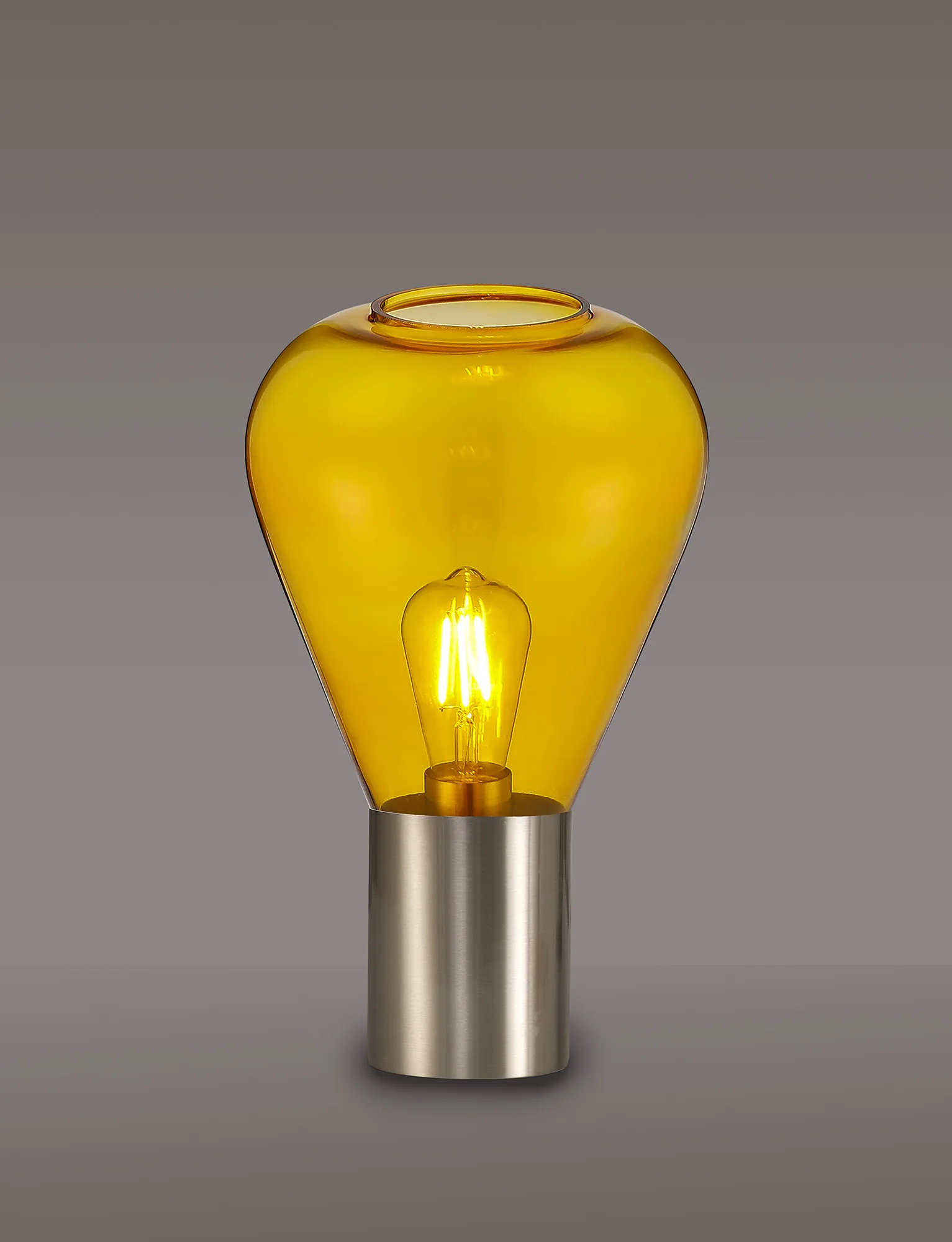 Clyde Ceiling Light With Narrow Glass, 1 x E27, Satin Nickel/Yellow