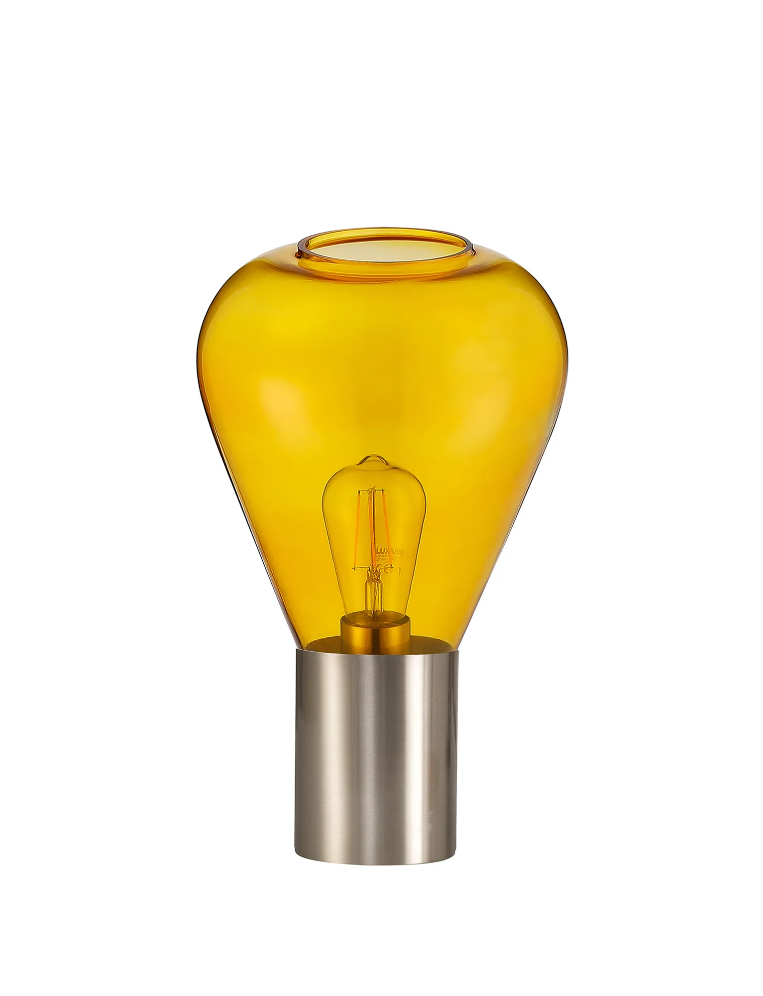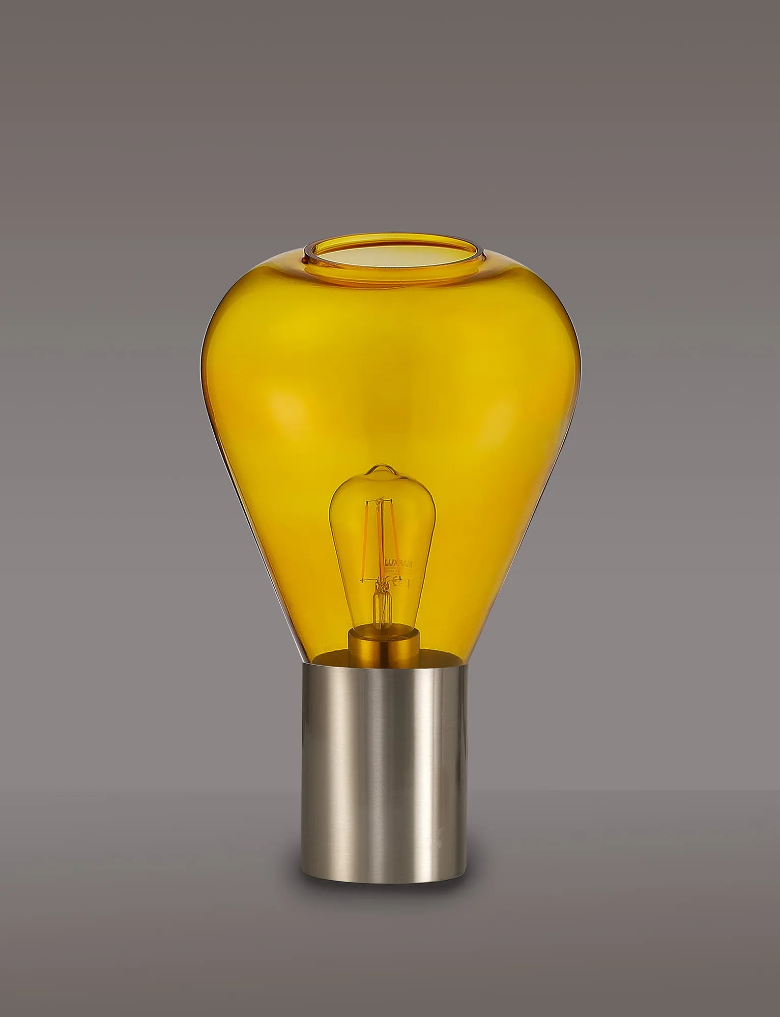 Clyde 23cm Ceiling Light With Narrow Glass, 1 x E27, Satin Nickel/Yellow