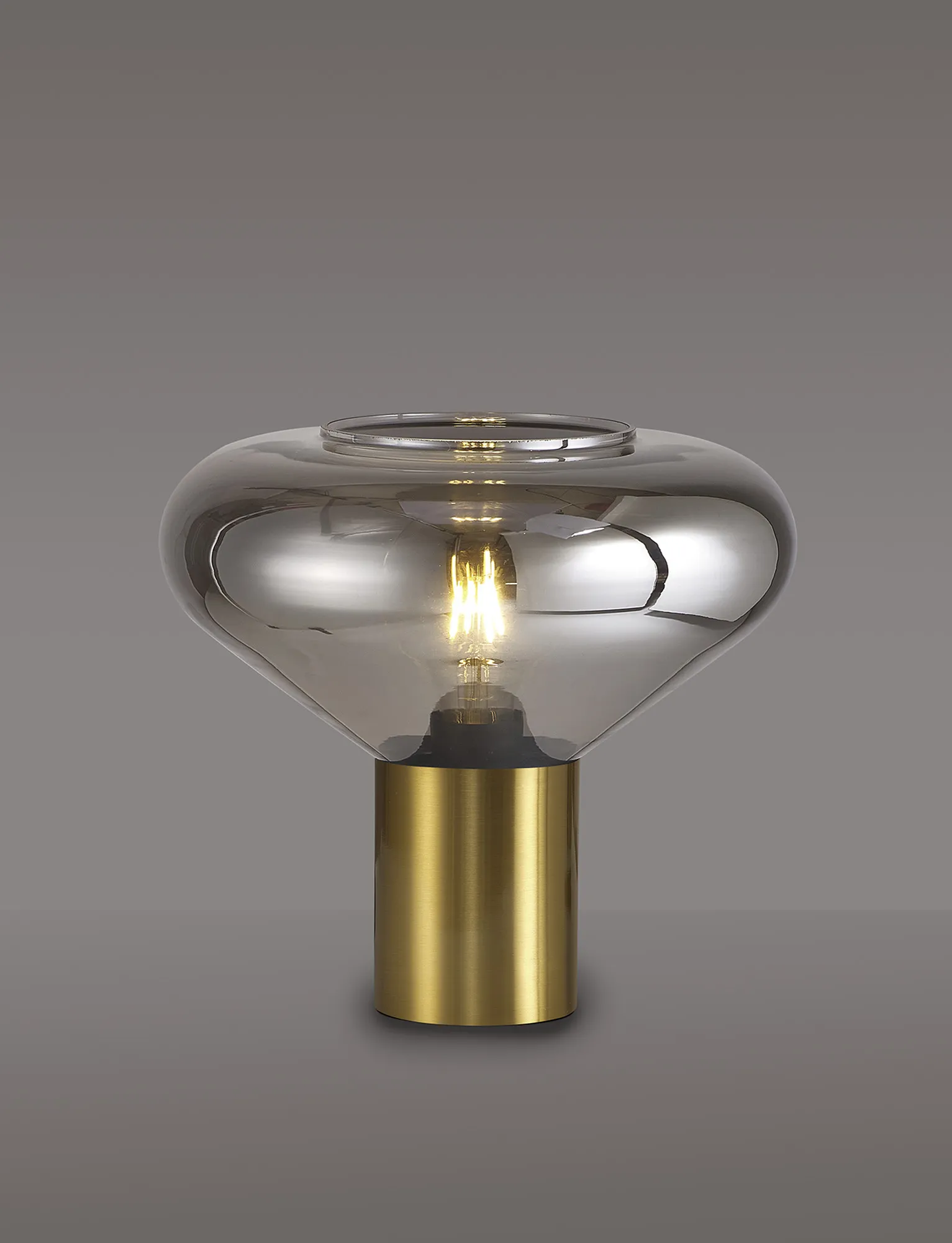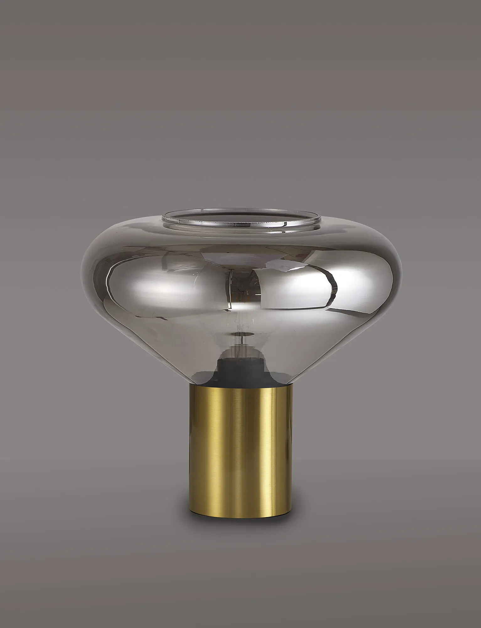 Clyde Ceiling Light With Narrow Glass, 1 x E27, Aged Brass/Smoke