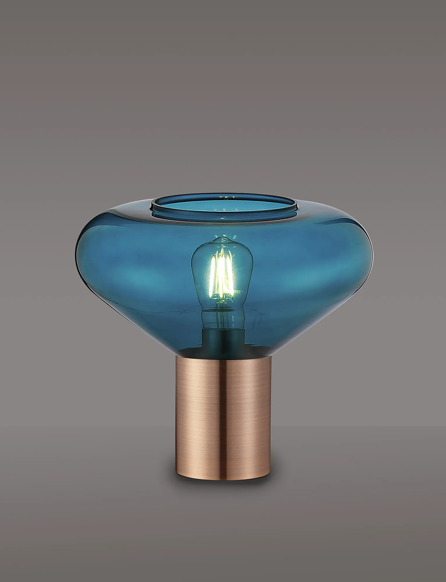 Clyde Ceiling Light With Narrow Glass, 1 x E27, Antique Copper/Teal Blue