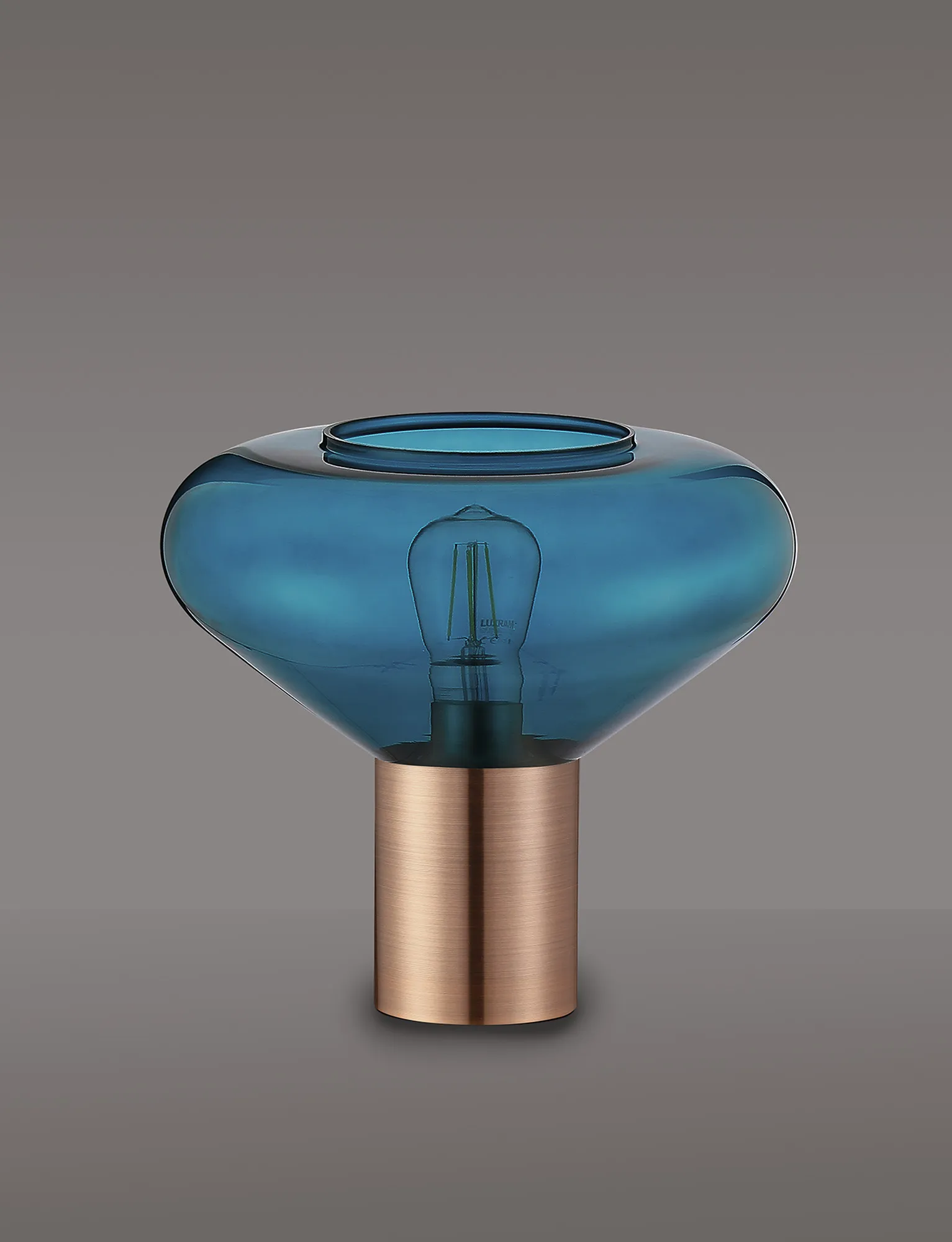 Clyde 23cm Ceiling Light With Narrow Glass, 1 x E27, Antique Copper/Teal Blue