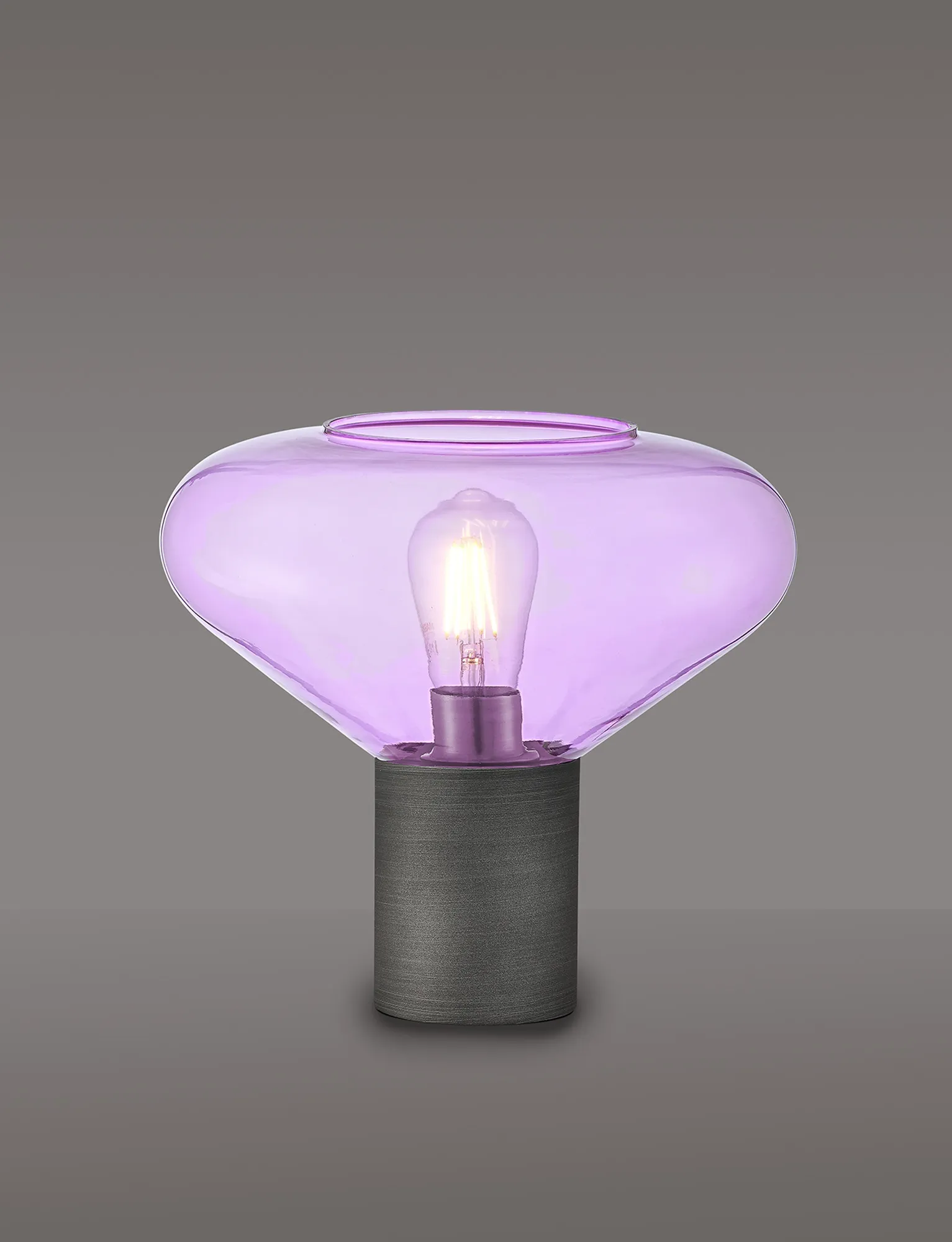 Clyde 23cm Ceiling Light With Narrow Glass, 1 x E27, Pewter/Lilac
