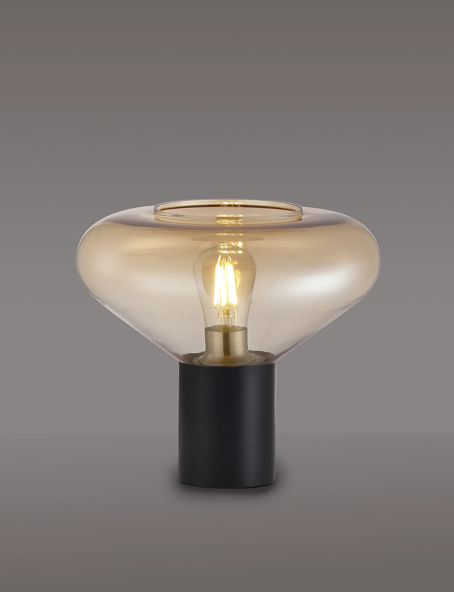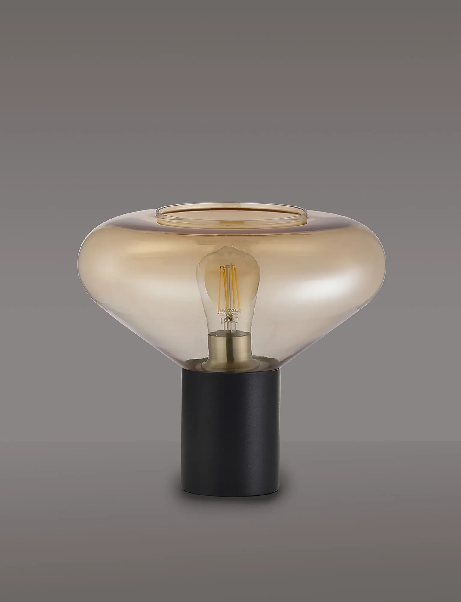 OTHER Clyde Wide Table Lamp, 1 x E27, Satin Black/Amber Glass