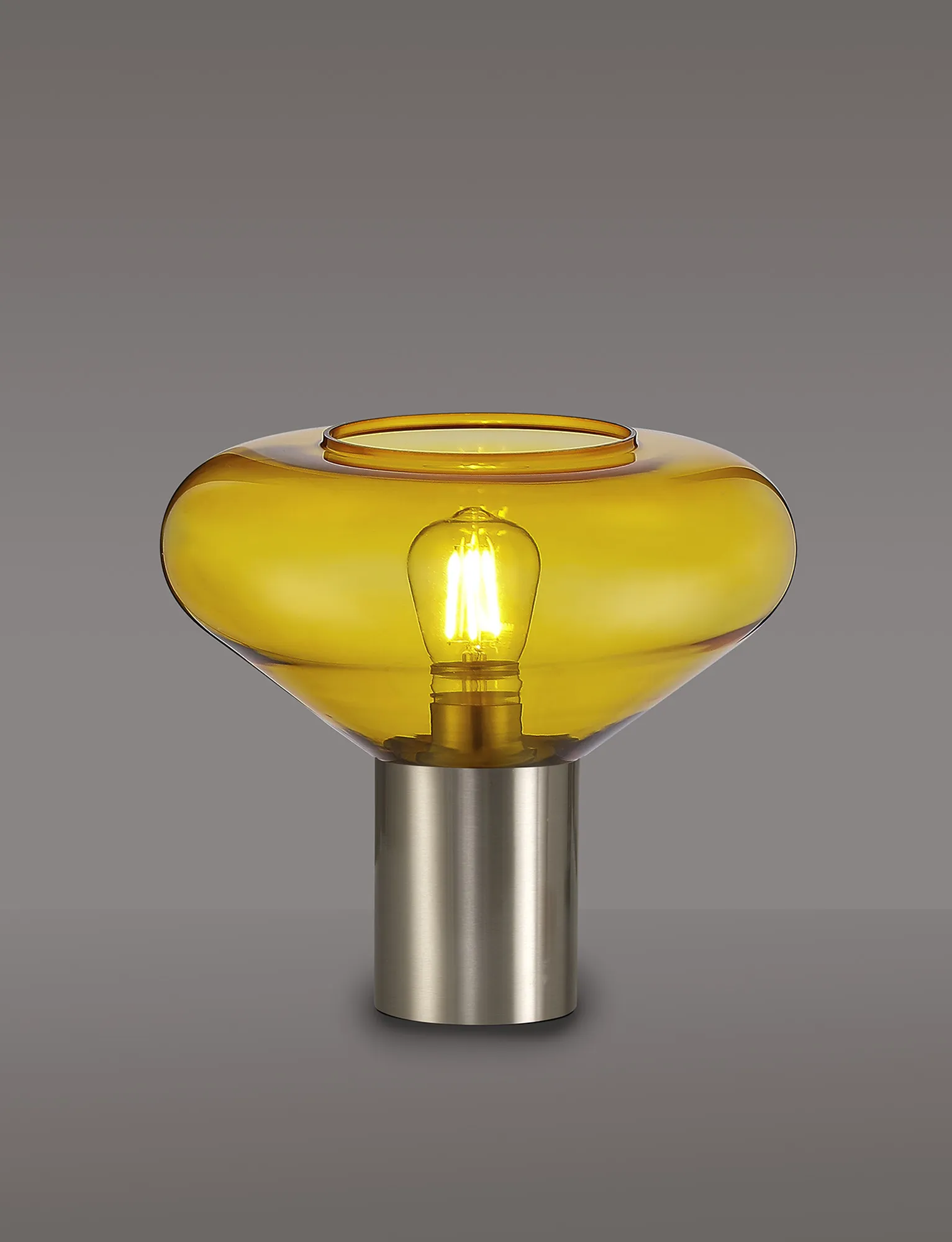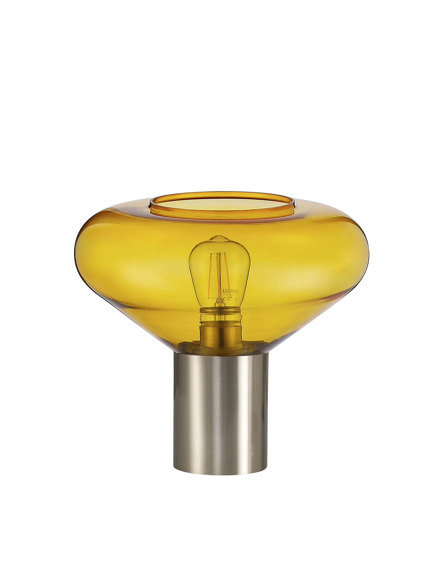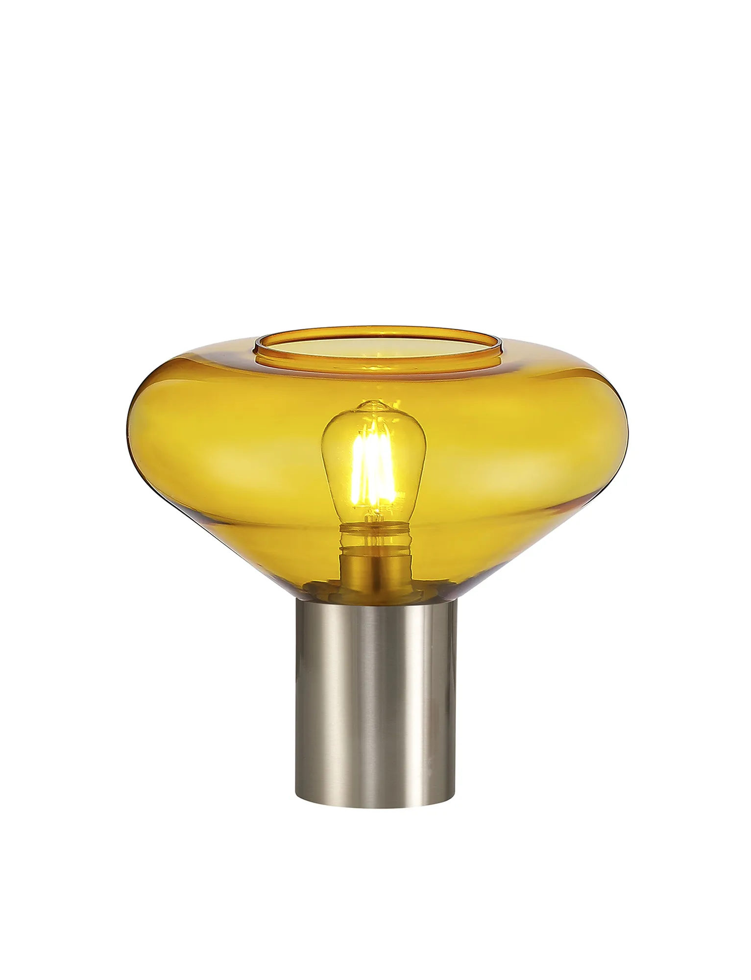 Clyde 23cm Ceiling Light With Narrow Glass, 1 x E27, Satin Nickel/Yellow