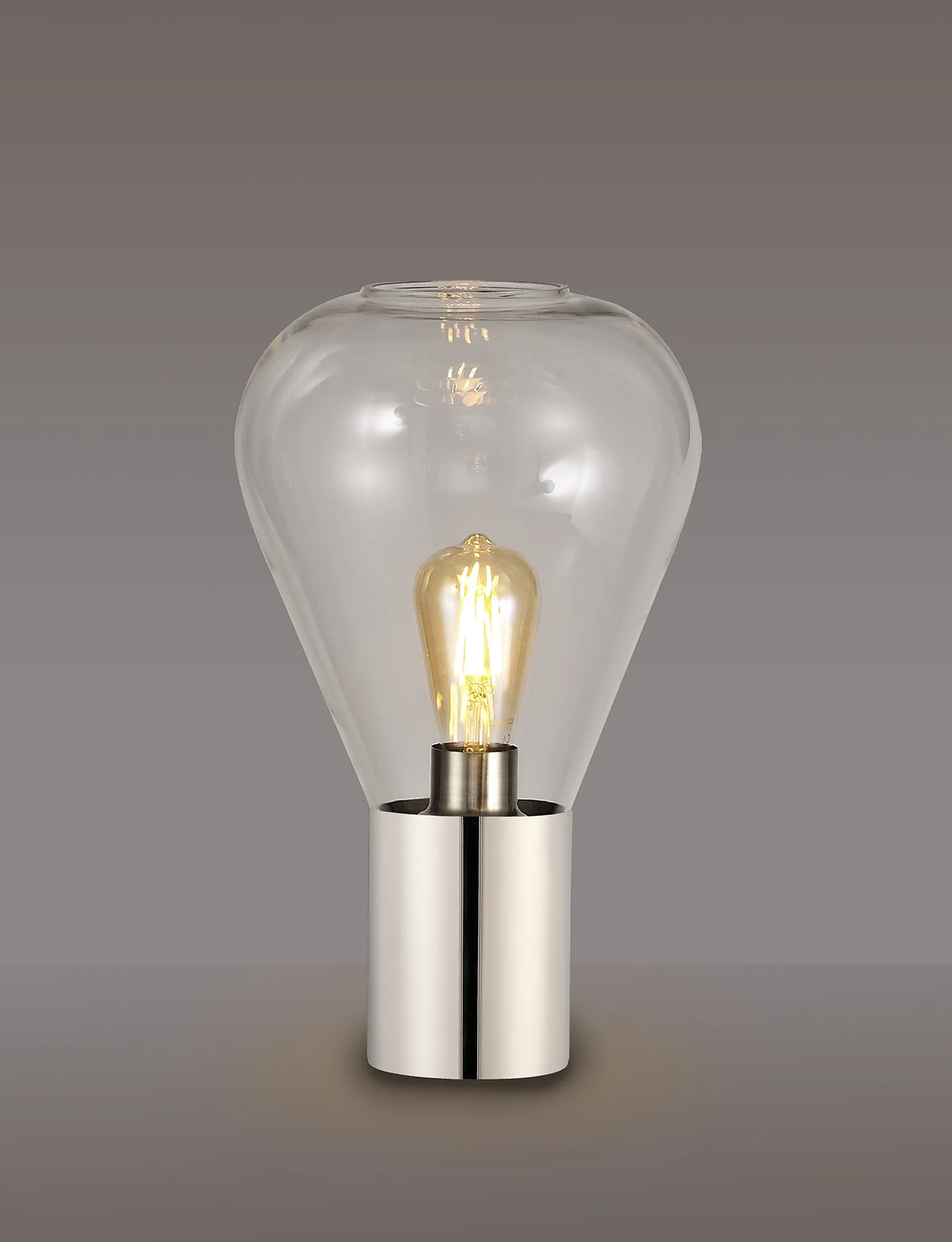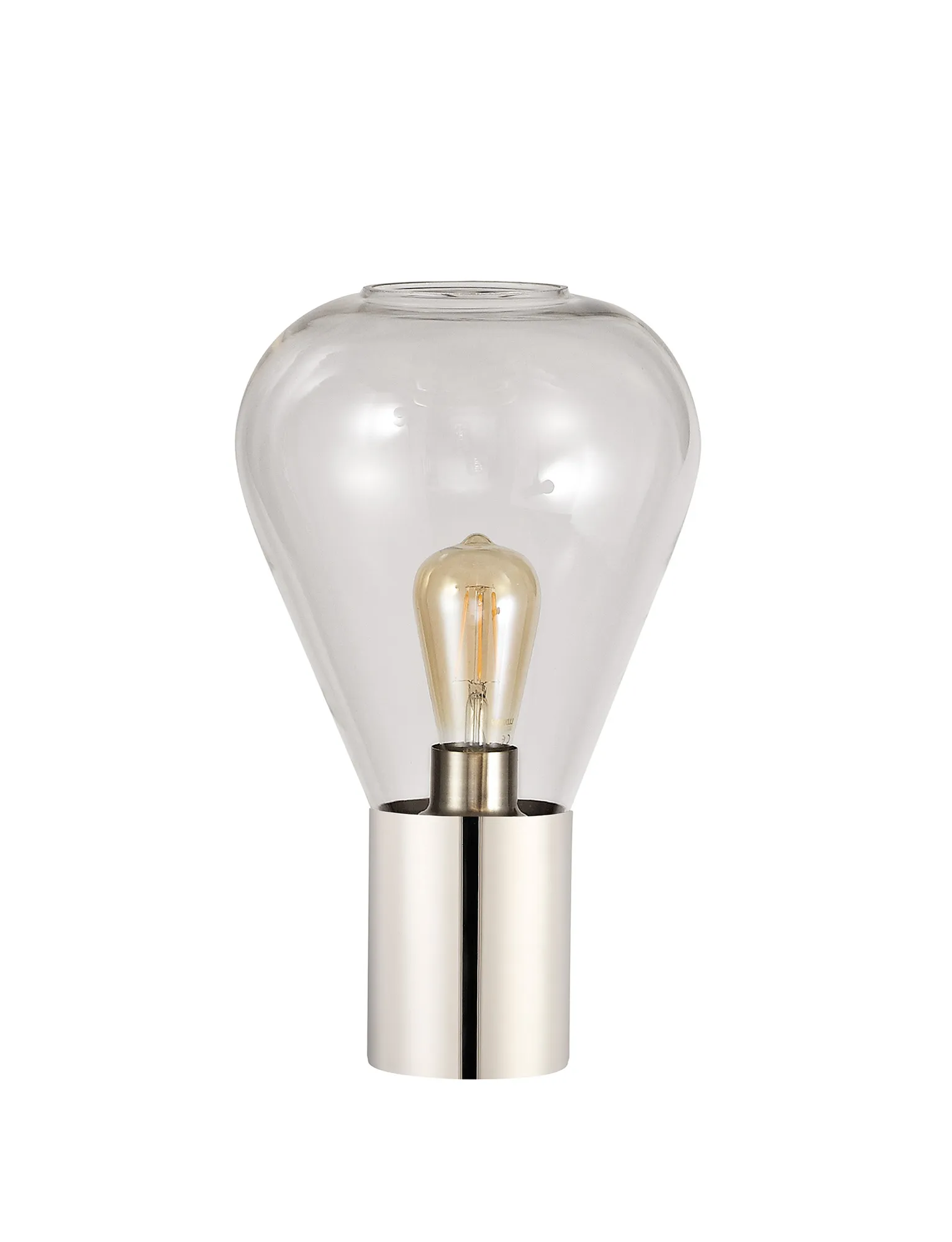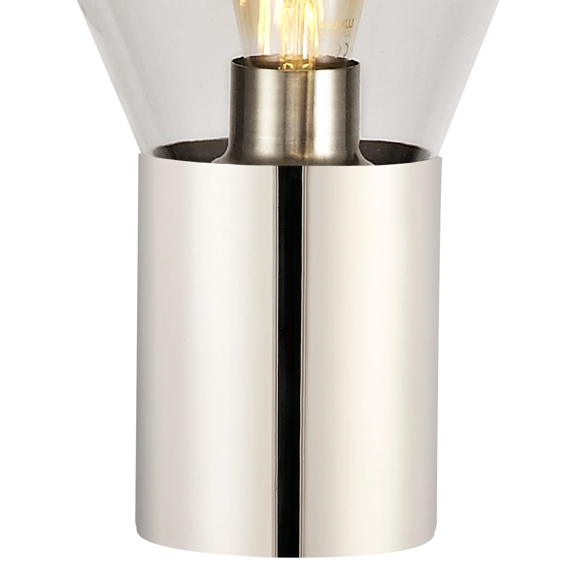 Clyde 23cm Pendant With Narrow Glass, 1 x E27, Polished Nickel/Clear/Dark Grey Braided Cable