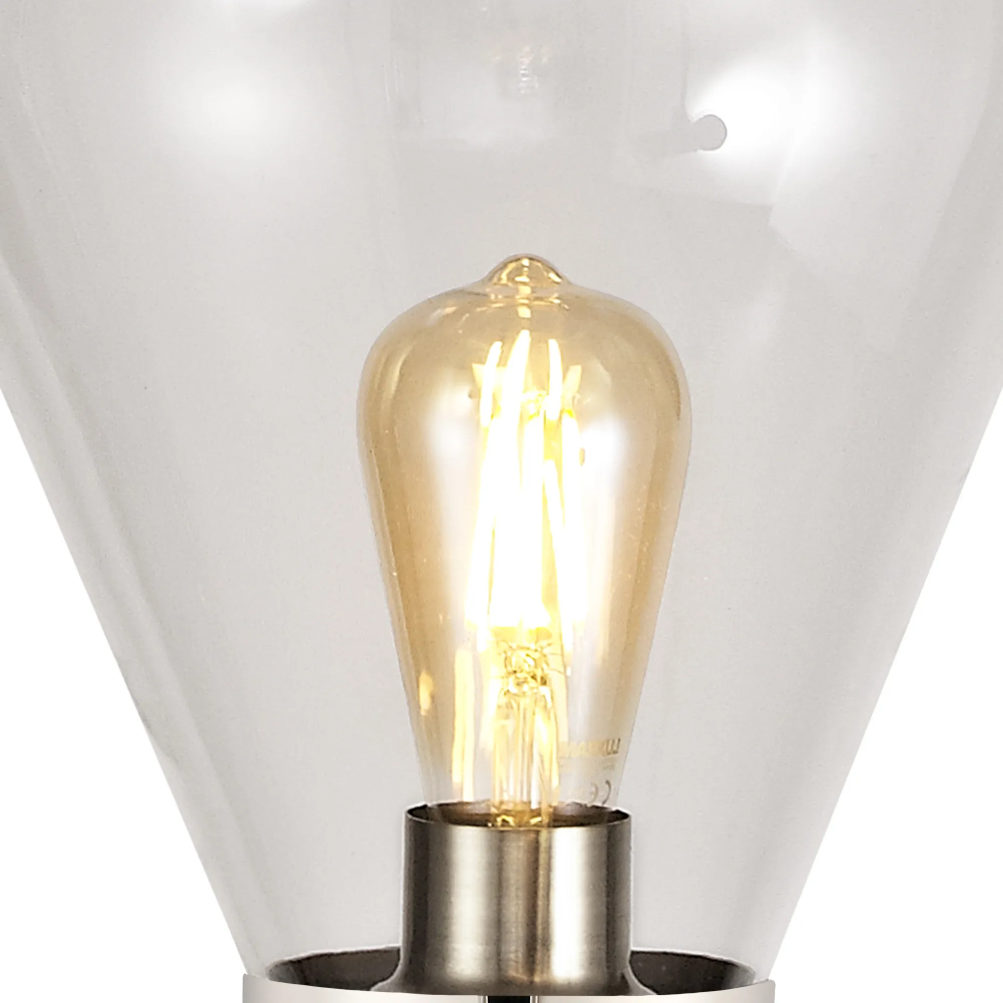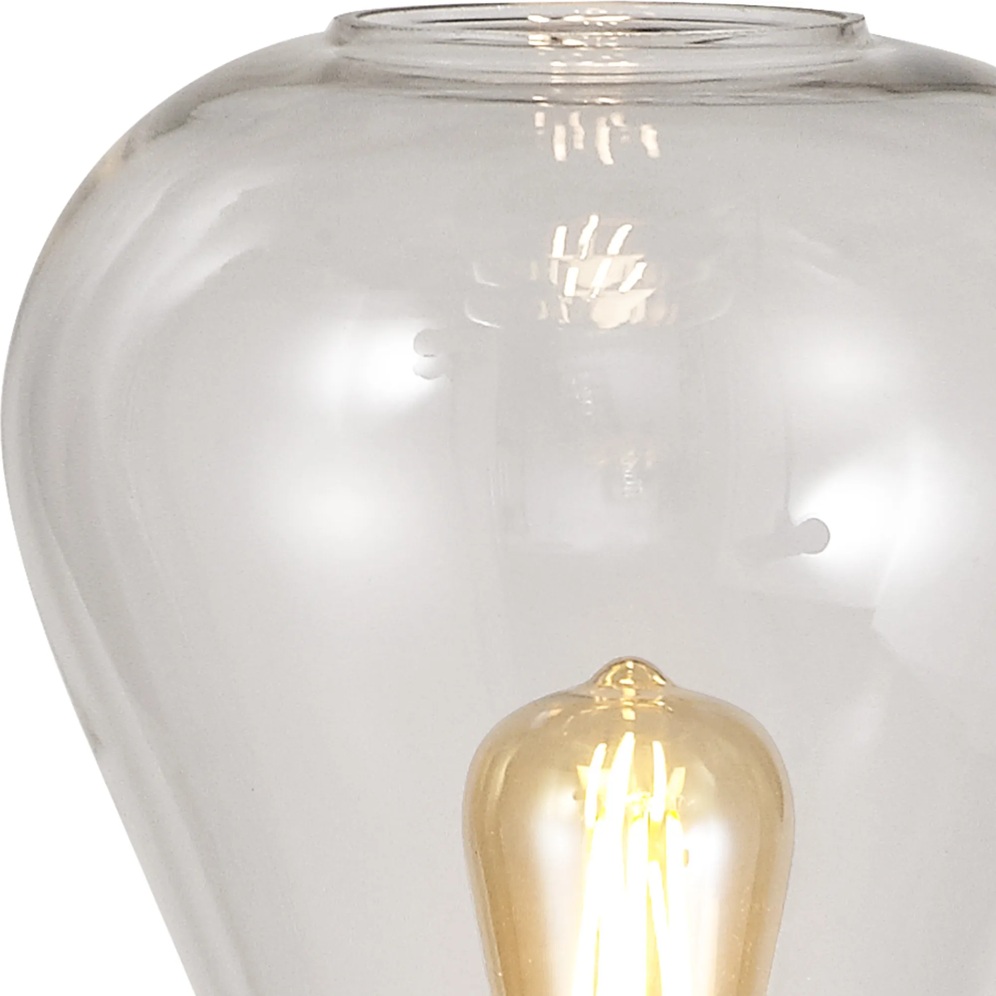 Clyde Pendant With Narrow Glass, 1 x E27, Polished Nickel/Clear/Dark Grey Braided Cable