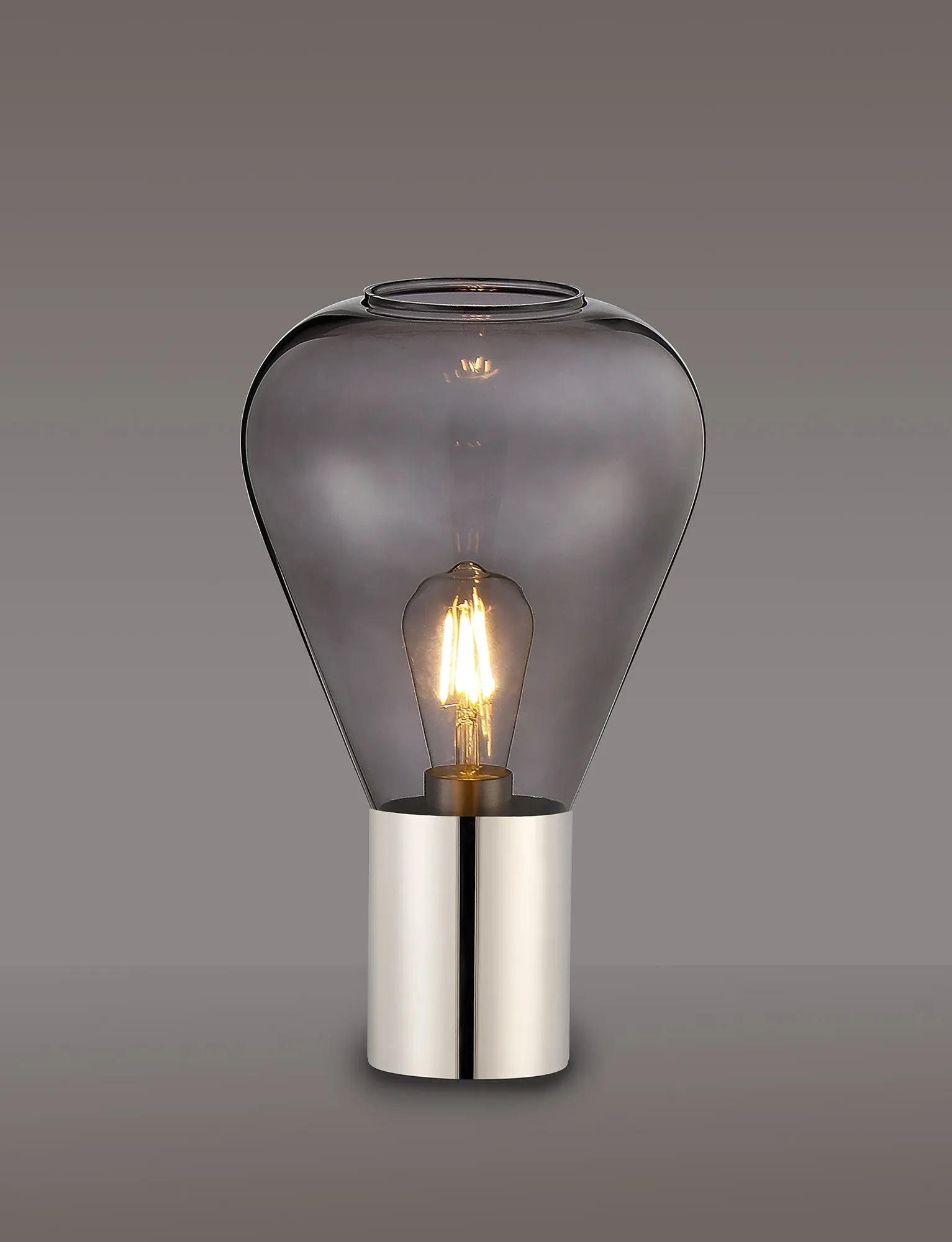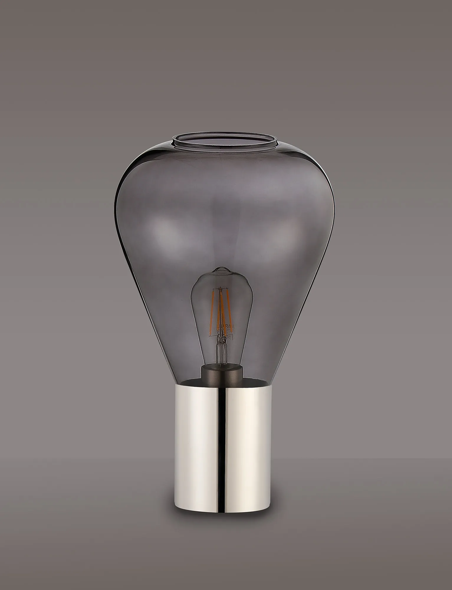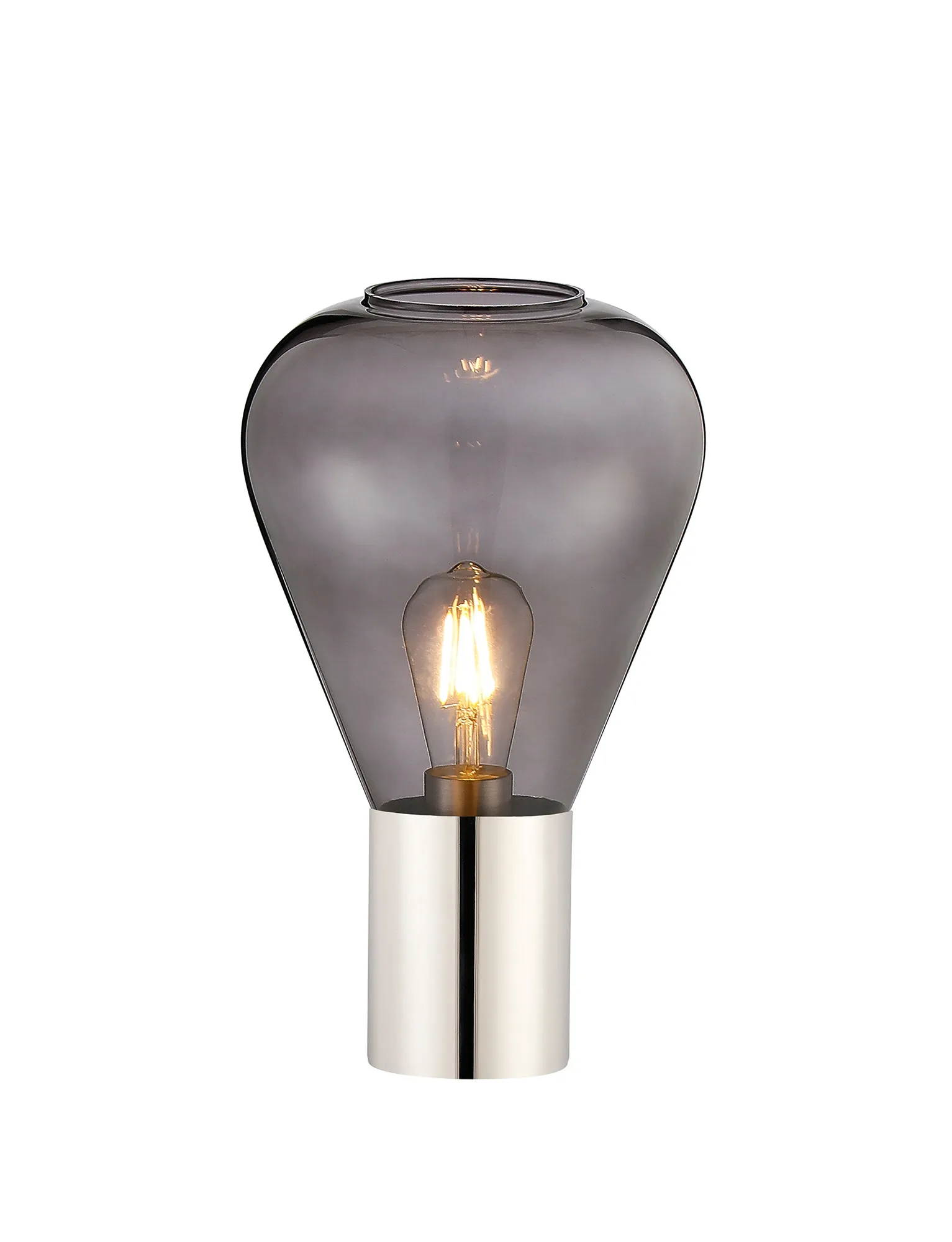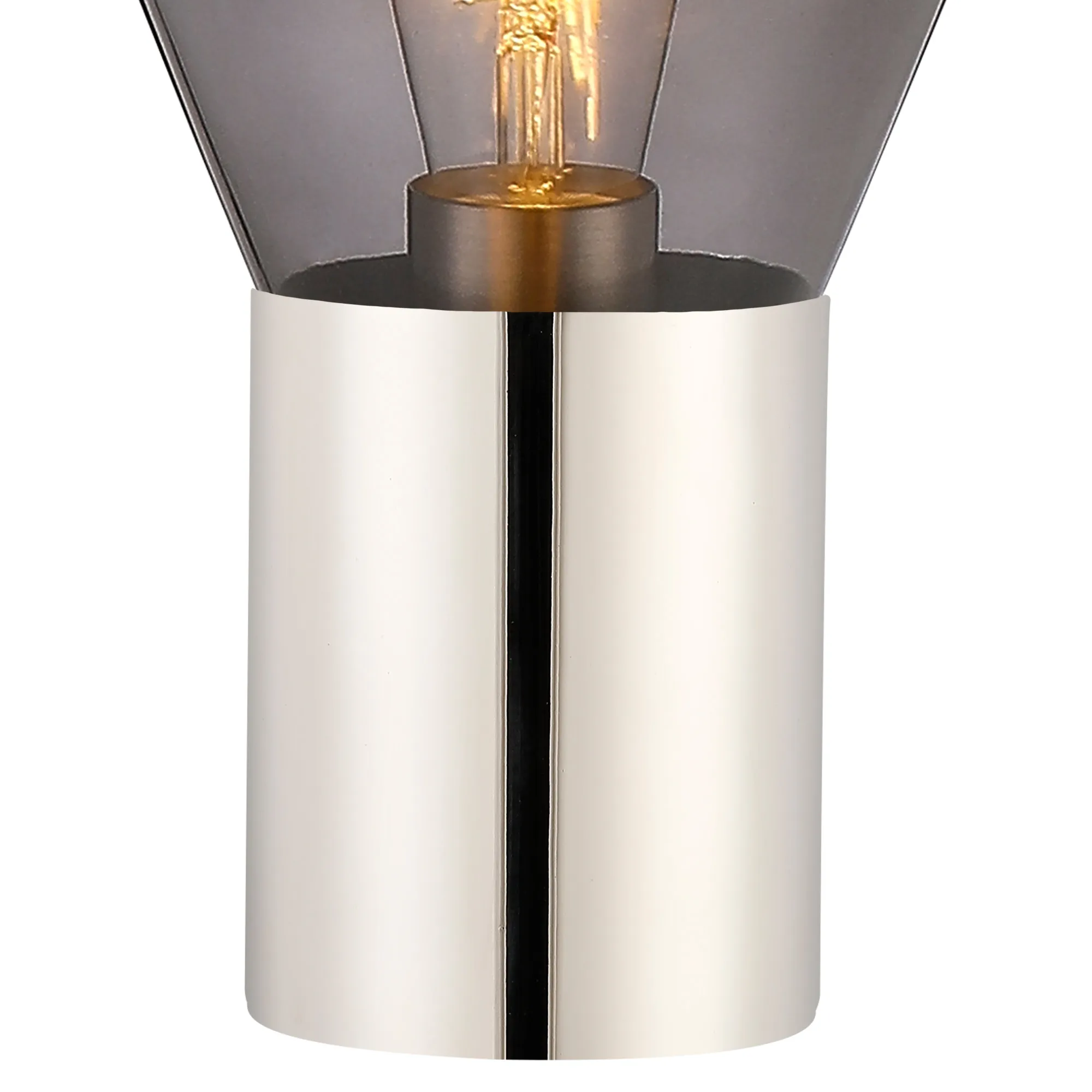 Clyde 23cm Pendant With Narrow Glass, 1 x E27, Polished Nickel/Inky Black/Dark Grey Braided Cable
