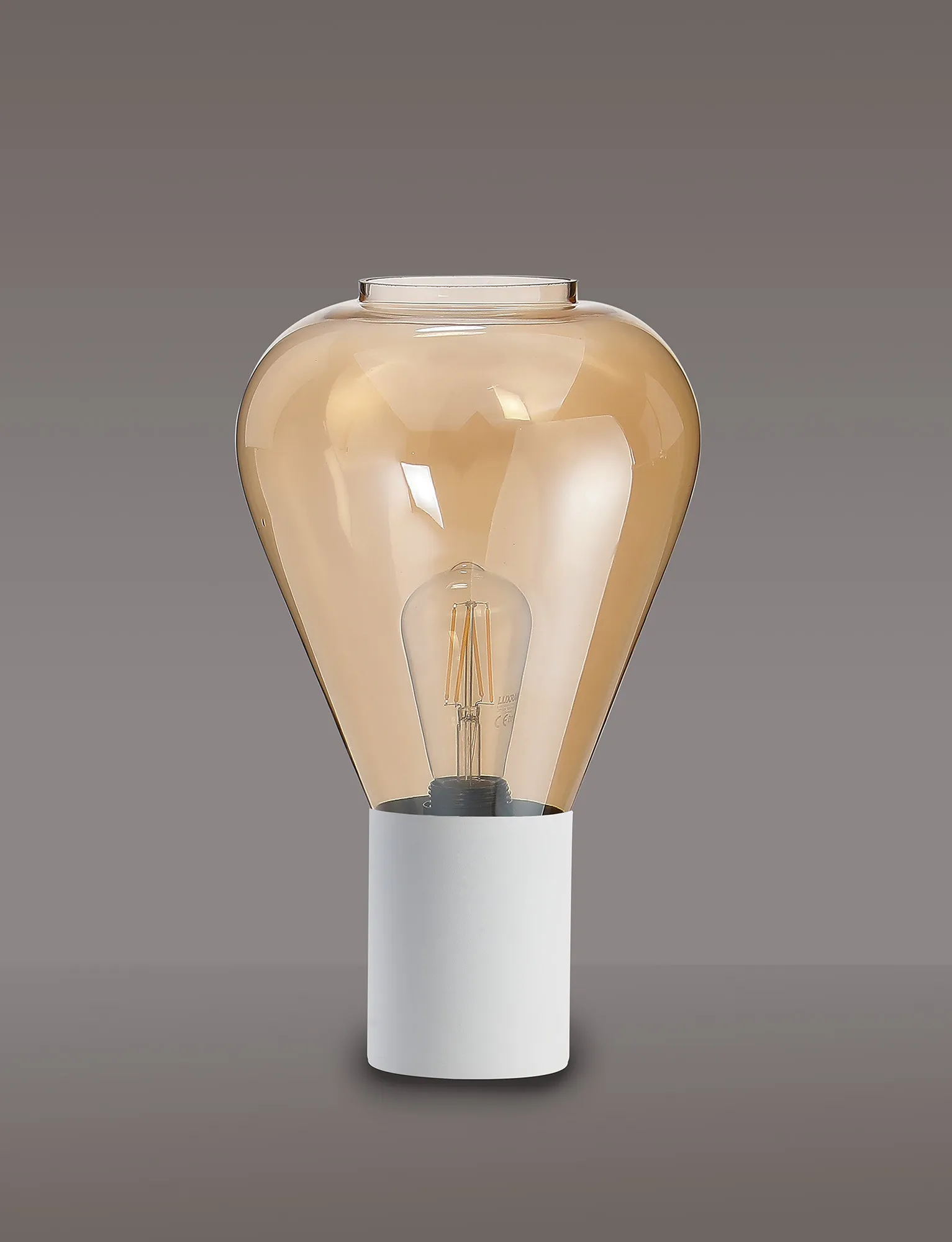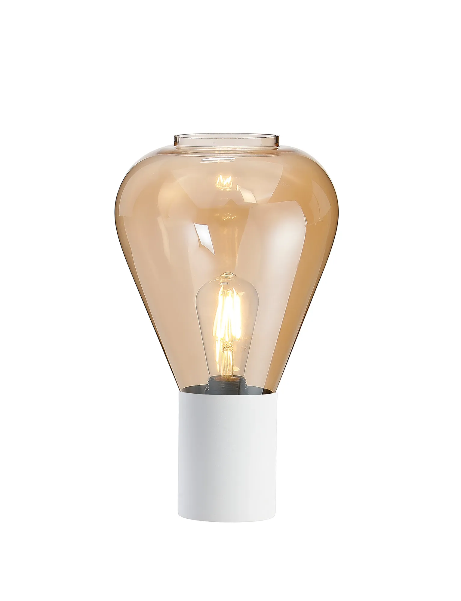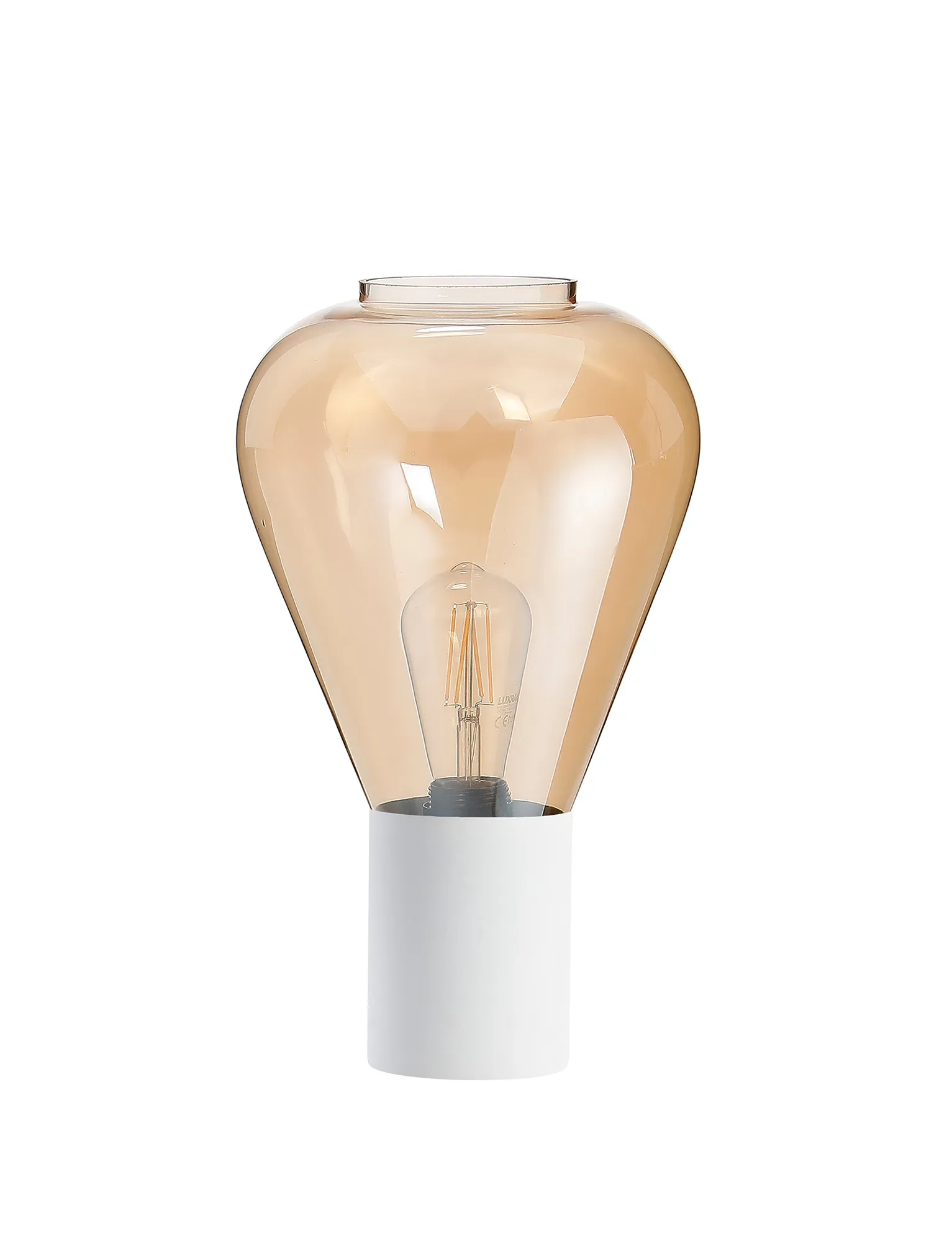 OTHER Clyde Table Lamp With Narrow Glass, 1 x E27, Satin White/Amber/Clear PVC Cable