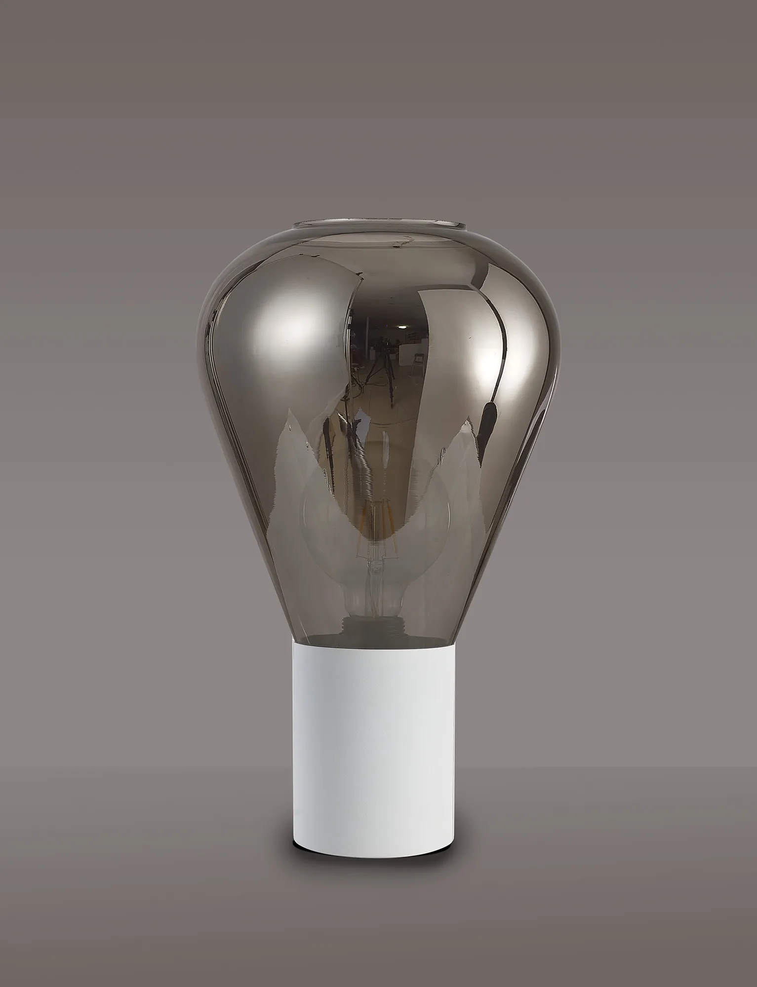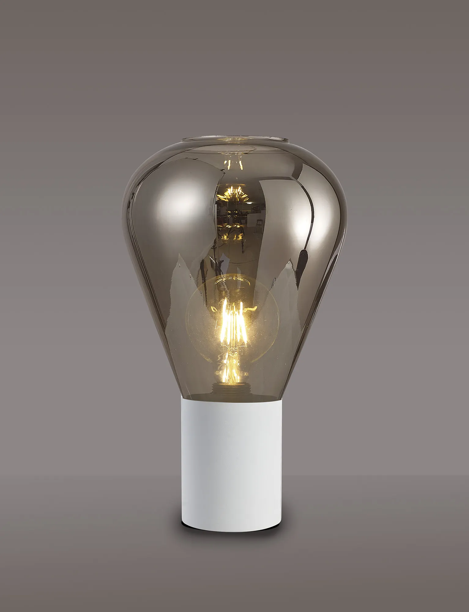 Clyde Pendant With Narrow Glass, 1 x E27, Satin White/Smoke/Clear Twisted Cable