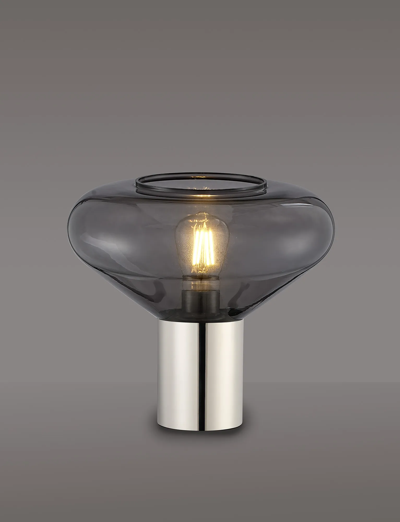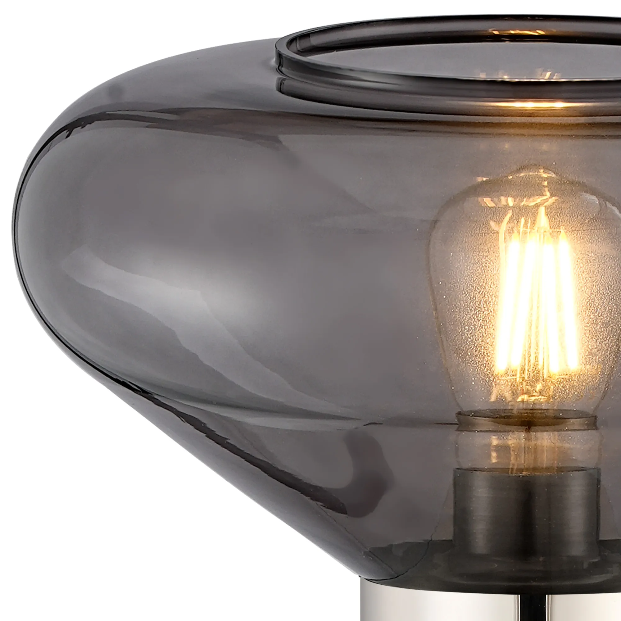 Clyde Table Lamp With Narrow Glass, 1 x E27, Polished Nickel/Inky Black/Dark Grey Braided Cable