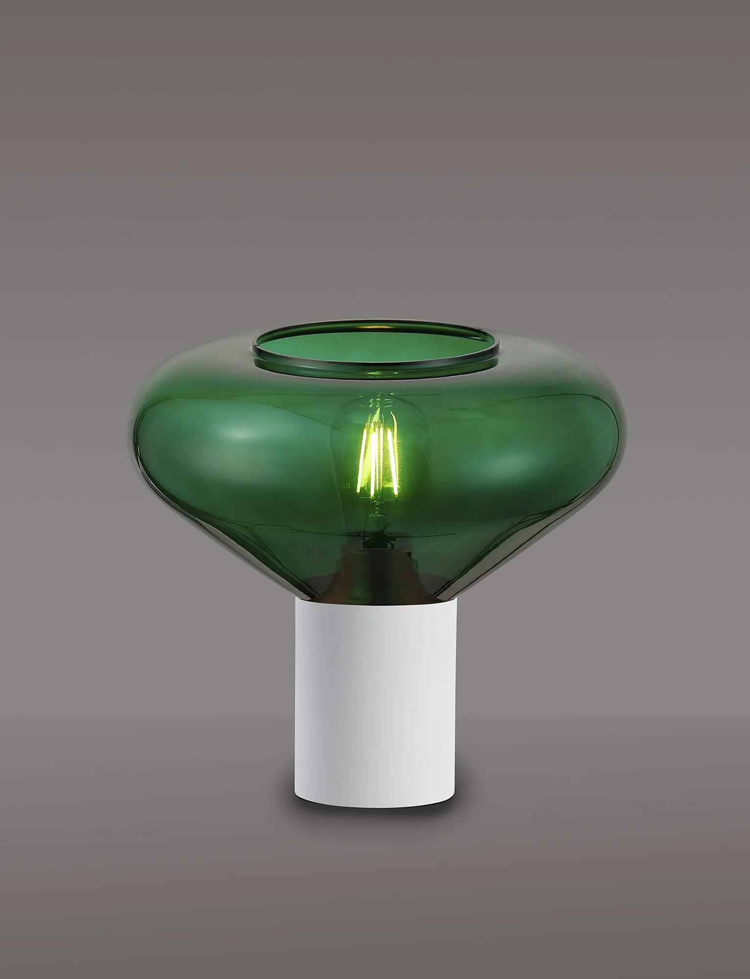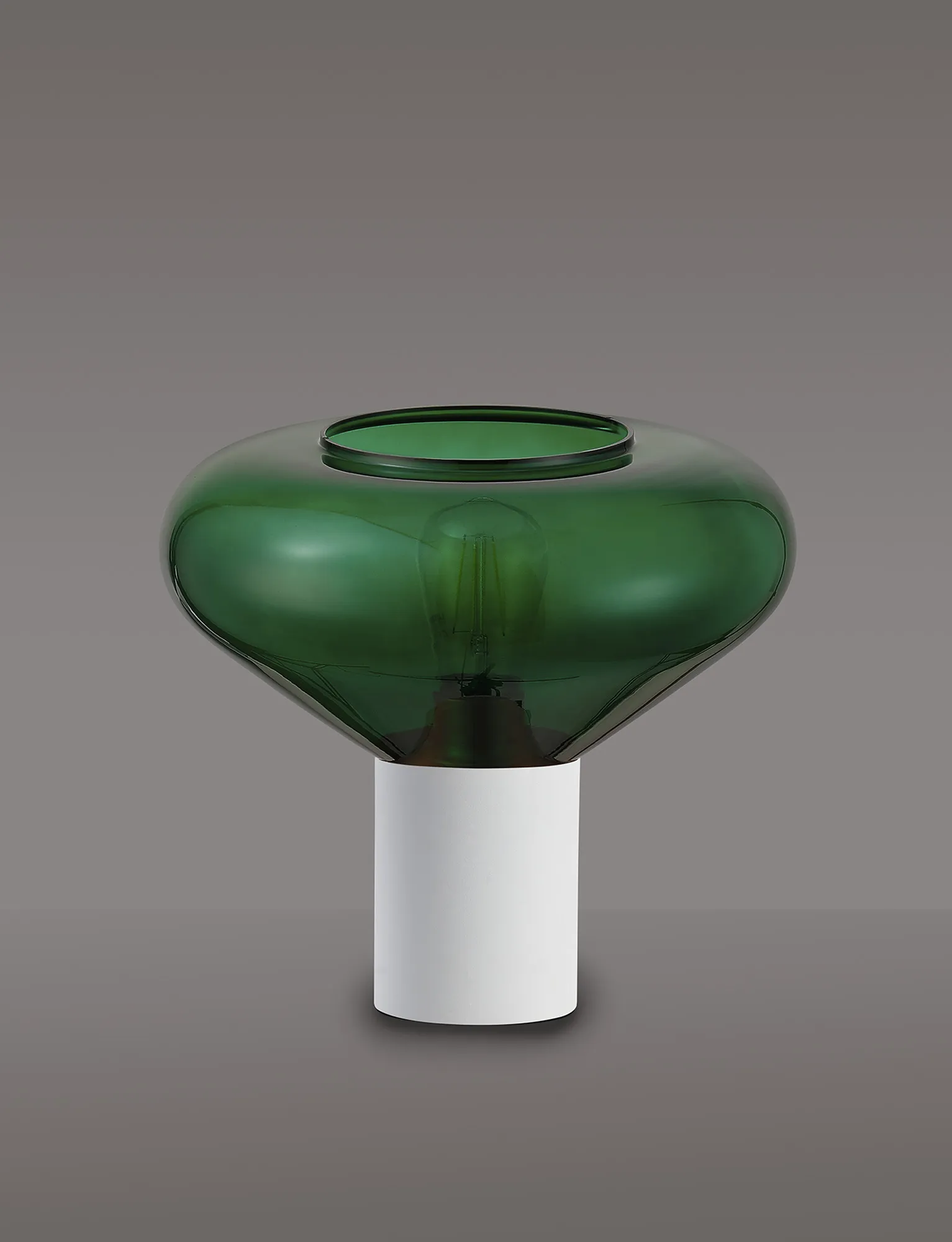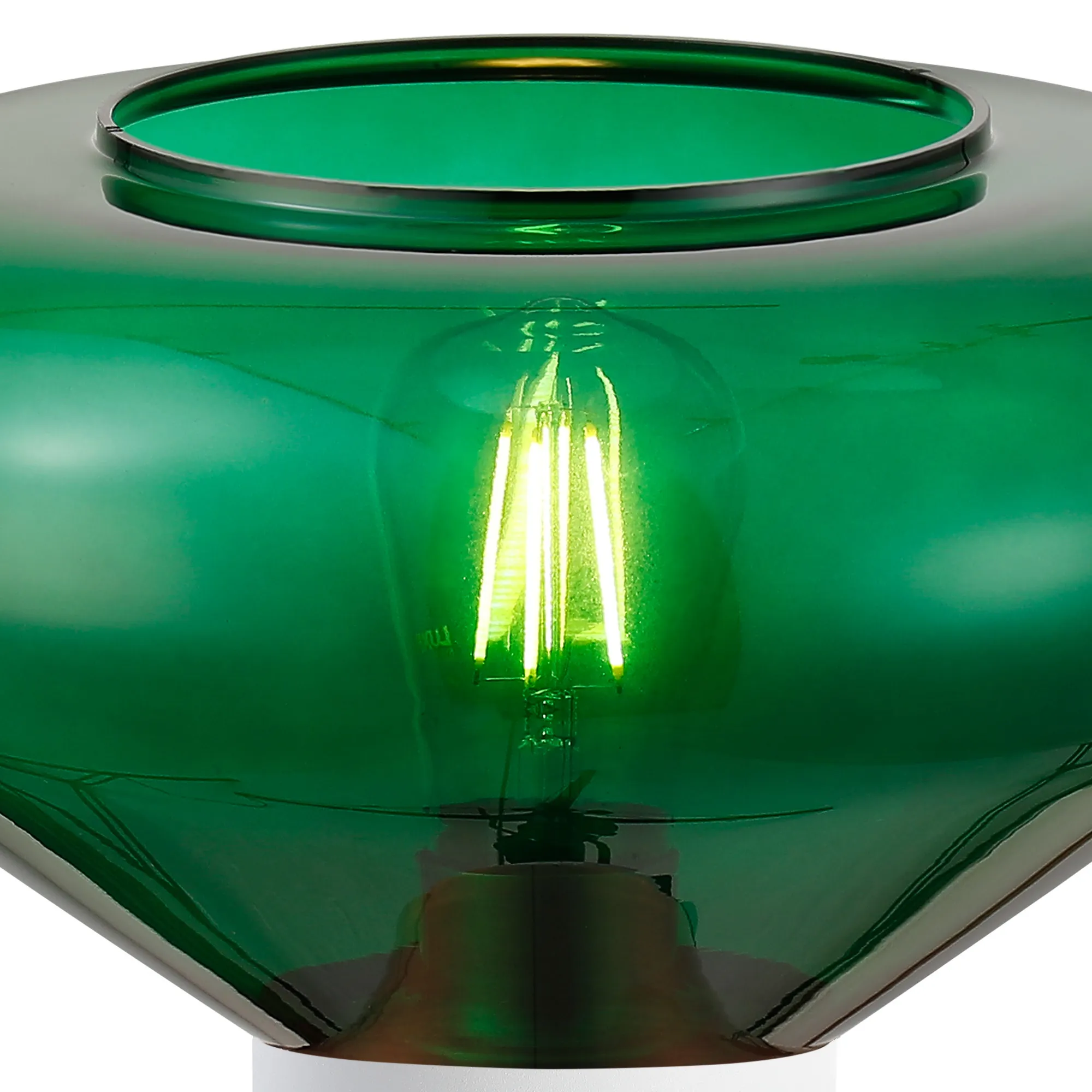 Clyde 23cm Pendant With Narrow Glass, 1 x E27, Satin White/Bottle Green/Clear Twisted Cable