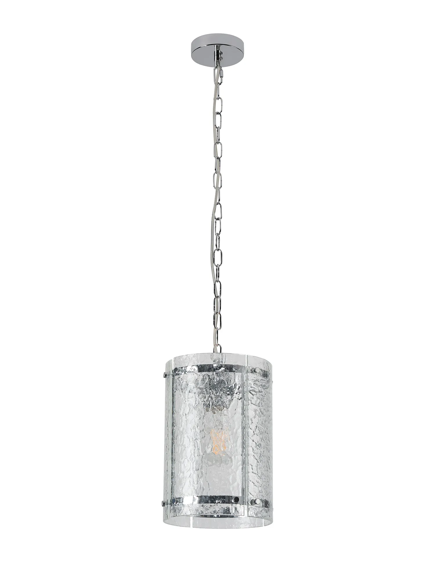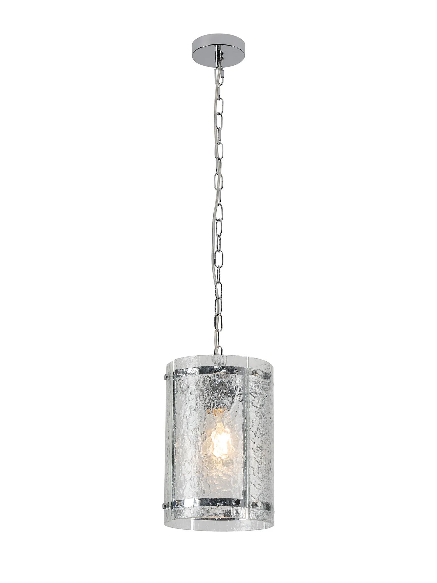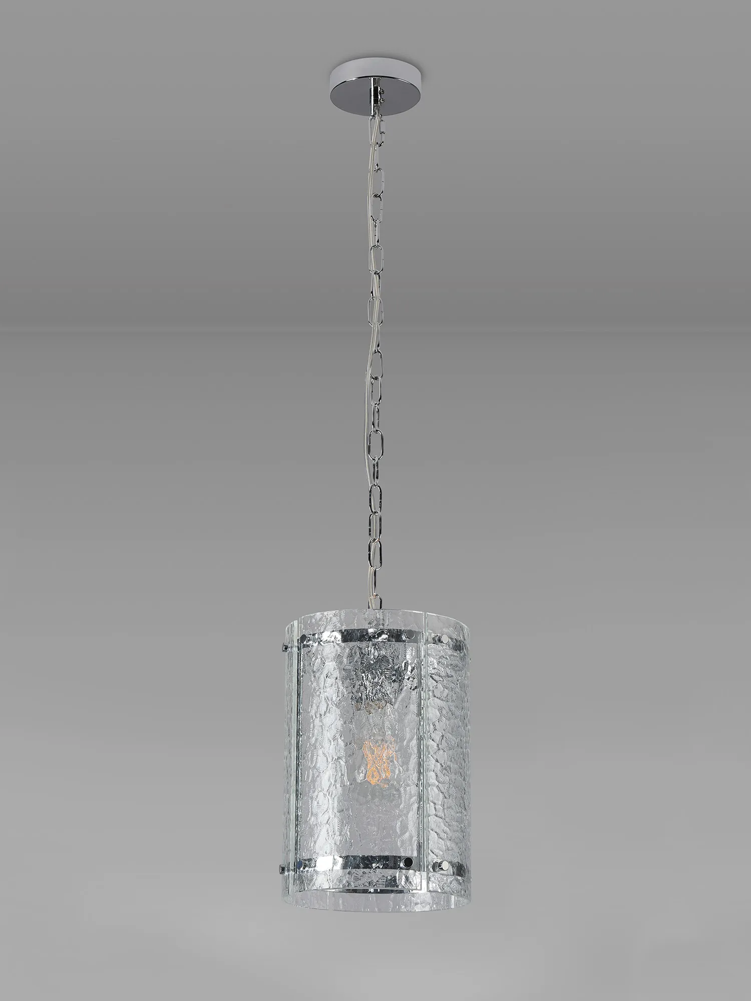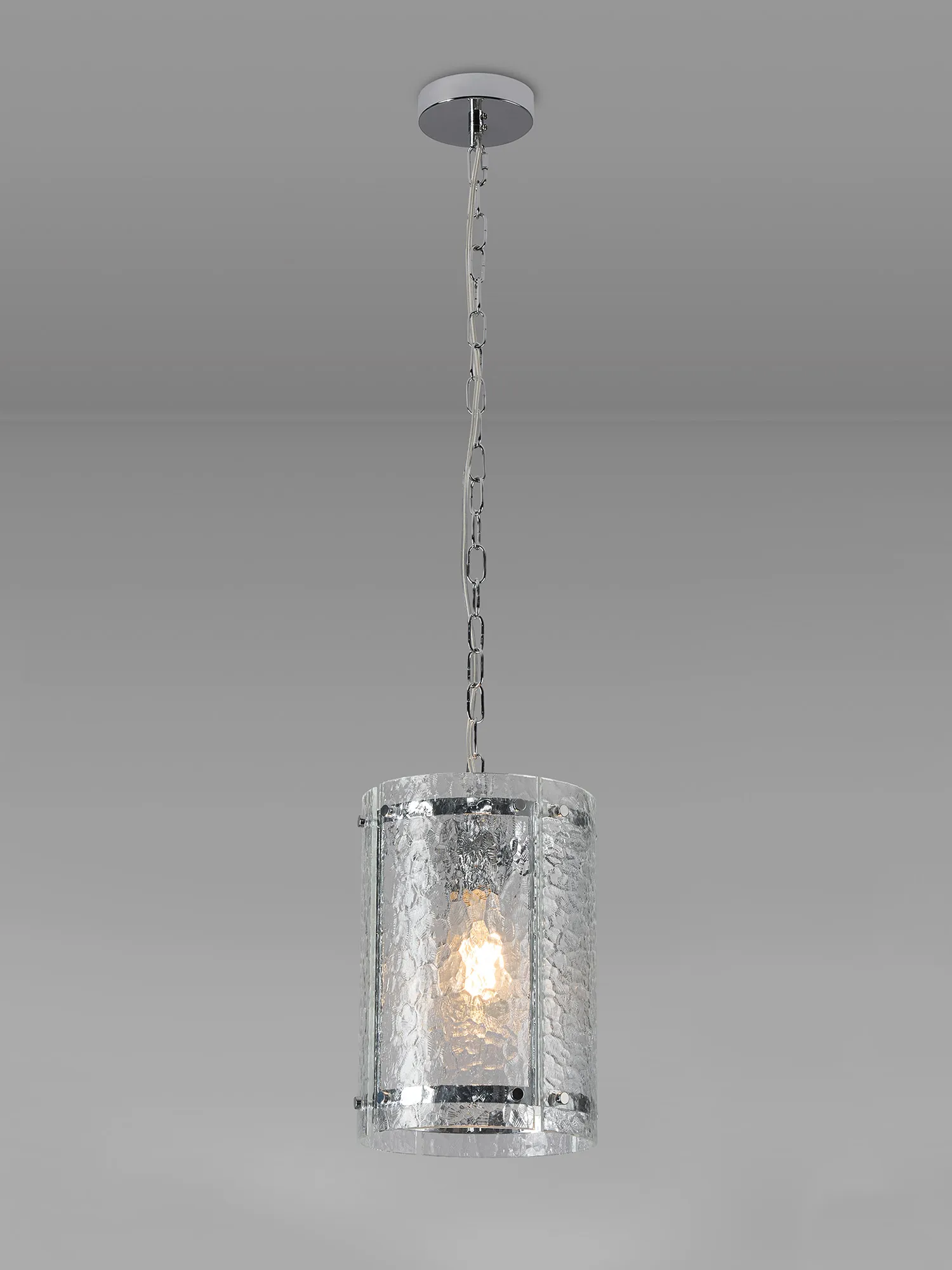 Hindon 56.5cm Pendant, 4 Light E27, Polished Chrome / Cobbled Clear (D) Glass
