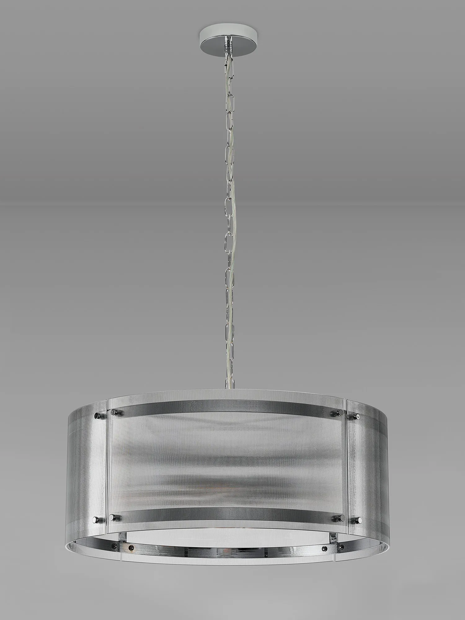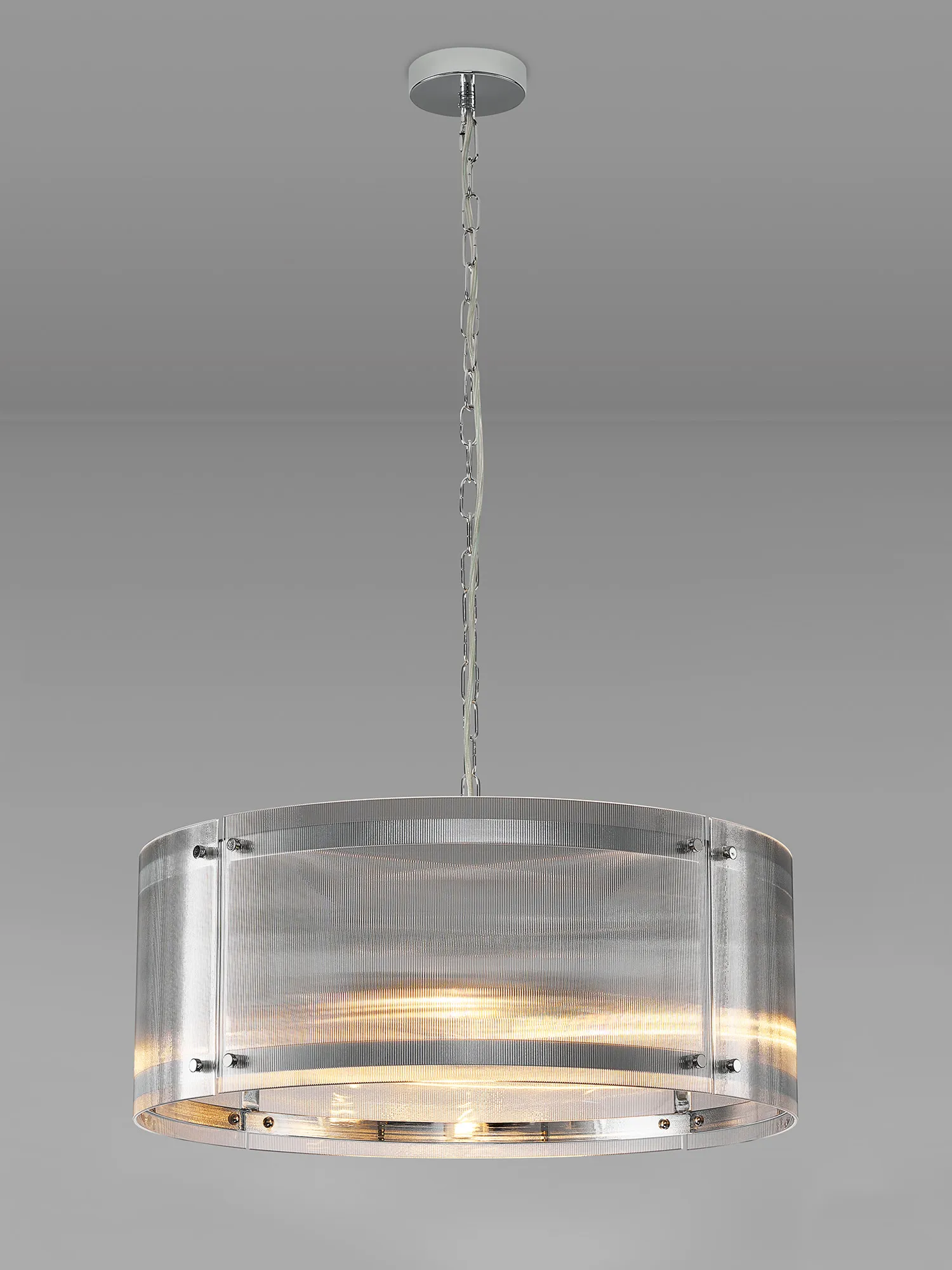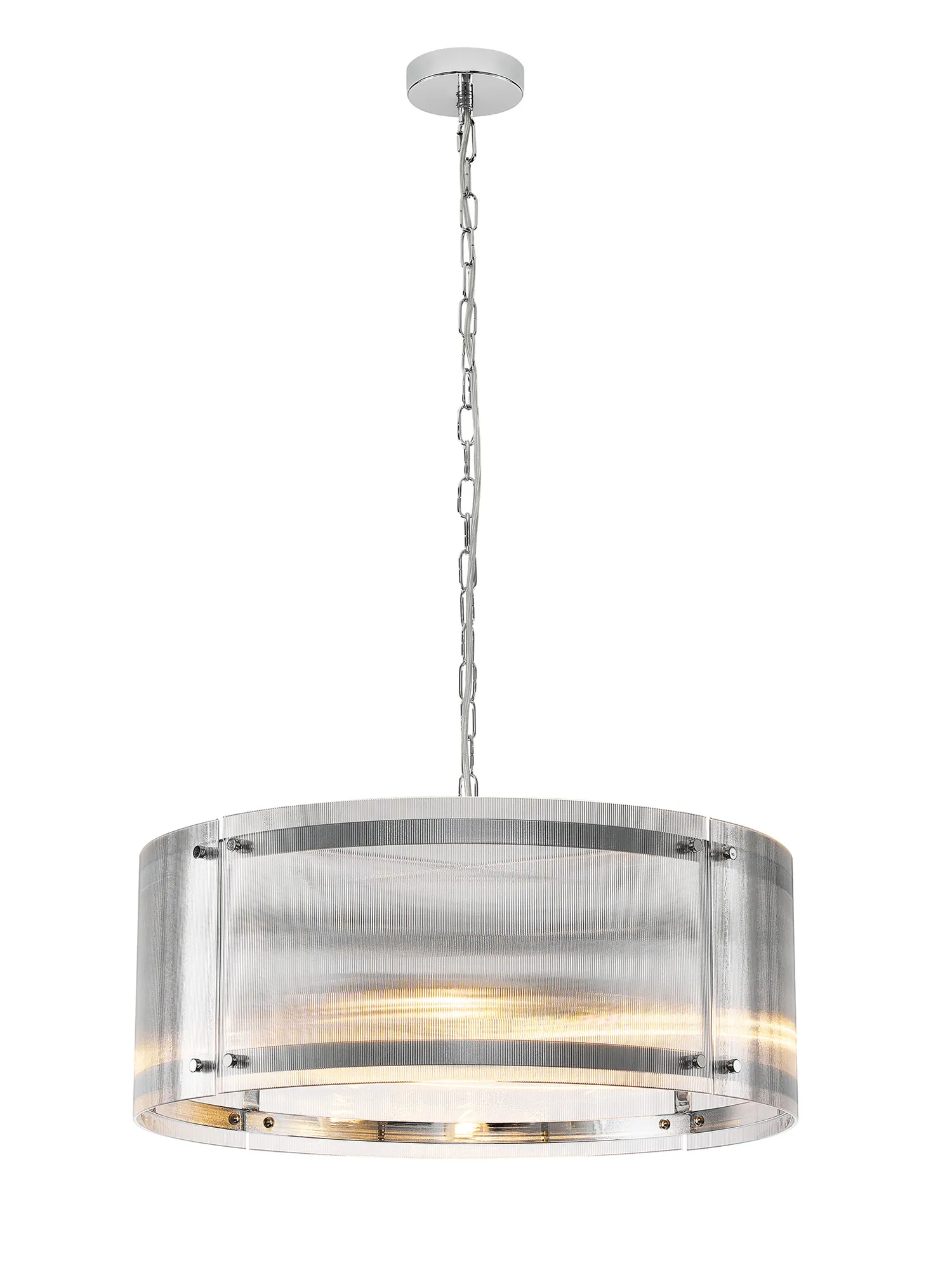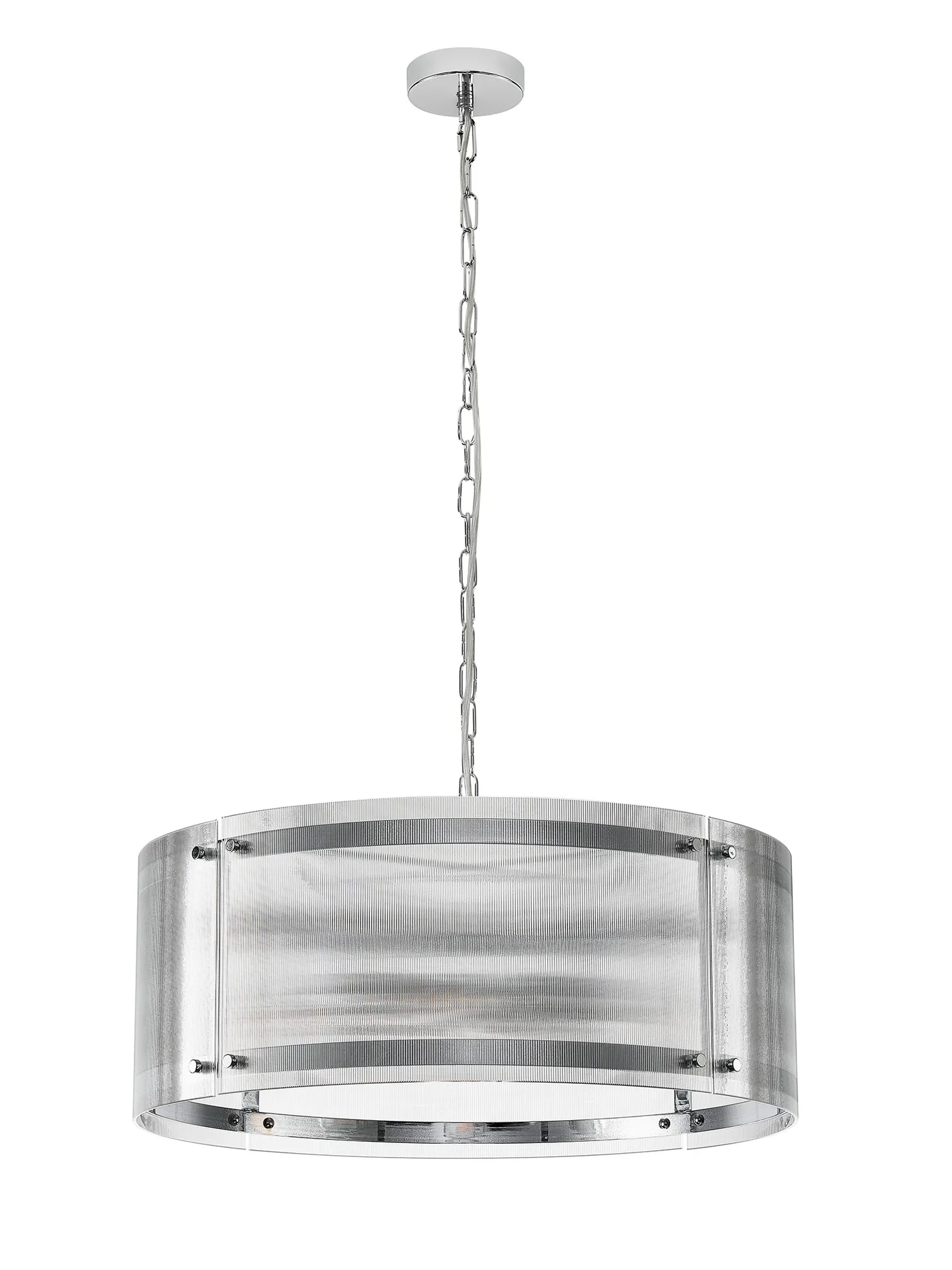 Hindon 20.5cm Pendant, 1 x E27, Polished Chrome / Narrow Ribbed Clear (B) Glass