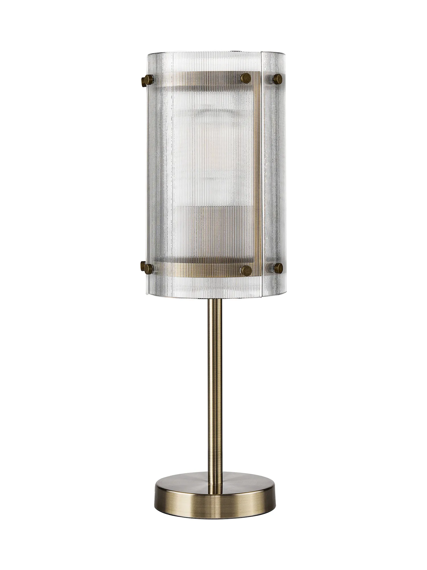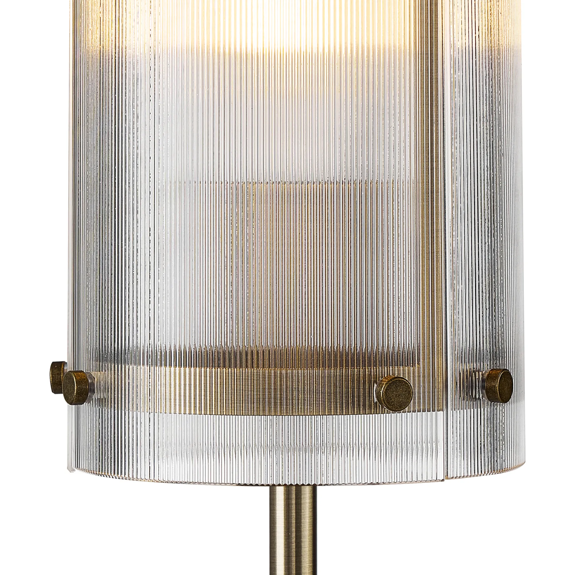 Hindon 35cm Pendant, 2 x E27, Antique Brass / Narrow Ribbed Clear (B) Glass