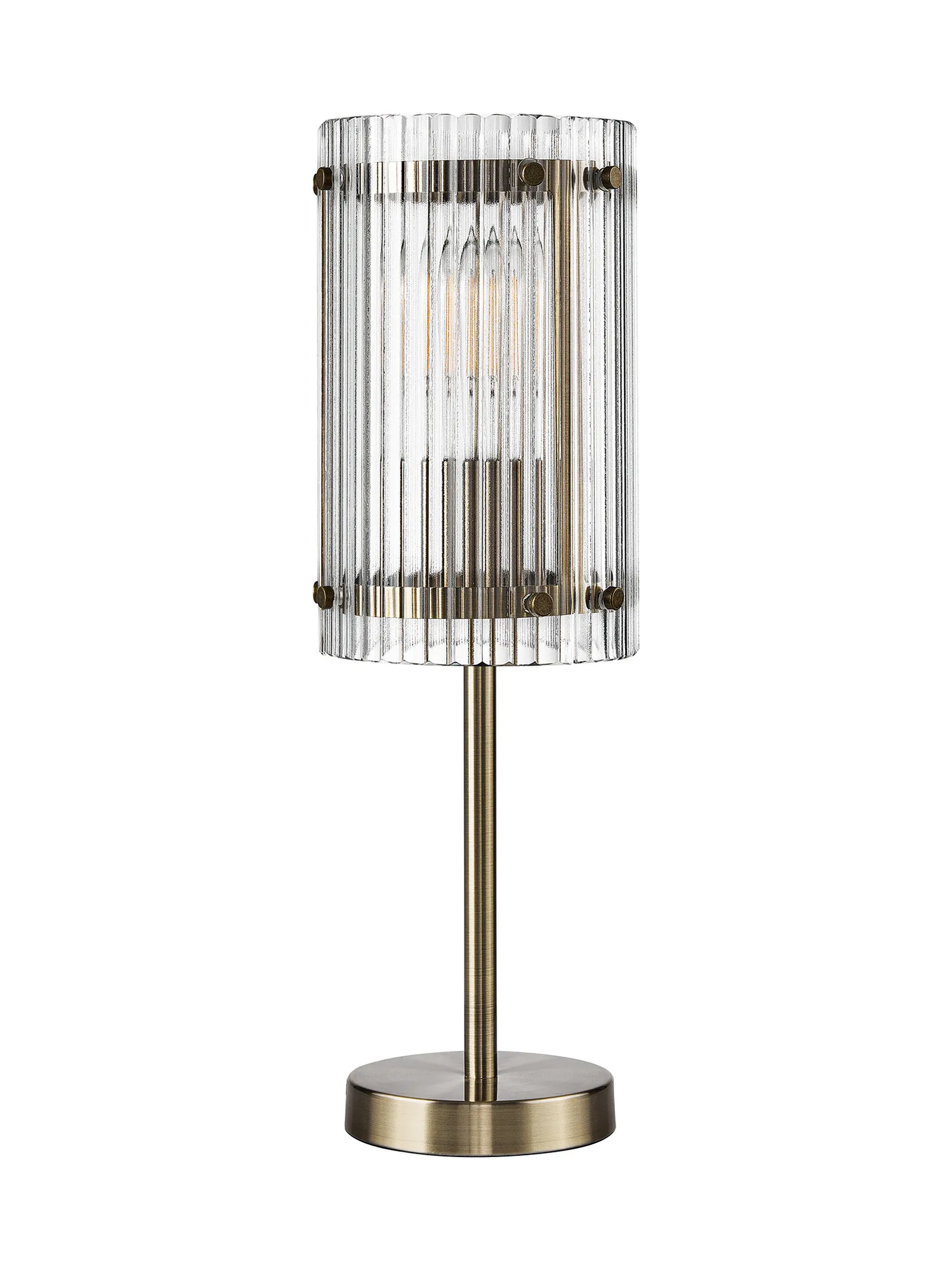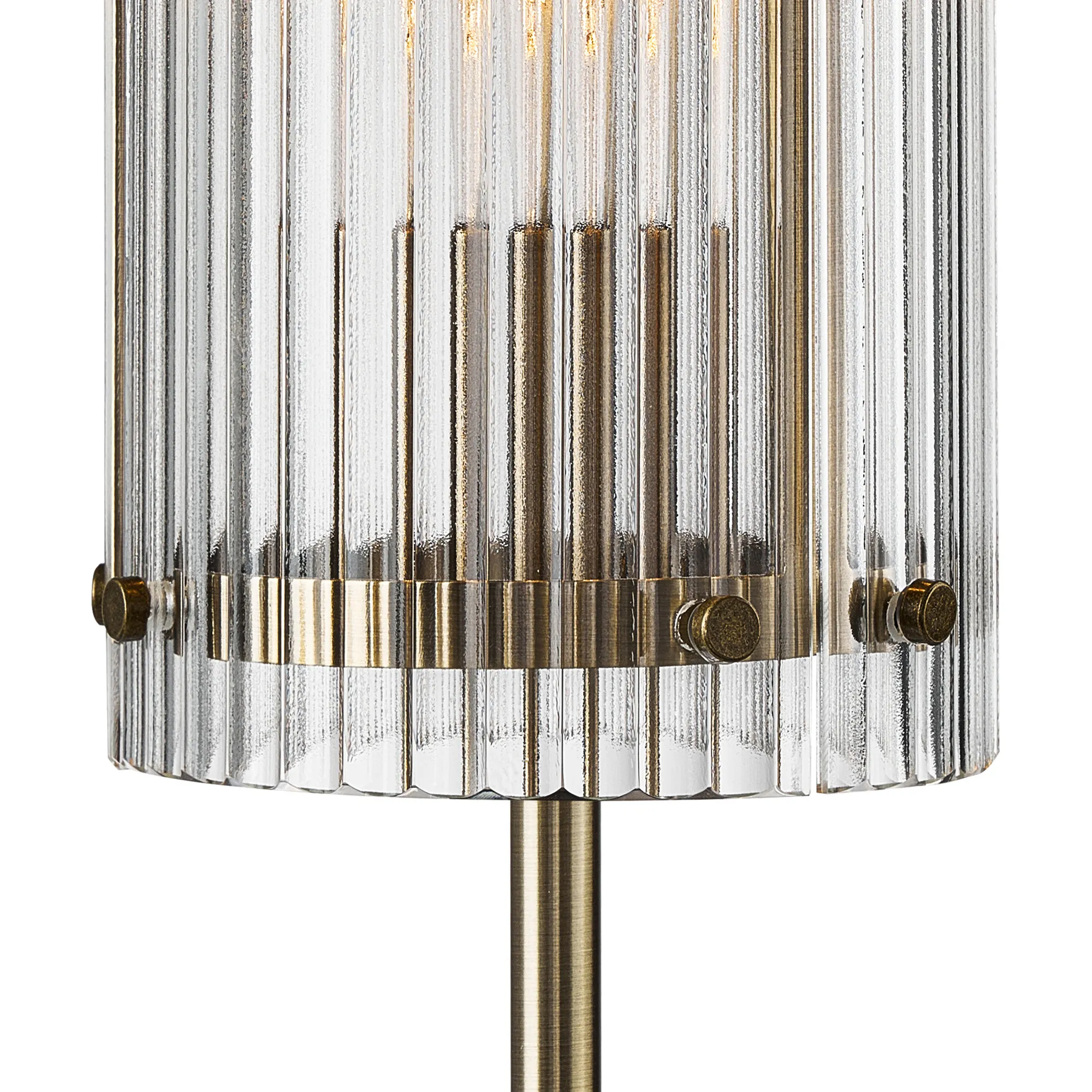 Hindon 35cm Pendant, 2 x E27, Antique Brass / Wide Ribbed Clear (C) Glass