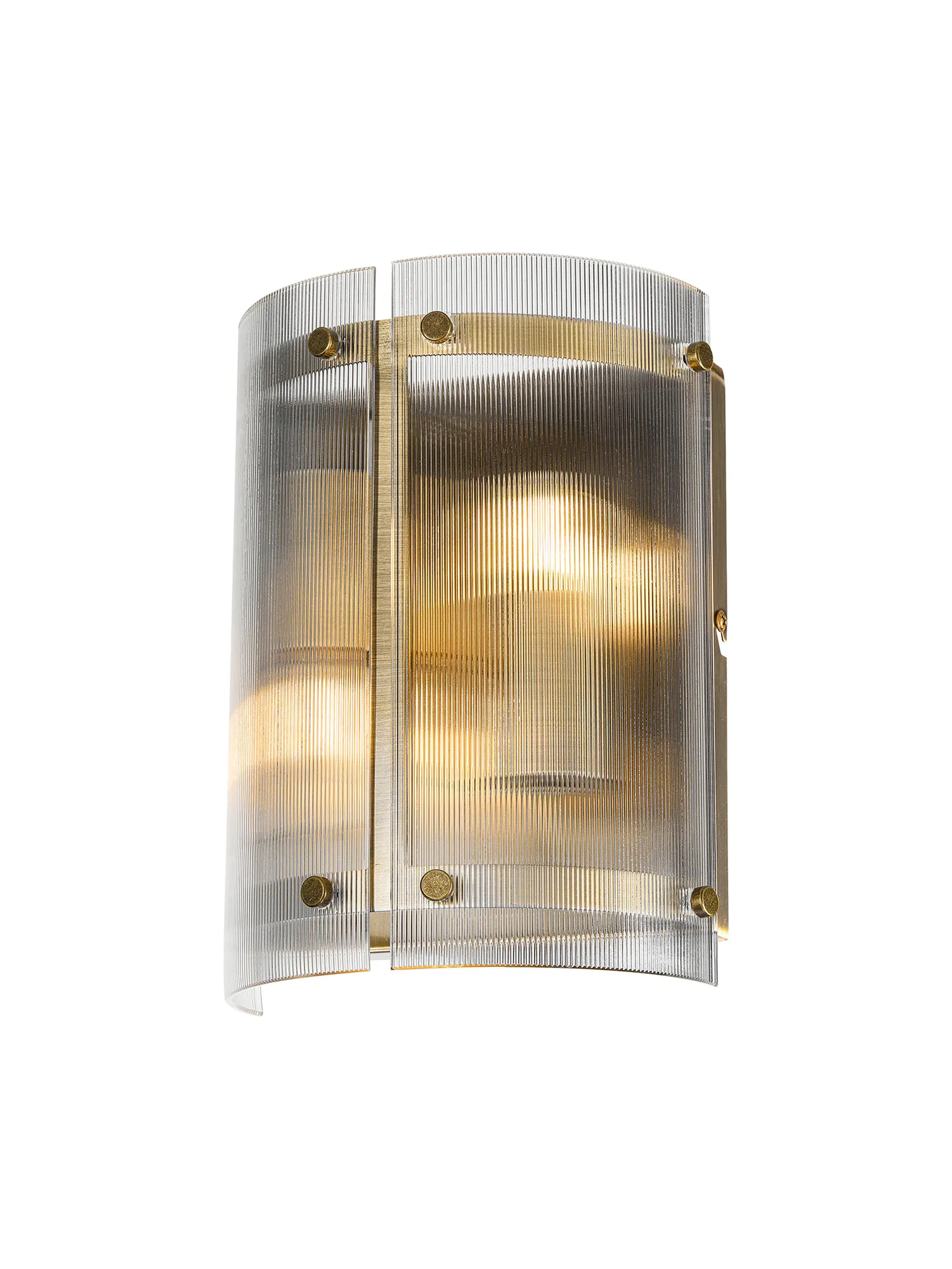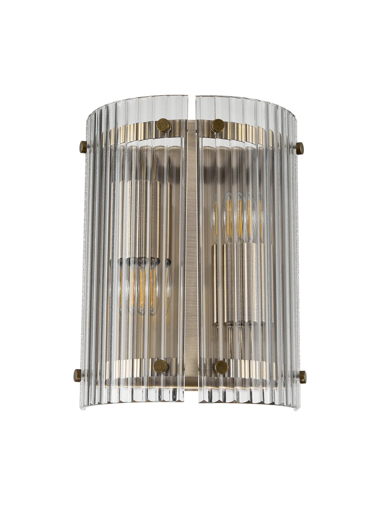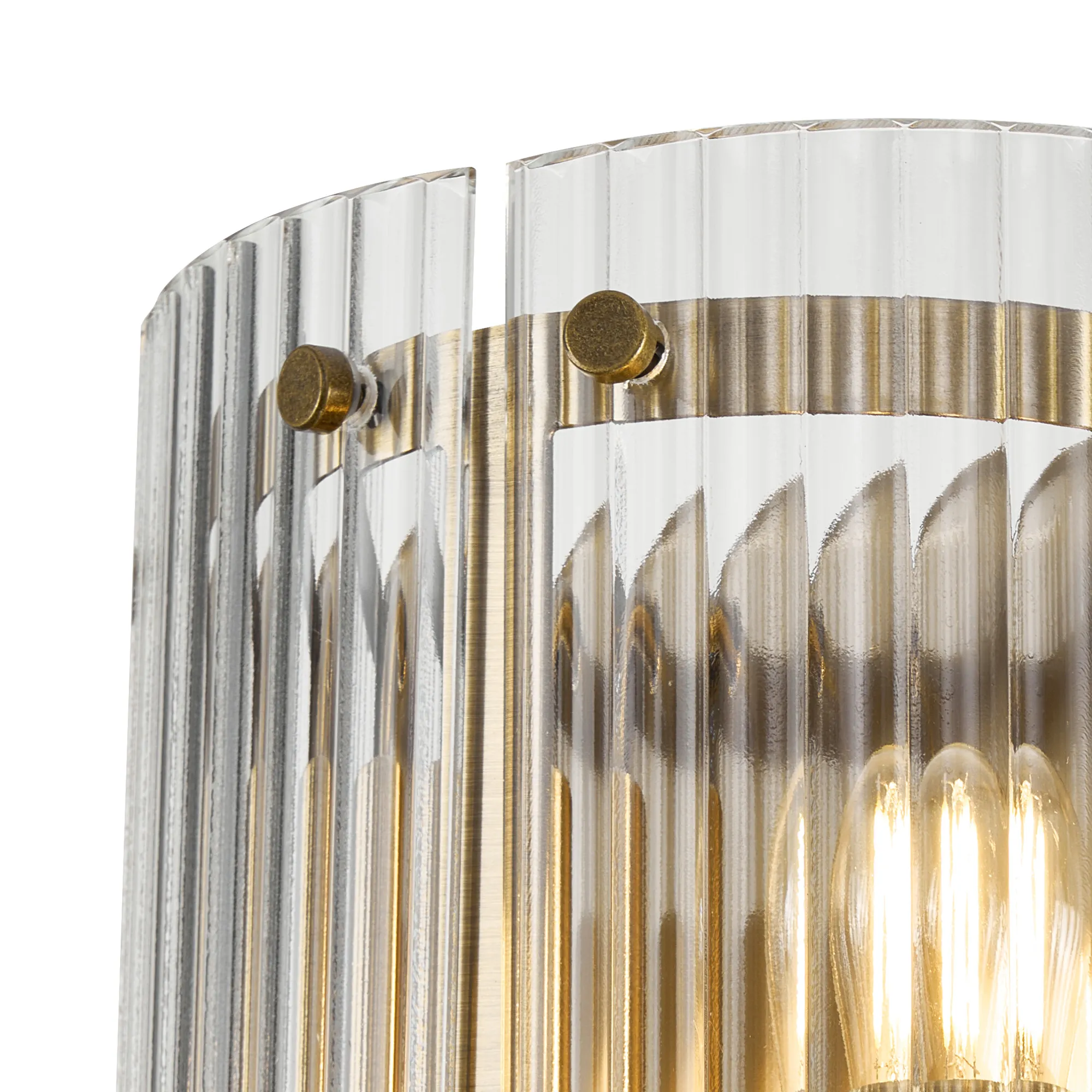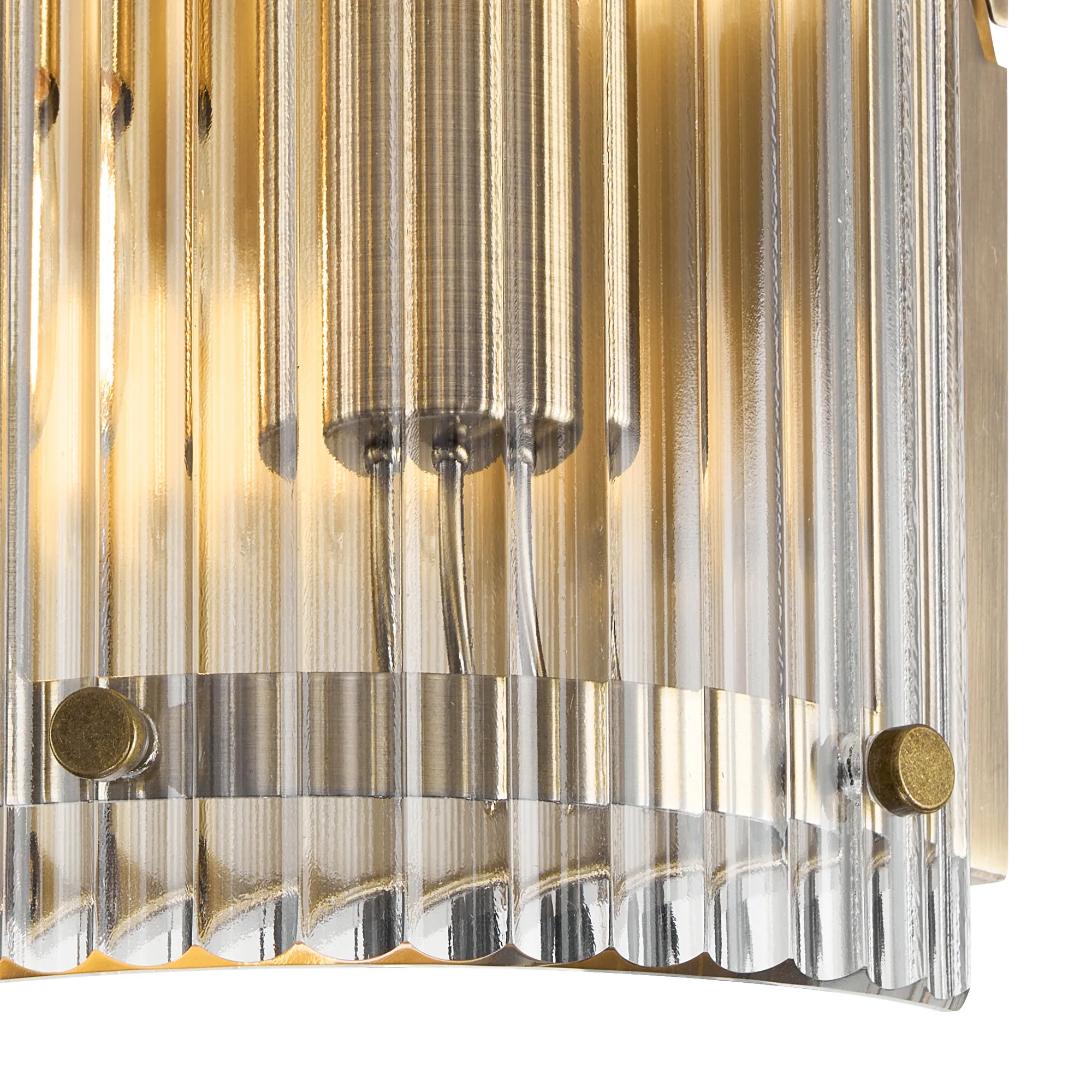 Hindon 35cm Pendant, 2 x E27, Antique Brass / Wide Ribbed Clear (C) Glass