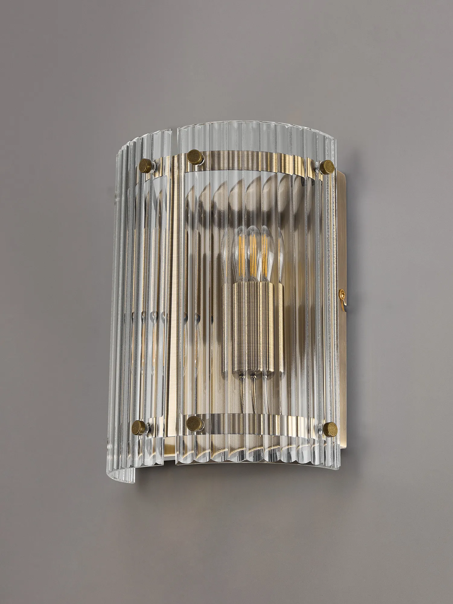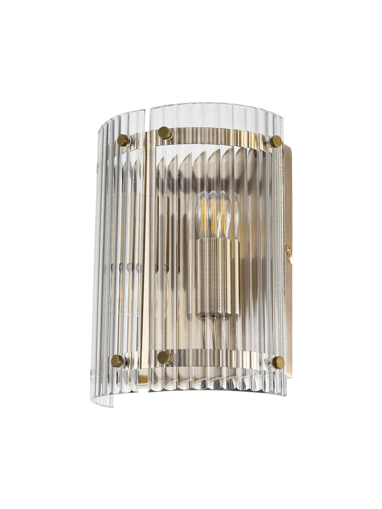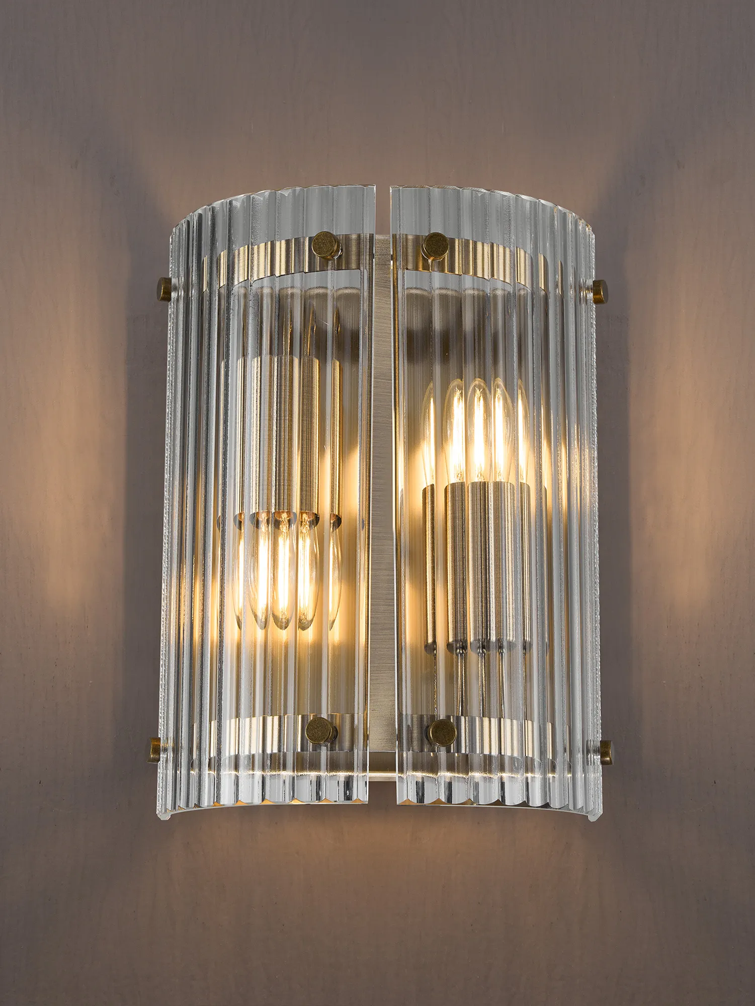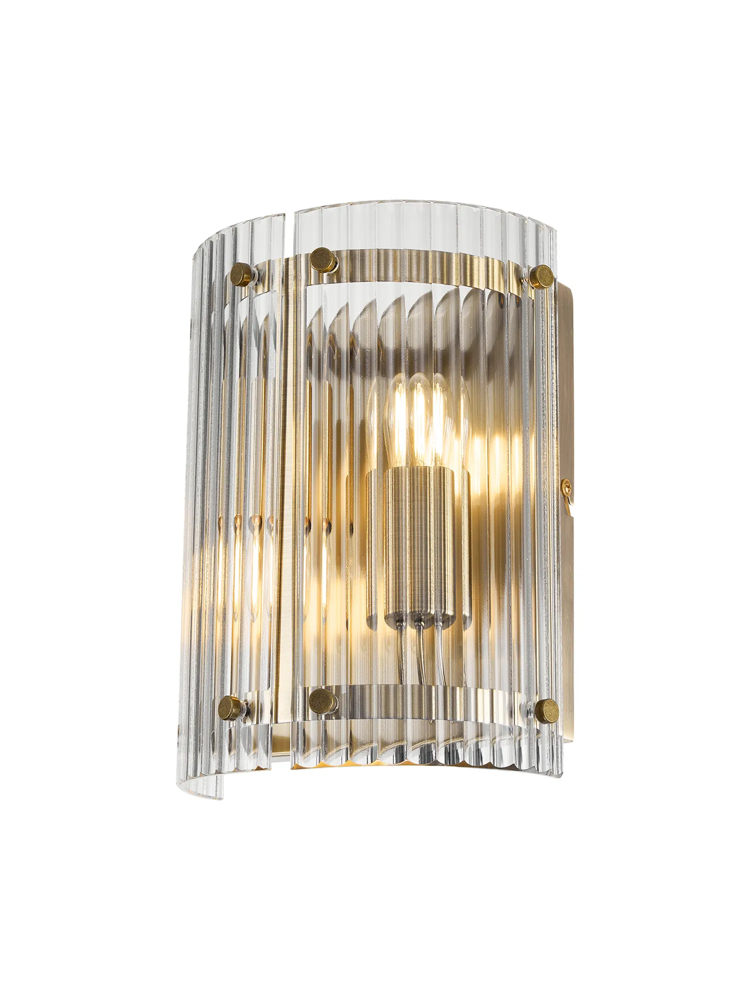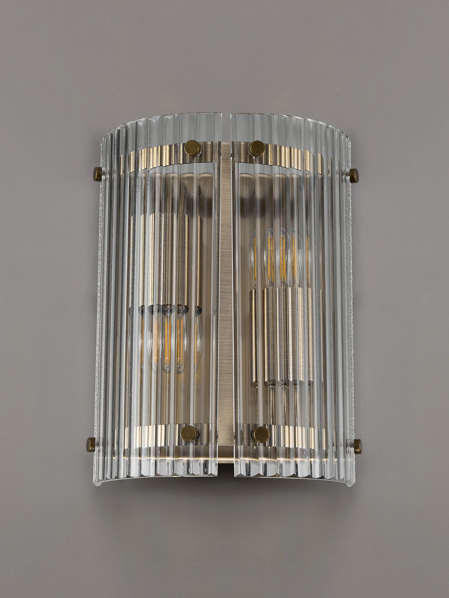 Hindon 35cm Pendant, 2 x E27, Antique Brass / Wide Ribbed Clear (C) Glass
