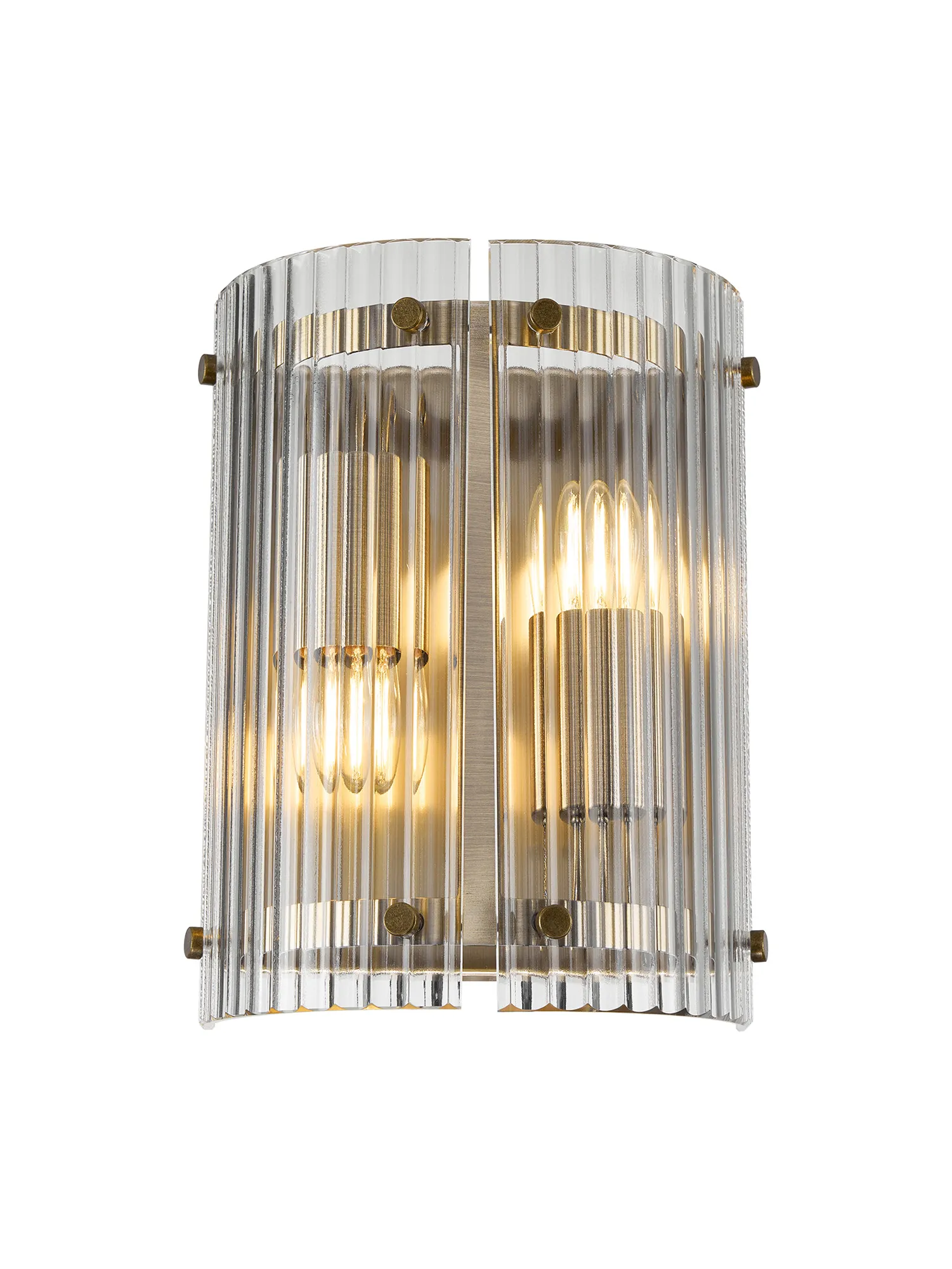 Hindon 35cm Pendant, 2 Light E27, Antique Brass / Wide Ribbed Clear (C) Glass