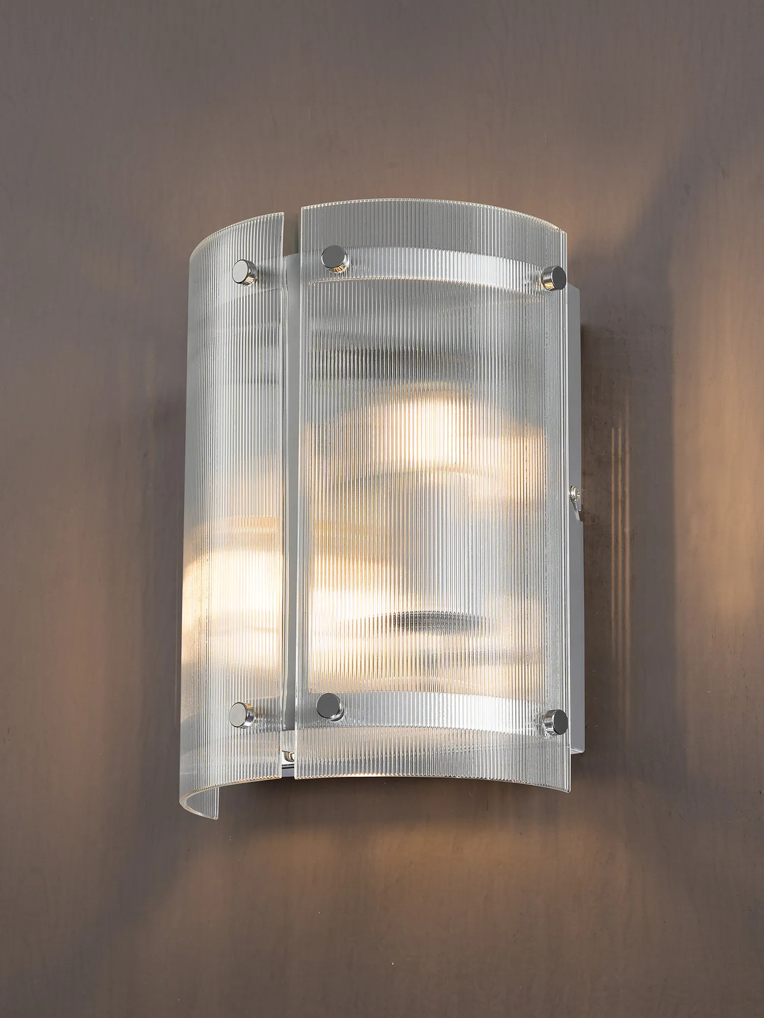 Hindon 20.5cm Pendant, 1 x E27, Polished Chrome / Narrow Ribbed Clear (B) Glass