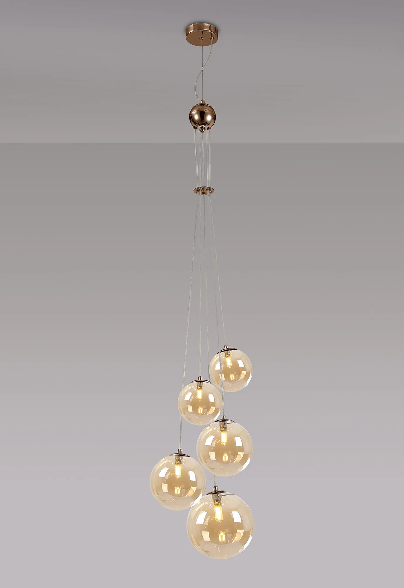 OTHER Queenstown Cluster Pendant, 5 x G9, Antique Copper/Amber