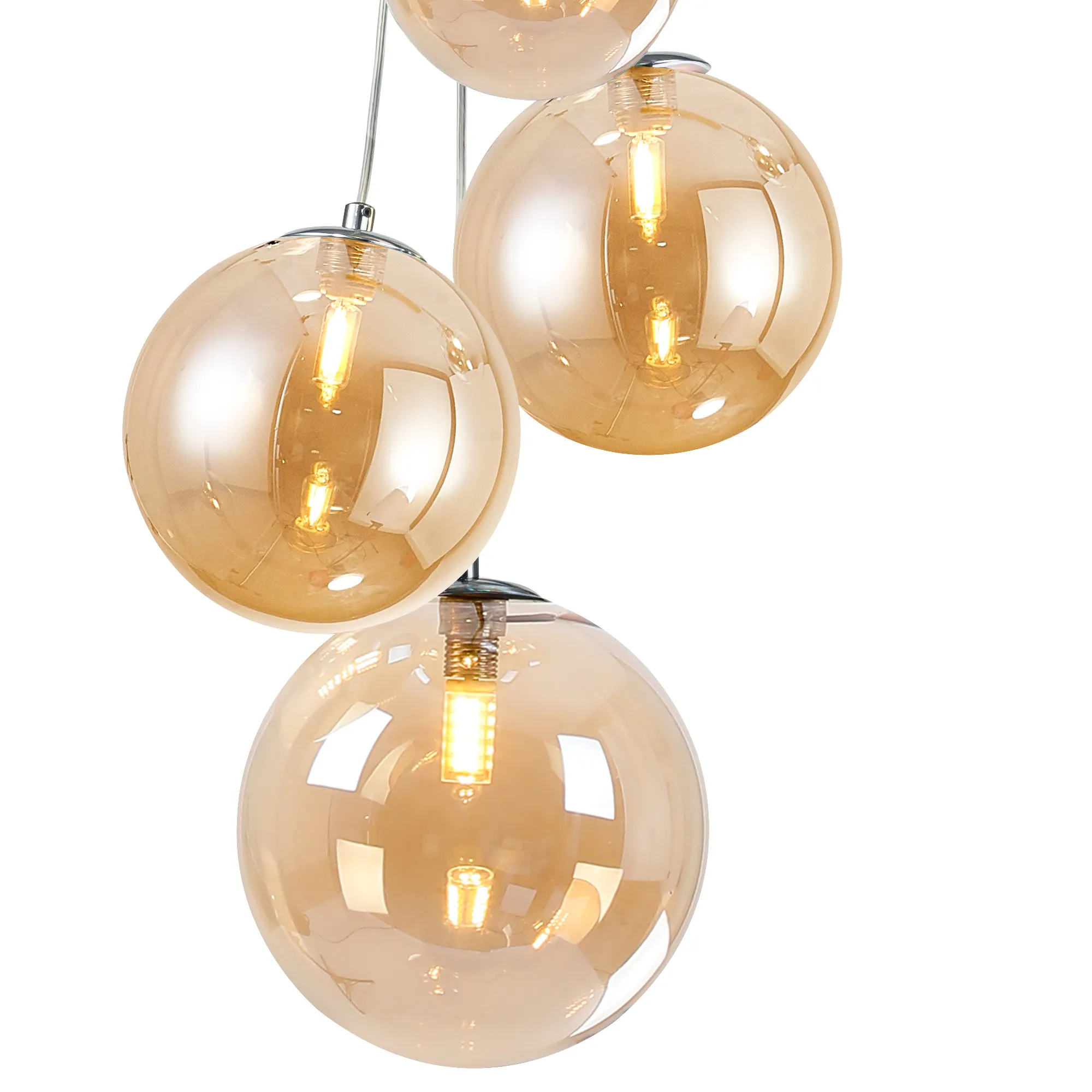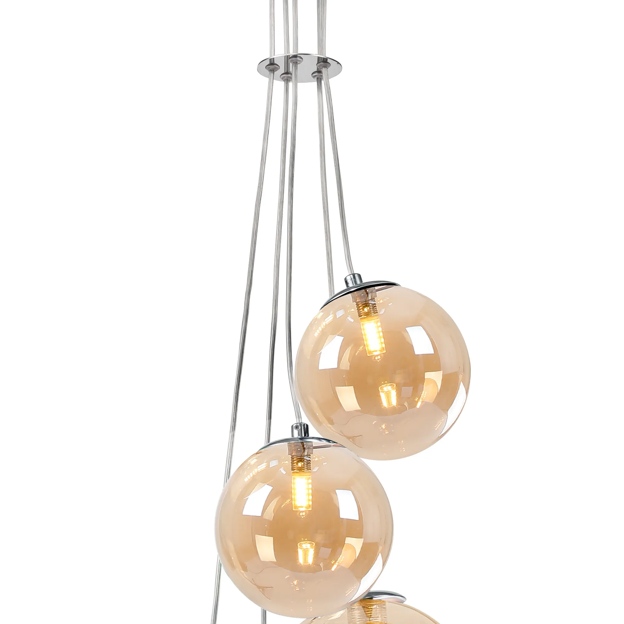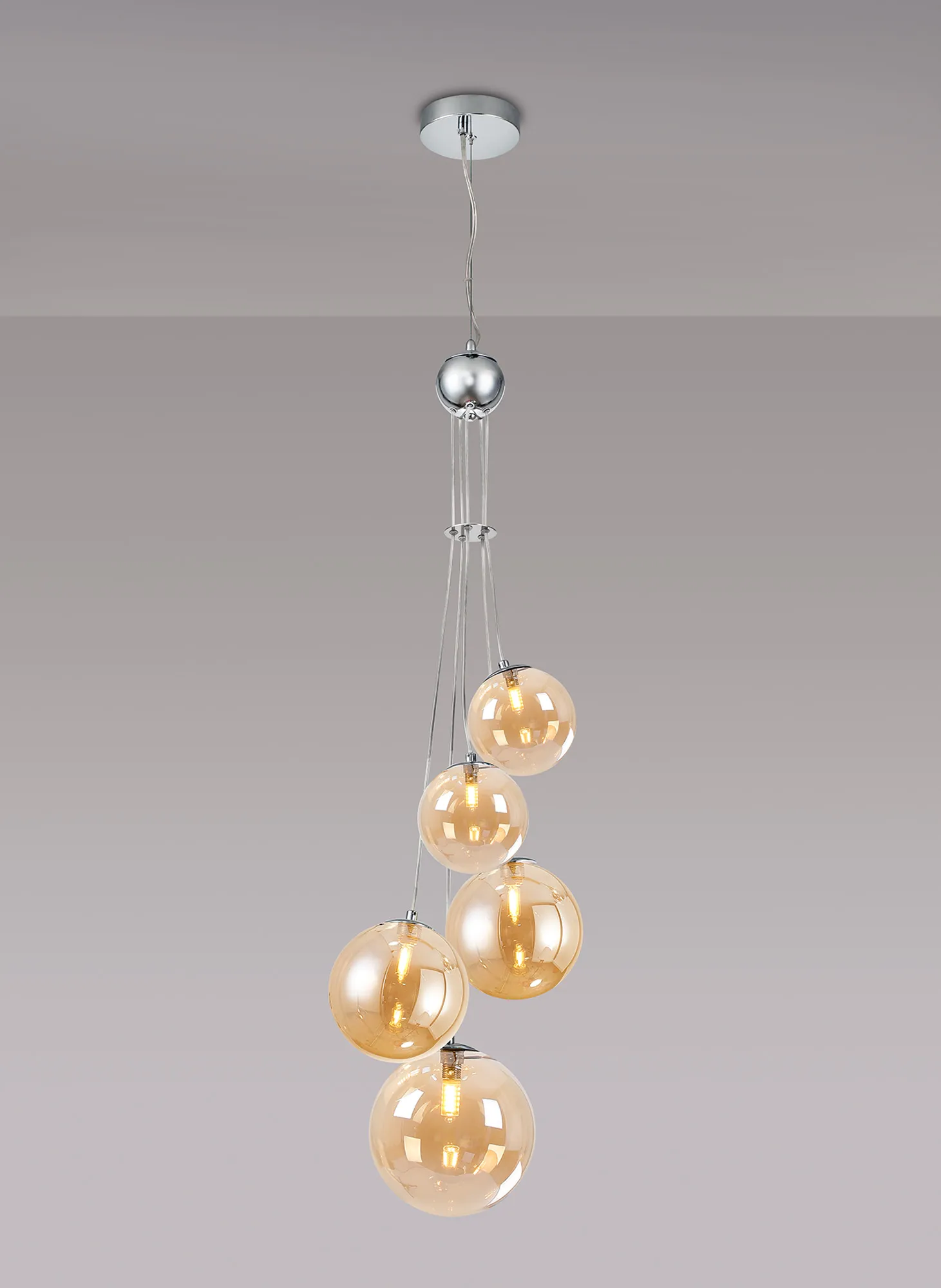 OTHER Queenstown Cluster Pendant, 5 x G9, Polished Chrome/Amber