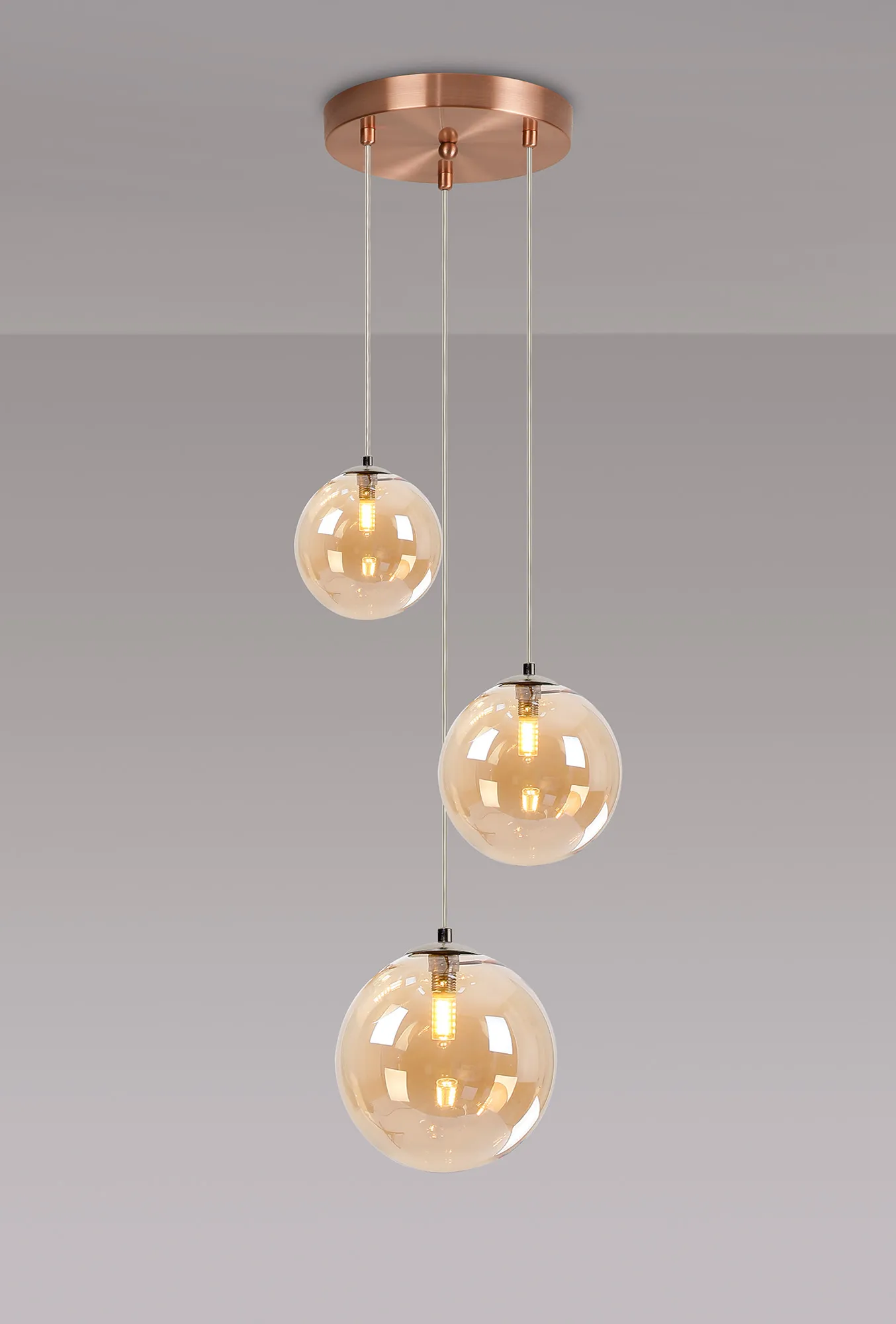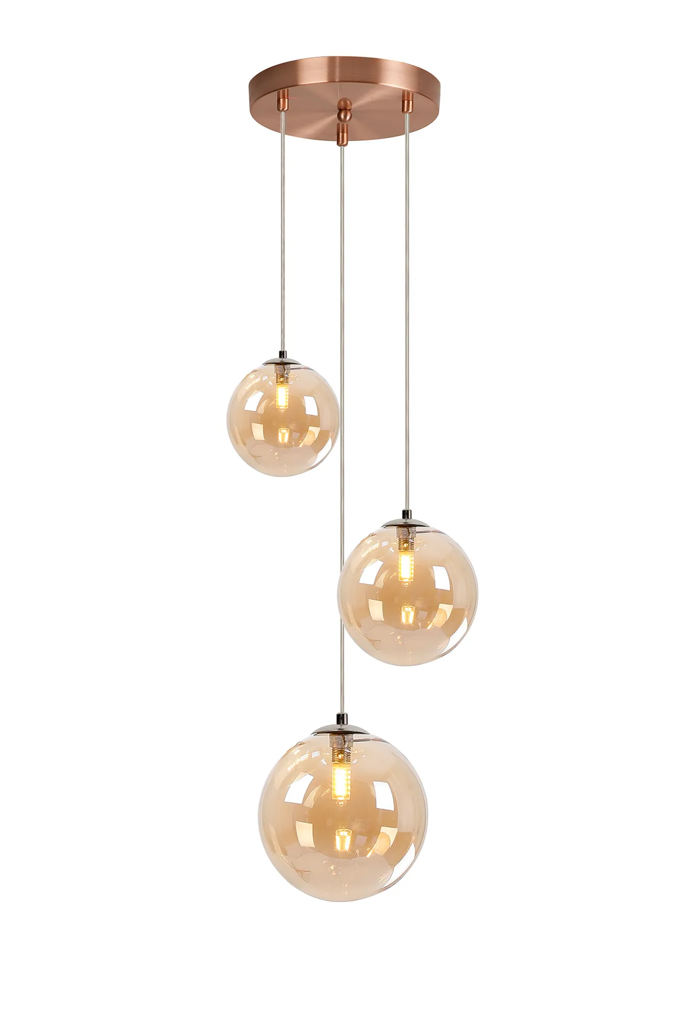 OTHER Queenstown Round Pendant, 3 x G9, Antique Copper/Amber