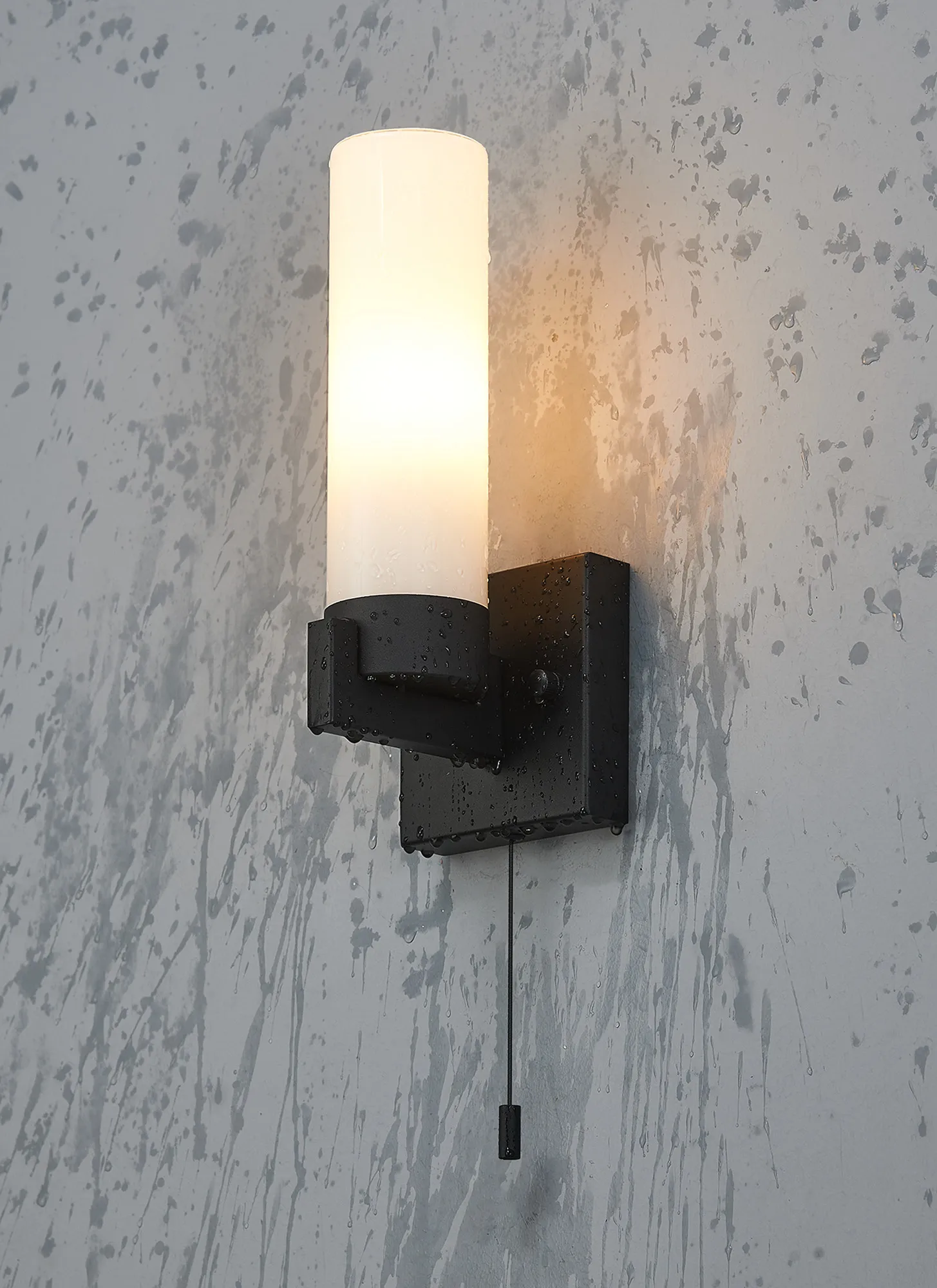 Melfort Pull Switch Wall Light 1 Light E14 IP44 Polished Nickel/Opal Glass